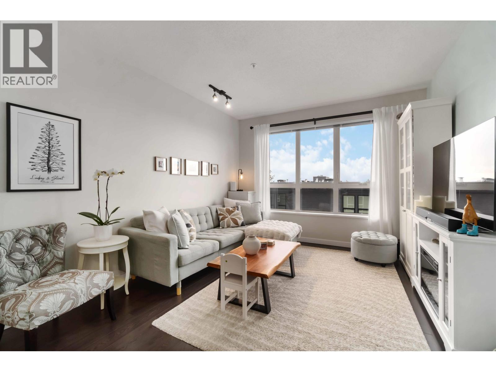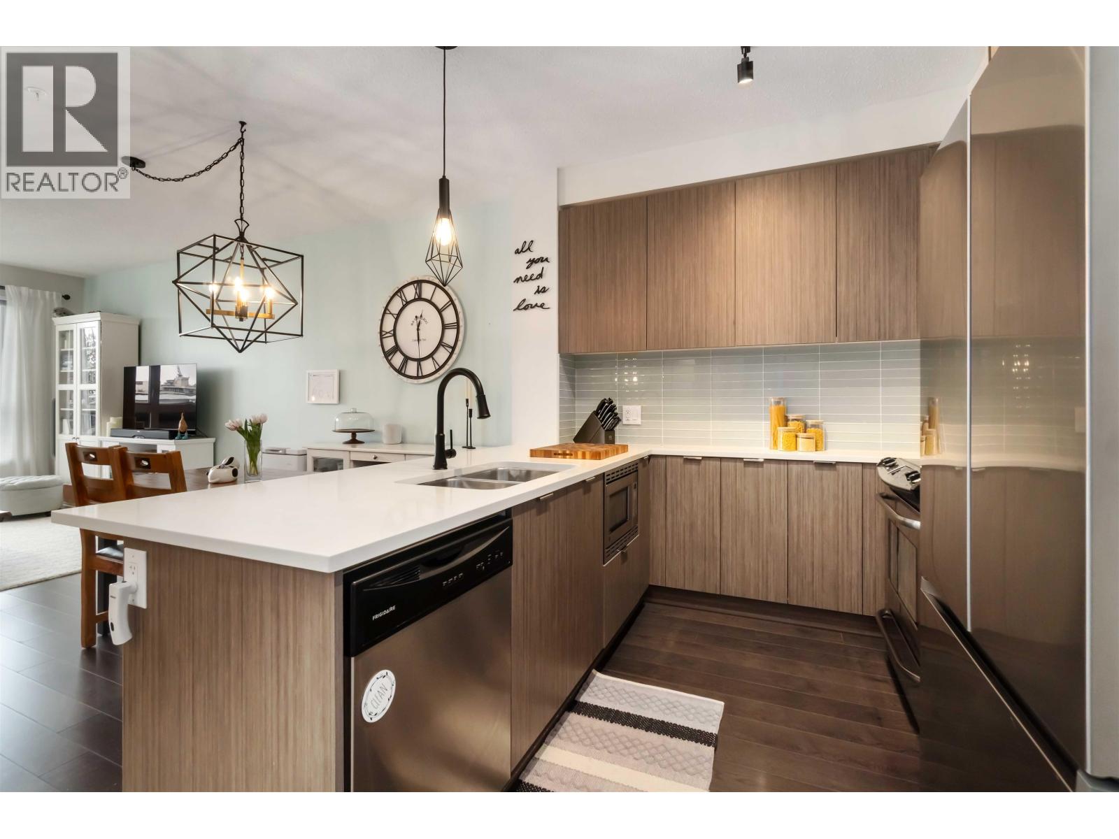 Here it is! Top floor unit with amazing views at the Veritas by Polygon. Stunning open concept living in this 2 bedroom, 1 bath home. Bright and airy with vaulted ceilings make the space look bigger than it is! Step through your front door to a great sized kitchen and living space. QUARTZ counters, LAMINATE floors and STAINLESS appliances top this incredible condo off! Buy as an investment or live in today! STEPS to all major amenities, shopping, trails and SFU! Best priced 2 bedroom on the mountain! Call today as this one won't last long! Open House Saturday Feb 7, 2026 - 2:00-3:30pm (32383499)