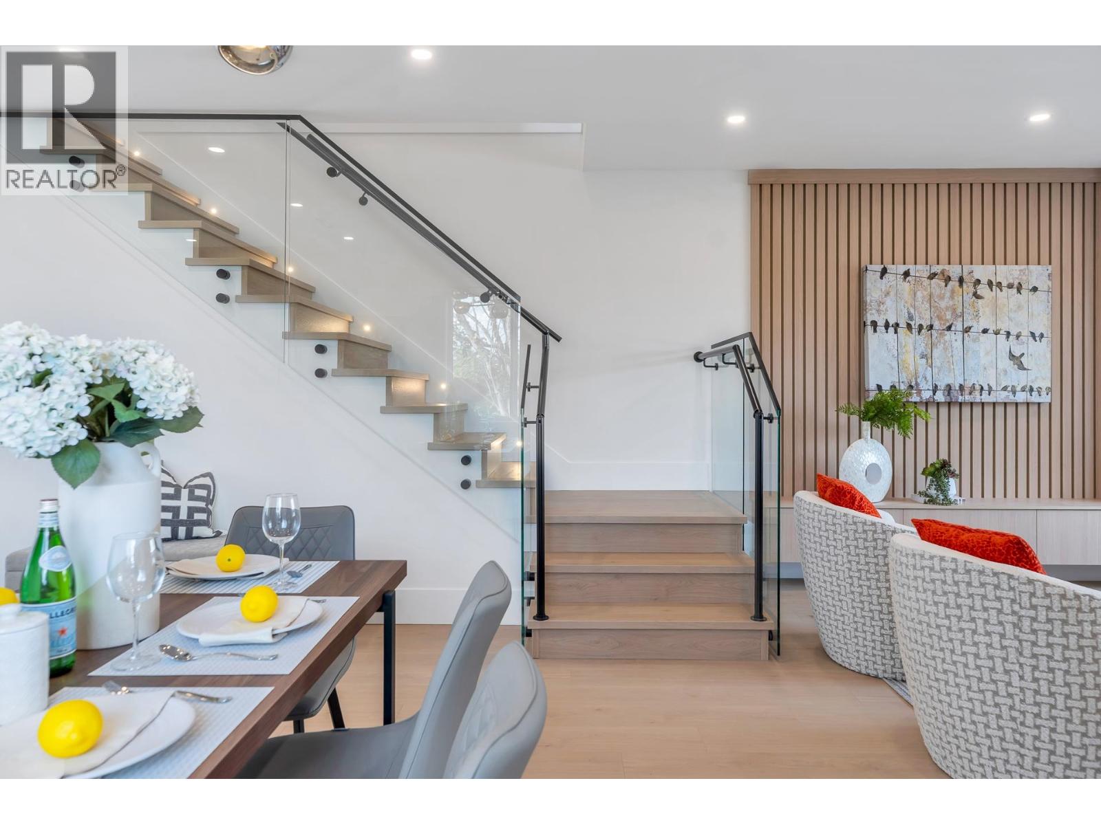 Introducing a BRAND-NEW HALF-UNIT located in the BACK BUILDING of a peaceful Burnaby Lake enclave, set on a rare Approx. TOTAL 50 X 194 FT LOT. This thoughtfully designed home offers 3-Level OF LIVING with 5 BDRMS and 5 Bathrooms, ideal for large or extended families. The main floor features a Bright OPEN-CONCEPT LAYOUT with a MODERN KITCHEN, dining area, and powder room. Upstairs includes 3 BDRMS , 2 BATHS, and a PRIVATE BALCONY Off the Primary Suite. The lower level provides 3 ROOMS, 2 BATHS, A large REC. RM, and a SEPARATE ENTRANCE. Enjoy A/C, Radiant Heat & Heat Pump, Security Cameras, PRIVATE FRONT & BACK YARDS, and REAR 1-CAR GARAGE. Nestled on a QUIET CUL-DE-SAC, close to TRANSIT, SHOPPING, PARKS, AND MAJOR ROUTES. (32383543)