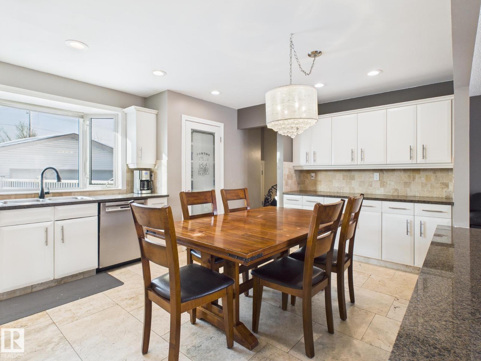 Welcome to this warm 3 bed, 3 bath home, perfect for families or those looking for room to grow. Set on a large lot backing onto peaceful green space, it offers privacy, outdoor space, and a safe, family-friendly setting. The main floor features a bright, open-concept kitchen and living area designed for everyday life and family gatherings. Granite countertops, heated tile flooring, hardwood floors, and large windows create a comfortable, inviting space filled with natural light. Updates include windows and doors (2021), shingles (2018), and a refreshed deck and patio (2024). Upstairs offers three well-sized bedrooms, while the fully finished basement provides flexible space for a playroom, home office, or family room. The oversized heated and insulated double garage adds year-round convenience. Located near parks, schools, Clareview Rec Centre, shopping, public transit, and major routes, this home combines comfort, space, and long-term potential for growing families, 1st time home buyers and investors. (33770681)