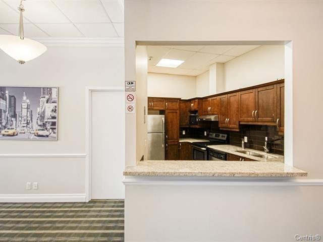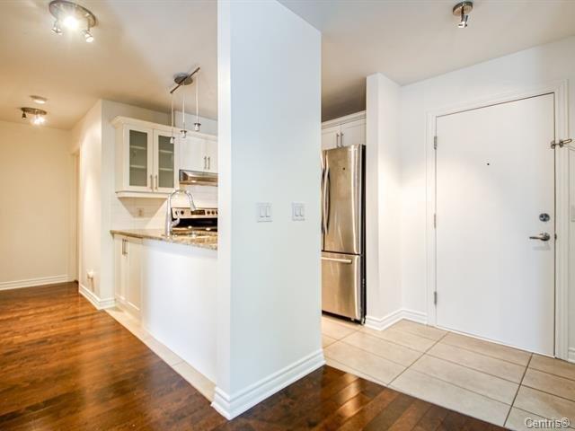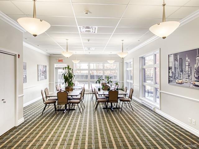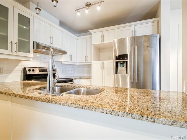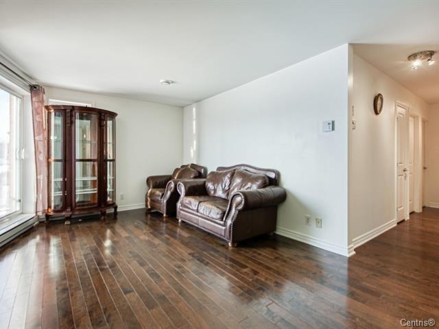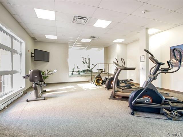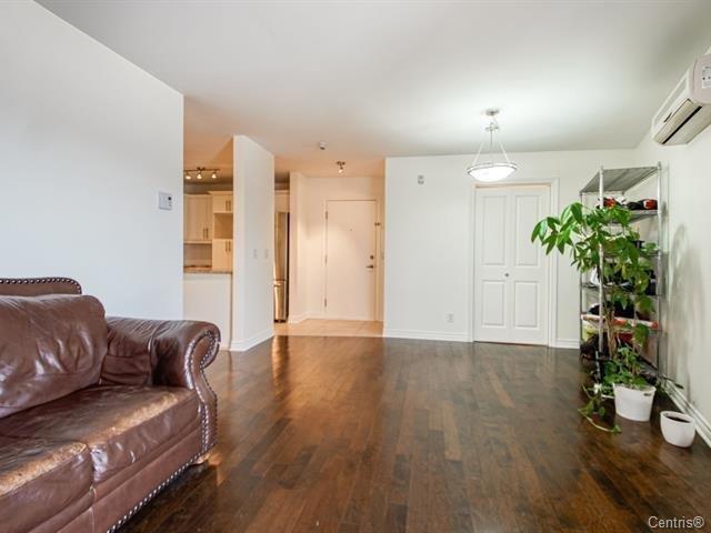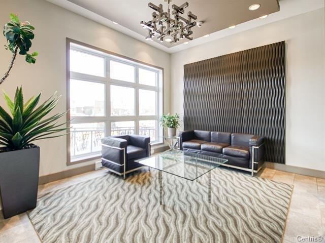 Very well located, 918SF of living area, bright Luxurious condo with a magnificent common lobby, fully equipped like gym with TV, party room, 2 elevators,1 parking, 1 locker. Wood kitchen cabinets & hard wood floors, granite counters, back splash. Bathroom with glass shower/separate tub, granite counters. Wall mounted A/C unit, balcony, close to all amenities and also bus to Metro Cote-vertu, Lower condo fees and hot water is included with the condo fees. (38359245)