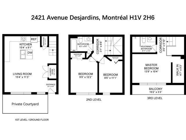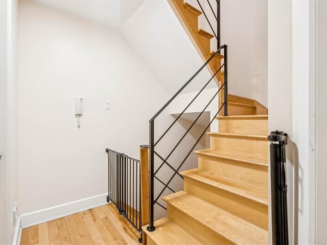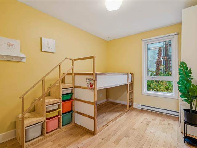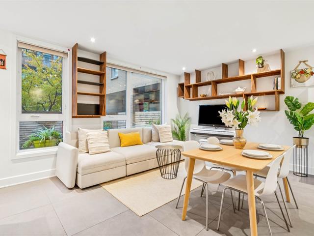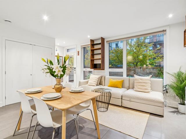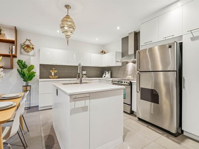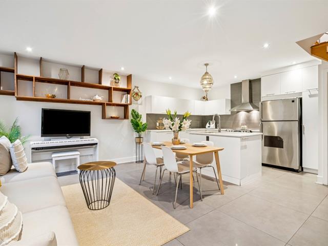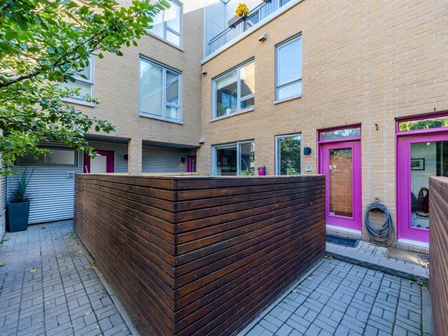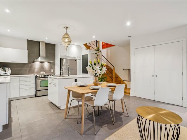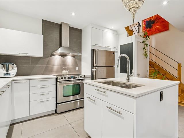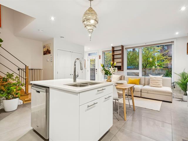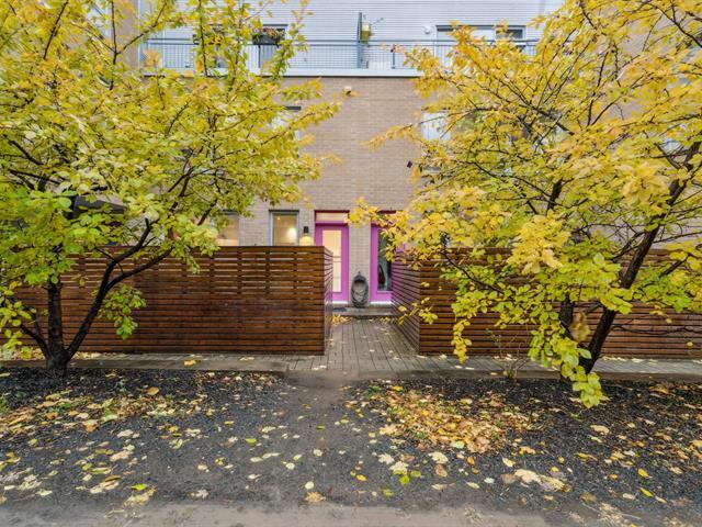 This bright, modern, energy-efficient 3-story townhouse features three beautifully appointed bedrooms, two full bathrooms, and a private red cedar--fenced yard. The main floor, renovated in 2021, offers in-floor heating, an open-concept living and dining area, and a quartz kitchen with island. The primary suite includes a walk-in closet and a private balcony. Located in the heart of Hochelaga-Maisonneuve on a quiet street off Desjardins, the home is just 5 minutes walk to Pie-IX metro, shops, restaurants, schools, parks, and all essential amenities. The neighborhood is welcoming, with residents primarily professionals. Immediate occupancy. (53604372)