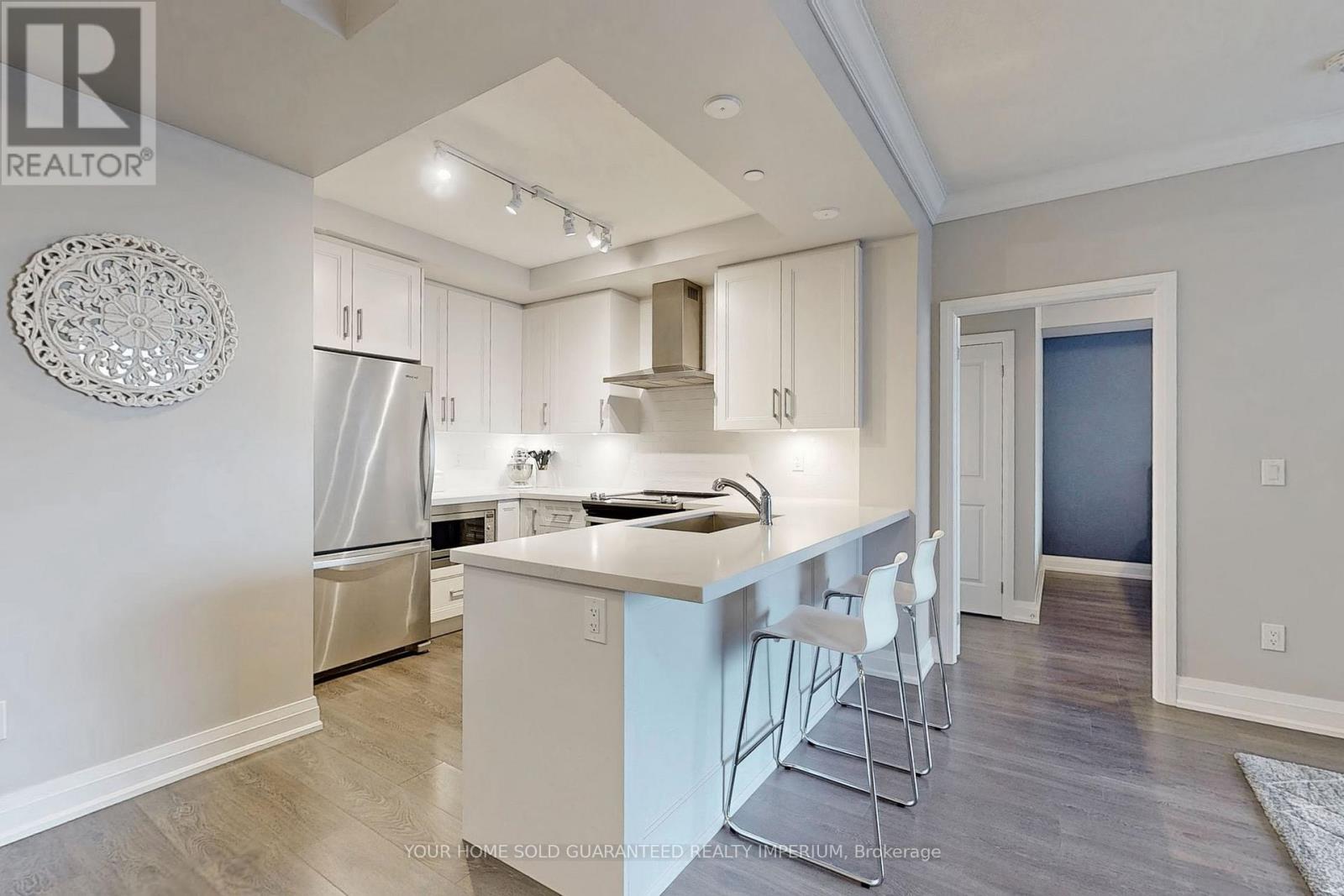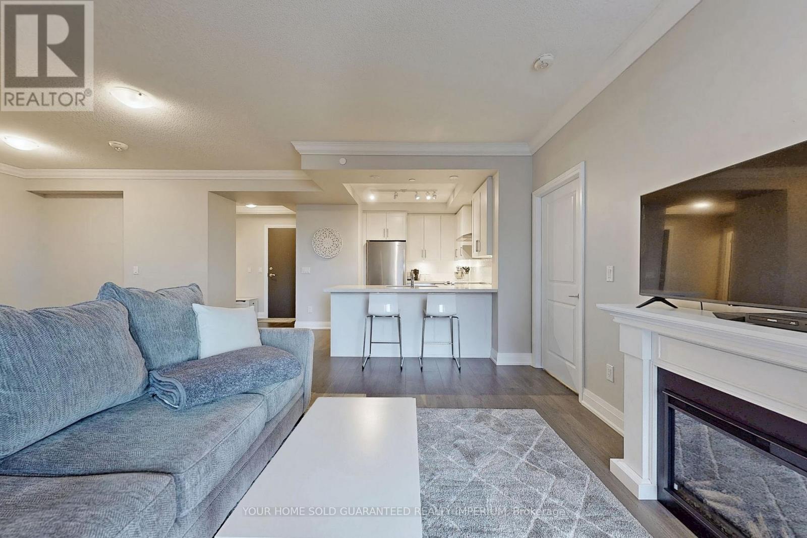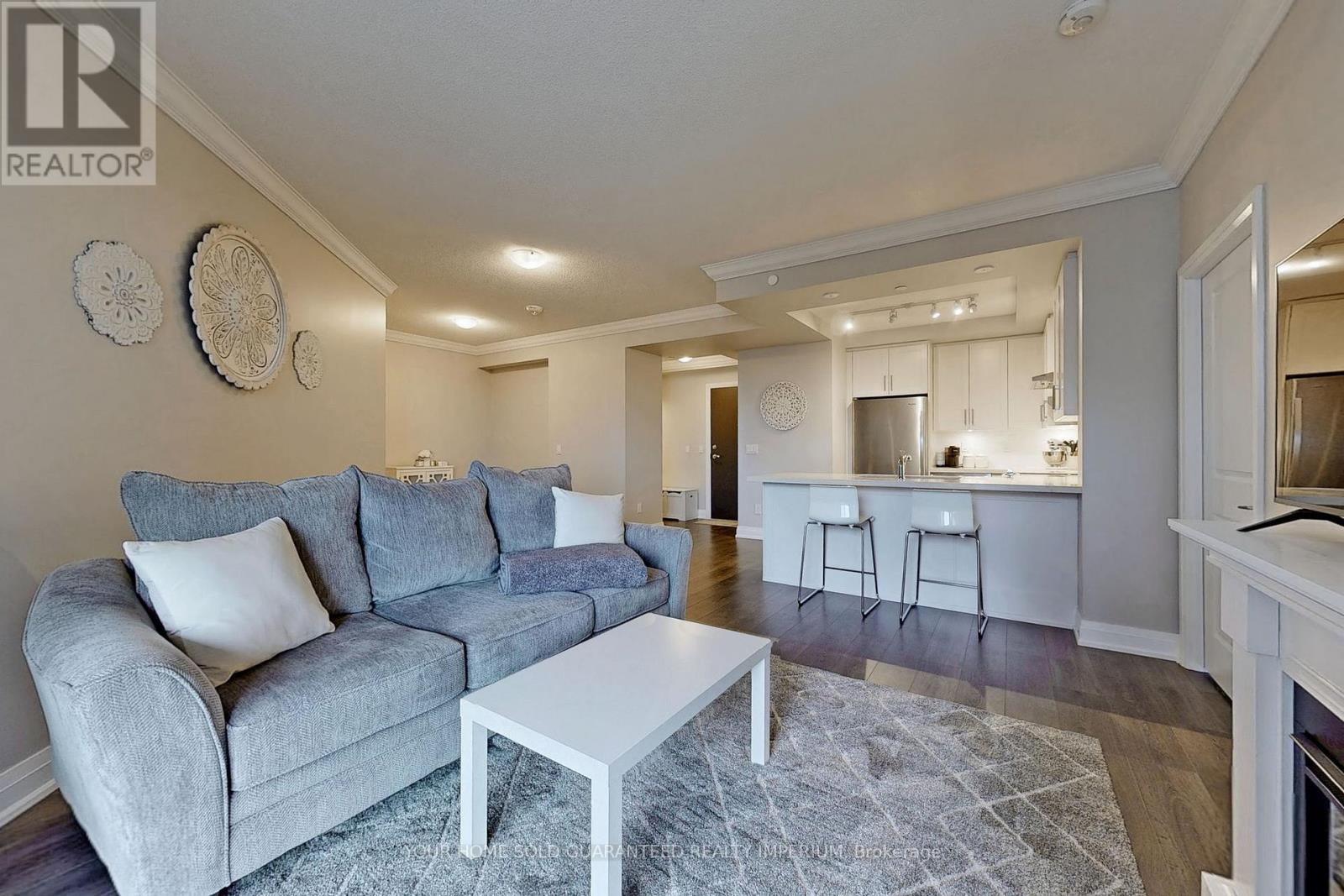 Welcome to this bright, south-facing suite at the luxury Condos of Hampton Place. This spacious 1-bedroom plus den residence offers an open-concept layout with 878 sq. ft. of interior living space, plus a 119 sq. ft. south-facing balcony with stunning views.The modern white kitchen features stainless steel appliances, quartz countertops, and a stylish tile backsplash. The primary bedroom includes a walk-in closet and a generous 4-piece ensuite with glass shower and double vanity. Additional features include ensuite laundry, two walk-outs to the balcony, two side-by-side parking spaces, and a storage locker. Hampton Place offers exceptional amenities, including a gym, a party room, and a convenient dog wash station. Ideally located close to shops, restaurants, schools, parks, trails, and the GO Station. (42037807)
