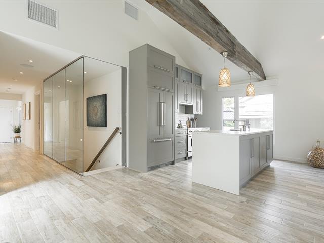 Stunning, fully rebuilt in 2017, this 3+2 bedroom bungalow is ideally located in the sought-after Pointe-Claire South. Featuring 4 full bathrooms, radiant heated floors on both levels, new windows, roof, heat pump, electrical, plumbing, and so much more. The open-concept living area boasts cathedral ceilings, a propane fireplace, and high-end finishes throughout. Enjoy an oversized garage with ample storage and a private backyard patio, perfect for entertaining. Book your visit today! (56190513)