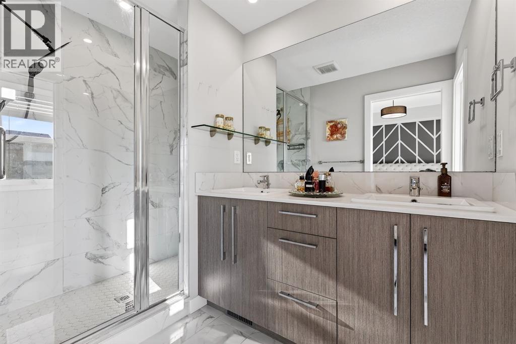 Welcome to this beautifully maintained NO CONDO FEE townhouse located in the heart of Chestermere, offering the perfect blend of style, space, and functionality. Tastefully upgraded throughout, the main floor features a bright open-concept layout and a stunning chef’s kitchen complete with a gas stove, stainless steel appliances, a large breakfast bar, and a central island—ideal for everyday living and entertaining. Upstairs you’ll find three spacious bedrooms, including a comfortable primary retreat with a private ensuite featuring a walk-in tiled shower, plus an additional full main bathroom. The upper-level laundry room adds convenience and practicality to your day-to-day routine. The fully developed basement expands your living space with a large recreation area, a fourth bedroom, and a full bathroom—perfect for guests, teens, or a home office setup. Step outside to enjoy the backyard complete with a deck and patio, ideal for summer BBQs and relaxing evenings. A double detached garage completes the package, offering plenty of parking and storage.A rare find with no condo fees, upgrades throughout, and a fantastic location—this home is a must-see! (31582335)