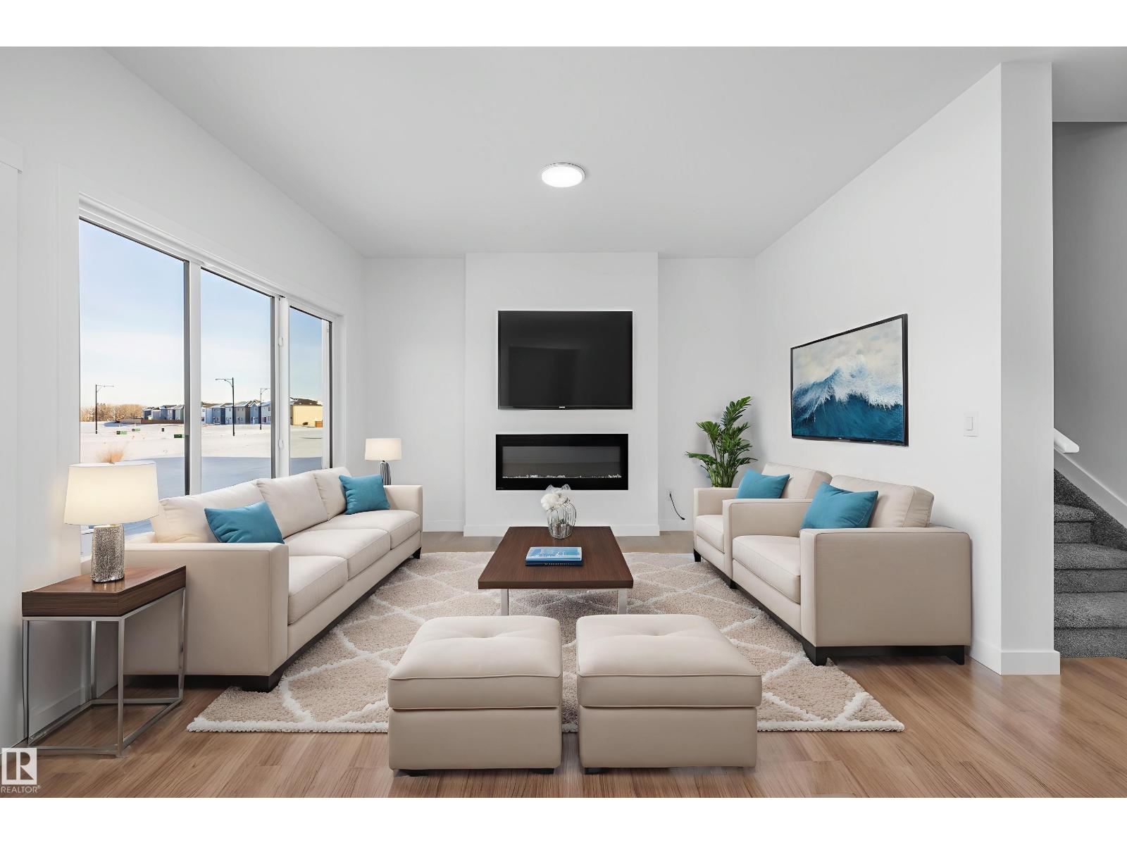 The Renew is a beautifully finished half-duplex offering a double attached garage with a floor drain, a separate side entrance, and 9’ ceilings. The open-concept main floor features durable Luxury Vinyl Plank flooring and an inviting foyer that leads to a sleek powder room. Designed for culinary enthusiasts, the kitchen boasts Quartz countertops, a flush-ledge island, and premium soft-close cabinetry with a corner pantry and chimney-style hood fan. Natural light fills the great room, which is anchored by a modern electric fireplace and sliding doors ready for a future deck. Upstairs, a central bonus room provides a versatile second living area near the dedicated laundry space and two spacious secondary bedrooms. The primary retreat includes a private walk-in closet and an ensuite with a tub-shower combination. Completed with brushed nickel fixtures and a basement rough-in, this home delivers quality and style in a functional, well-planned layout. (33771766)