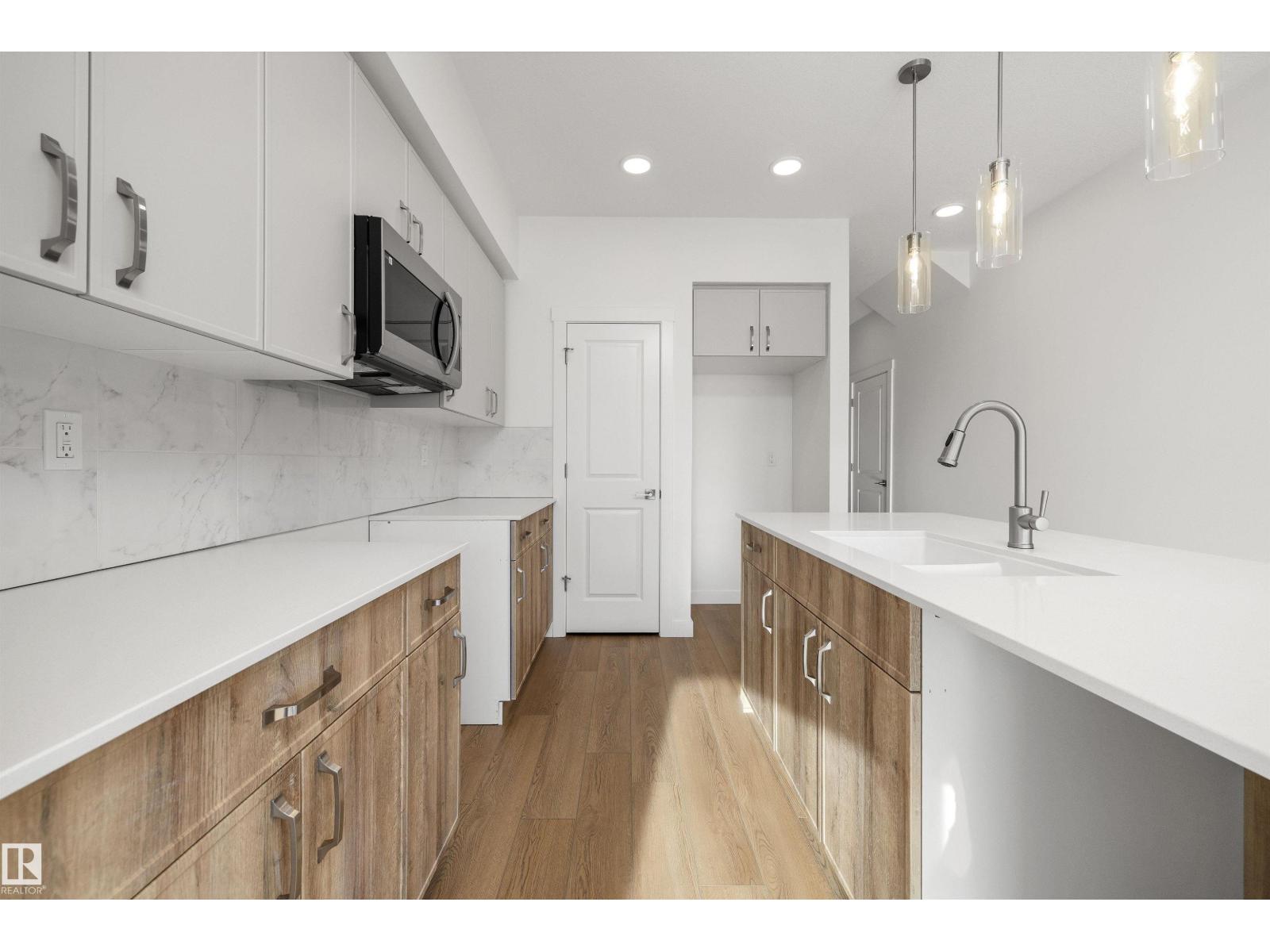 Built by Sterling Homes, this beautifully designed laned home in The Uplands at Riverview offers warm, modern living in one of West Edmonton’s fastest-growing communities. Triple-pane windows and 9’ ceilings flood the main floor with natural light, creating a bright, welcoming feel. The kitchen shines with quartz countertops, a spacious island, upgraded cabinetry, full-height tile backsplash, and a corner pantry, all overlooking the open living and dining areas. A central garden door leads to the backyard for easy indoor-outdoor flow. A main-floor bedroom and full bath add flexible space for guests, work, or hobbies. Upstairs, enjoy a cozy bonus room and a relaxing primary suite with walk-in closet and private ensuite. Two additional bedrooms, a full bath, and convenient upper-floor laundry complete the level. With a side entrance, luxury vinyl plank flooring, and basement rough-ins for future development, this home is designed for comfort and growth. (33771774)