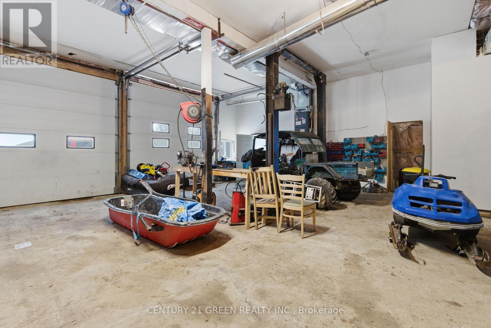 Opportunity to own a 2022 built,4-season home featuring a premium, heated 1,200+ sq ft workshop (equipped with 14,000 lb hoist & air compressor). This high-efficiency home offers an open-concept living space with soaring wood-panelled ceilings, pot lighting, and panoramic forest views. Why Move Here? 1. Ultimate Freedom: Located in an unorganized township, enjoy significantly lower property taxes and maximum flexibility for future projects with fewer building restrictions. 2. The Hobbyist's Dream: A massive, professional-grade workshop and dual garages provide unprecedented space for car restoration, boat storage, or trade-work that city zoning simply won't allow. 3. Four-Season Security: Dual heating (100k BTU propane + wood stove backup), tankless hot water, and Starlink internet ensure you stay connected and comfortable regardless of the weather. 4. Lake Lifestyle without the Taxes: Just steps from Seagull Lake and central to the region's best fishing and boating, enjoy the water without the high cost of waterfront maintenance.Includes hot tub room, outdoor pool, and security system. Note: Total sq ft includes residence, workshop, and garages as per seller. Buyer to verify all measurements (42038125)