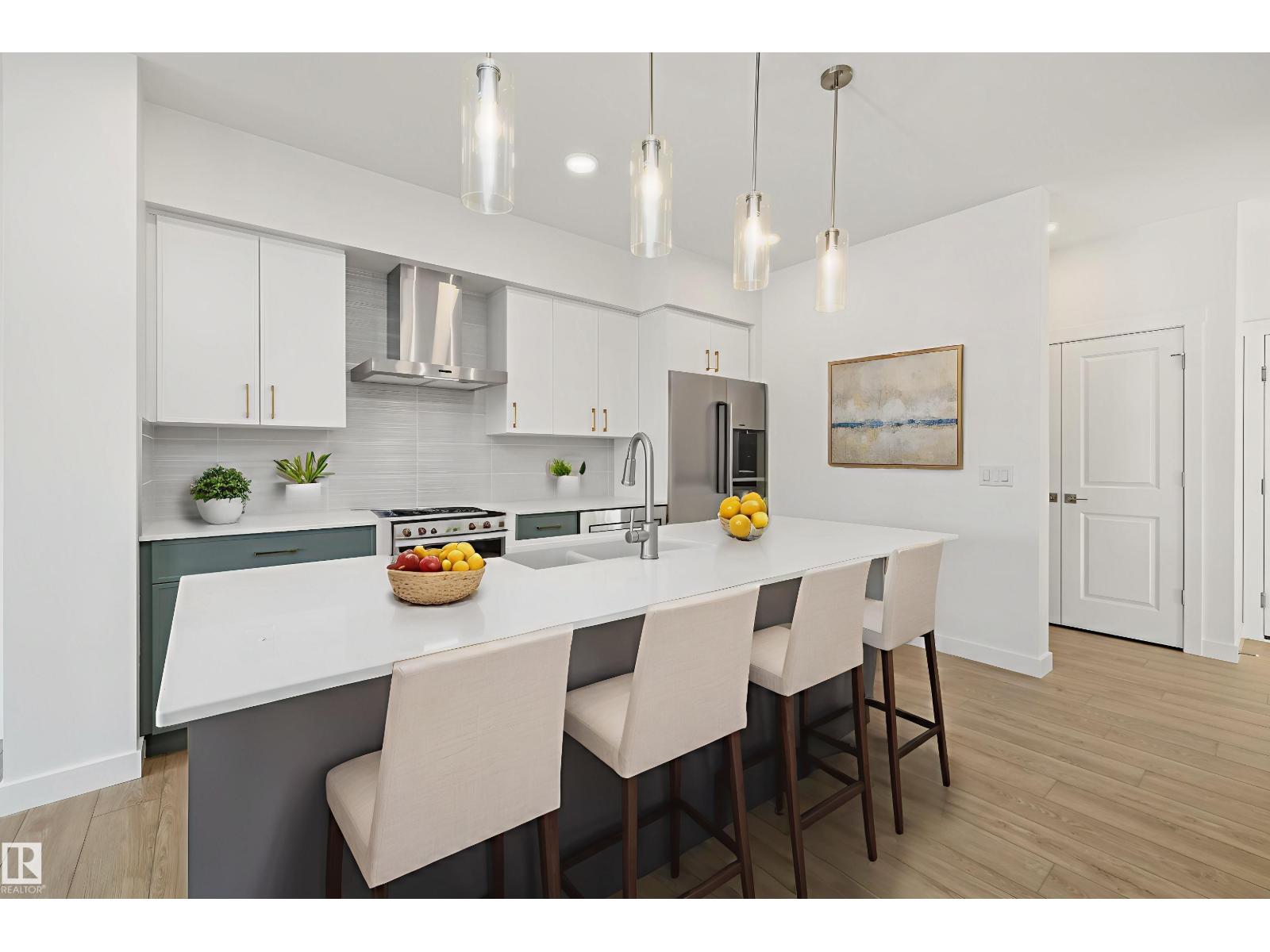 The Retreat Duplex offers a refined sanctuary featuring 9’ ceilings, a double car garage with a floor drain, and durable Luxury Vinyl Plank flooring. The open-concept main level flows from a spacious foyer into an inviting great room centered around an electric fireplace and large windows. Designed for the modern chef, the kitchen boasts Quartz countertops, a Silgranit sink, and a chimney-style hood fan, along with upgraded soft-close cabinetry and a pantry tucked against the staircase. Upstairs, the primary suite serves as a spa-like escape with dual sinks and a large walk-in closet. The second floor also hosts two generous bedrooms, a central 3-piece bath, and a dedicated laundry room with ample folding space. Finished with brushed nickel hardware and a basement rough-in, this layout perfectly balances high-end style with everyday practicality. (33771822)