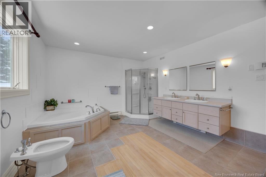 Set on 5.6 private acres with Hammond River frontage, this grand two-storey home offers a rare blend of peaceful country living and refined comfort. Approximately two acres are enclosed by deer fencing, creating a private, park-like retreat. Outdoor features include established gardens and mature trees that frame the home with privacy and year-round colour in a serene, park-like setting. Additional highlights include a 15 x 30 heated in-ground saltwater pool, a private pond ideal for winter skating and summer enjoyment, and direct river access for kayaking and small boats, with access to the renowned Sturgeon Alley. A driveway extending to the river provides convenient waterfront access and a riverside picnic area. The home is fully finished on all three levels and designed for family living. A spacious country kitchen with two centre islands anchors the main floor, flowing into generous living spaces. Hardwood flooring runs throughout the home, connected by two stunning hardwood staircases. Six bedrooms are offered in total, with three upstairs and three on the lower level. The double parlour provides flexible living space, with a sun-washed library on one side and a cozy seating area with a woodstove on the other. The primary suite features a walk-in closet and ensuite with a beautiful soaker tub. Offering privacy, space, and understated luxury, this exceptional waterfront property invites a quiet, fulfilling lifestyle with room to grow. (29433973)