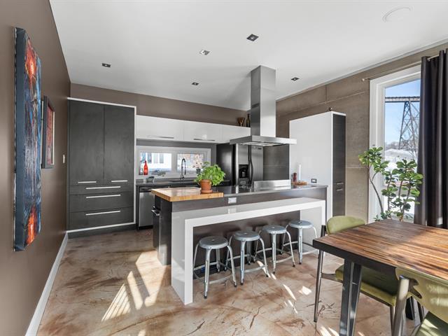 Maison à paliers multiples de style industriel de 37x25 irrégulier incluant le garage, concept à aires ouvertes unique et très design, escalier de métal, à deux pas du parc nautique de Cap-Rouge et ses commodités. Idéal pour amateur d'architecture, possibilité d'une 3e chambre à coucher où le bureau. (40359025)