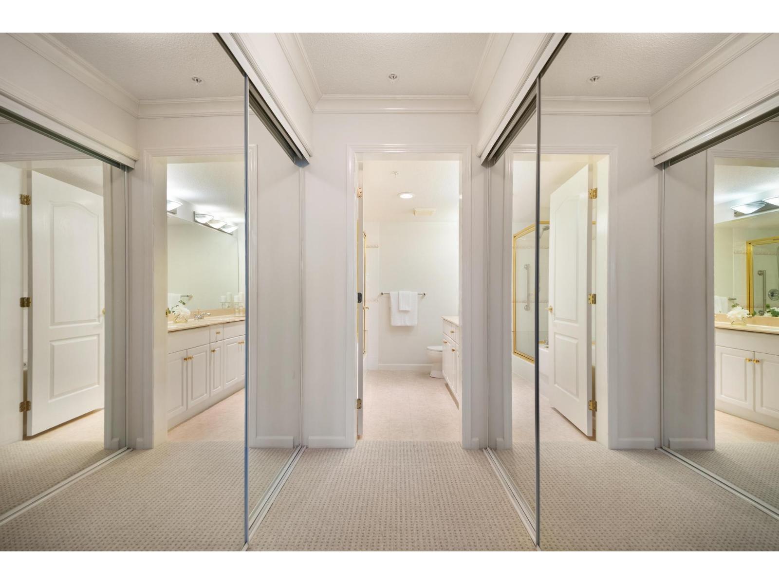 Stratford Garden - Former Georgia Award Complex. Enclave of 3 buildings. Move in ready new paint and flooring. 1065 sq. ft. 2-bedroom, 2-bath plan, with an east facing patio, overlooks front garden. 1 parking stall, locker and bike room. Enjoy 2 guest suites, party, exercise room and pool rooms, plus large and fully stocked workshop. All ages welcome, primarily working people and retirees, active social committee. 1 dog or 1 cat and rentals welcome. This complex is well maintained, partially rain-screened with over $1,500,000 in the contingency fund. Sides onto Bakerview Park, easy walk to Semiahmoo Mall and Peninsula Shopping Center. Early possession possible. Open House: Sat. Feb 7, 2 to 3:30 (32385126)
