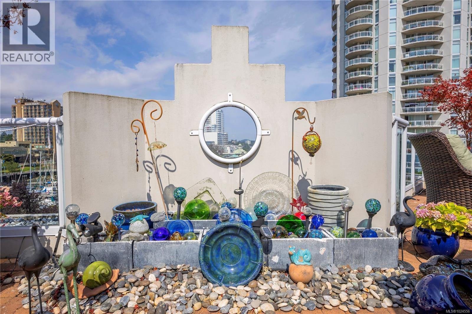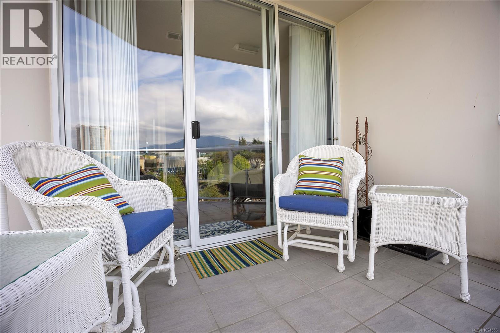 Experience luxury living in this stunning 2 bed, 2 bath 5th floor penthouse condo in the prestigious Gabriola building at Cameron Island, nestled in the heart of downtown Nanaimo. Spanning over 1,700 sq ft of refined interior space, this home offers views of the ocean, city, & mountains through floor-to-ceiling windows & from the expansive 1,000 sq ft private patio, all perfect for entertaining and enjoying the sunset views. Inside, enjoy rich hardwood & tile flooring, granite countertops, & sleek, newer cabinetry that blends functionality with elegance. The open-concept layout seamlessly connects the living, dining, & kitchen areas, creating a bright & inviting atmosphere. The spacious primary suite features a luxurious ensuite & a walk in closet dressing space. Also features in floor heating in kitchen and ensuite bathroom, Island smart irrigation system on patio, granite counters in kitchen, bathrooms and dry bar. The home is cooled and heated with a newer HVAC system and a feature gas fireplace ''gas included with strata fee'' as well as electric baseboard heaters in each room. With 2 underground parking spaces & large storage room, as well as separate bike and kayak storage. With unbeatable walkability to the Port Theatre, waterfront walkway & promenade, boat basin, shopping, restaurants & entertainment this executive style penthouse home offers the best of west coast living. 1 Dog or Cat friendly (Max 25 lbs). All data is approximate and to be verified. (30326225)