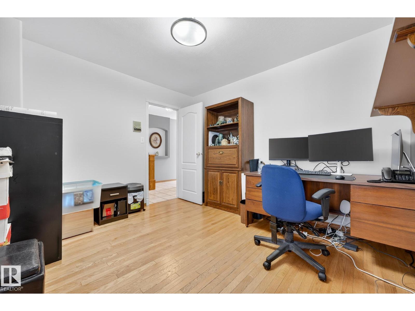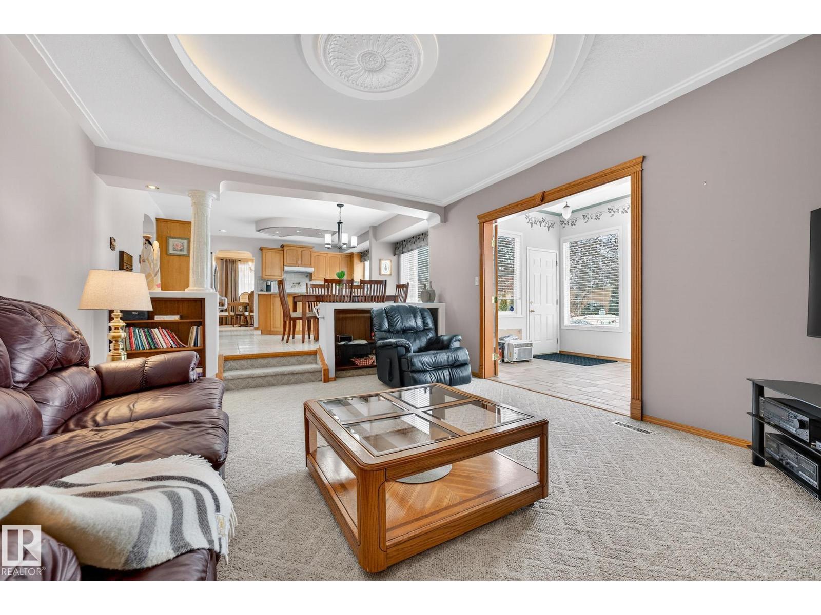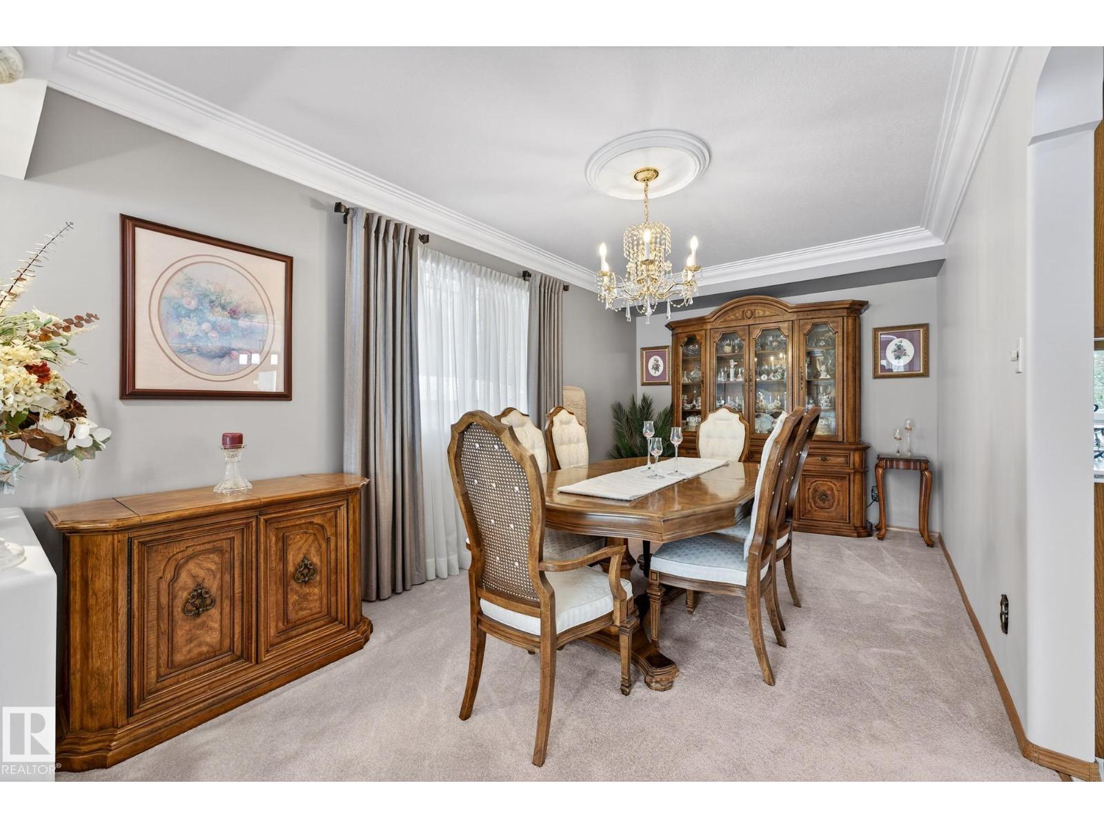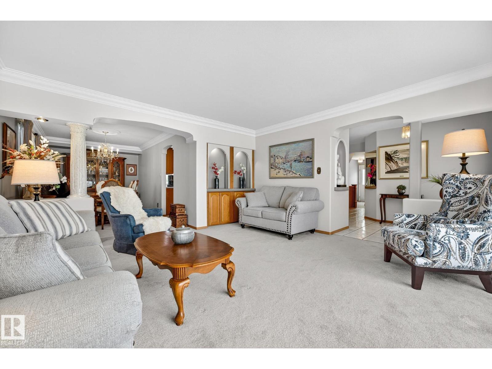 Finding a forever home is rare. Built by Ace Lange and lovingly cared for by the same family since the 1980s, this is a home that feels settled, solid, & quietly special. Life here is easy and well-designed. The main floor offers two living rooms, one anchored by a fireplace, a large kitchen with a central island, & the rare convenience of a main floor bedroom & laundry. A bright sunroom overlooks the landscaped yard, creating a calm place to slow down & enjoy the day. Multiple air conditioning units keep things comfortable through the summer. Upstairs, three bedrooms create a balanced layout, including a private primary suite with its own deck. The fully finished basement adds flexible living space, generous storage, & two additional rooms. Outside, the fenced pie-shaped lot offers privacy and room to breathe. Tucked into a quiet cul-de-sac across from a park, with easy access to schools, transit, & the Whitemud, this over 2,500 sq ft home with a heated dble attached garage is ready for its next chapter. (33773488)