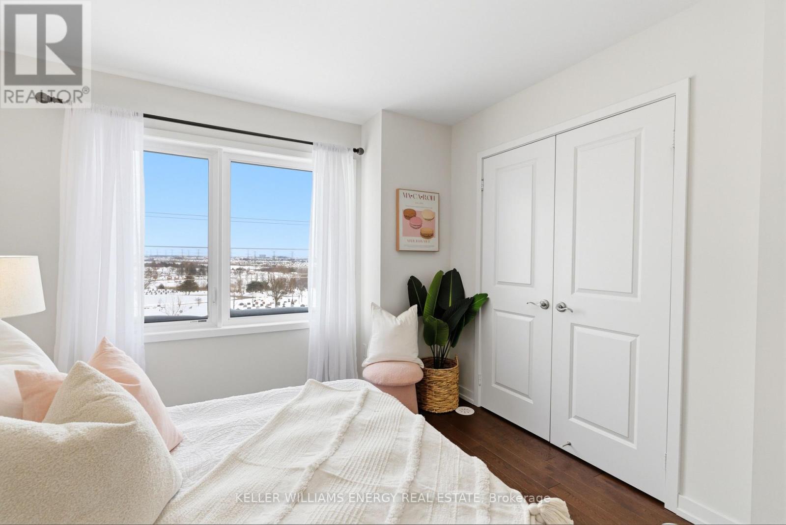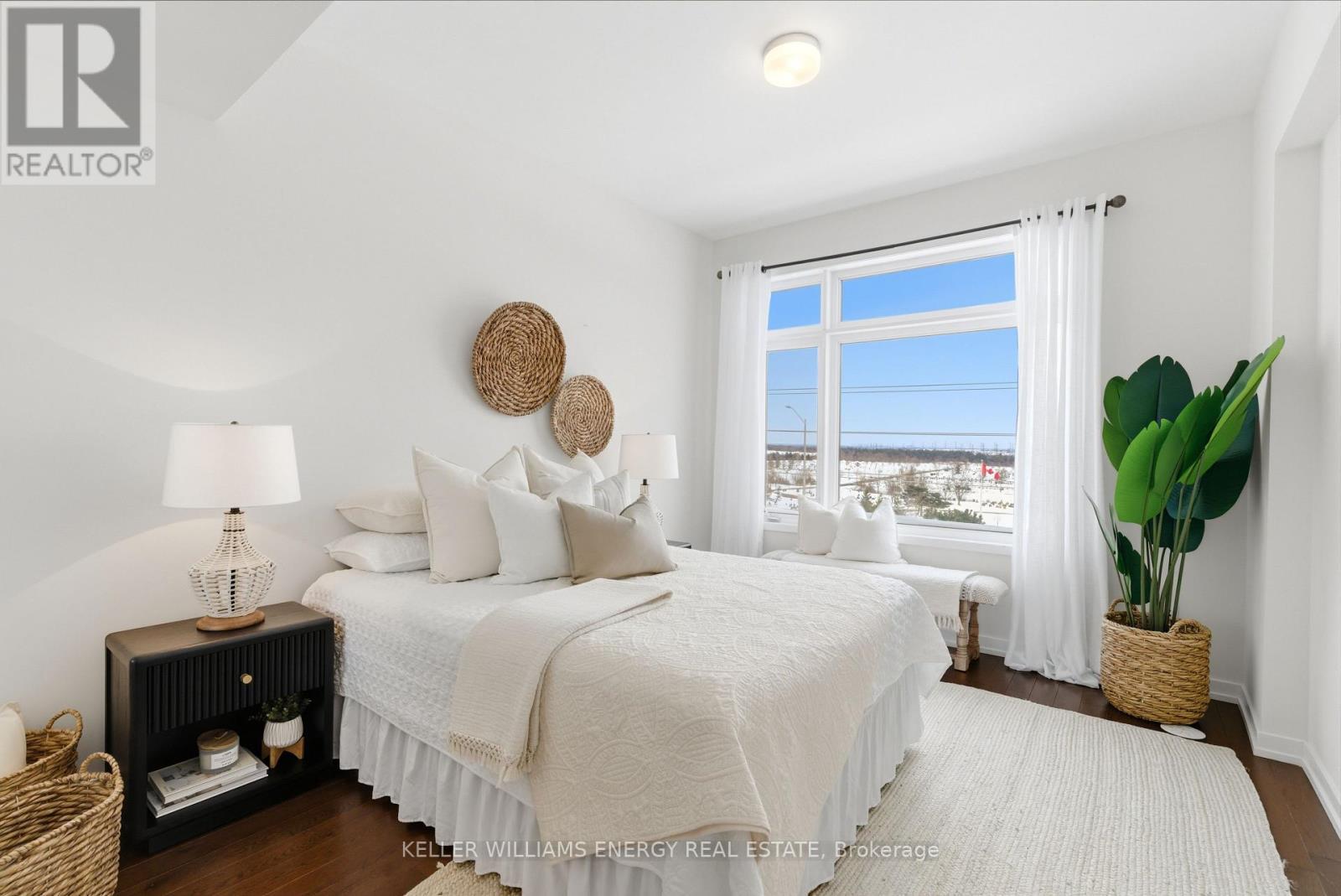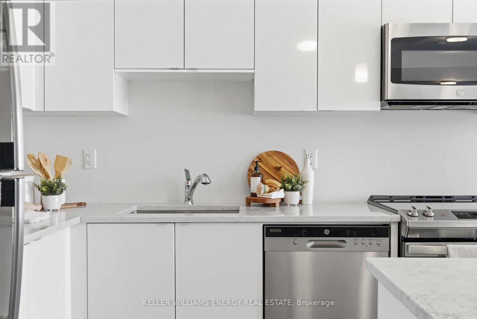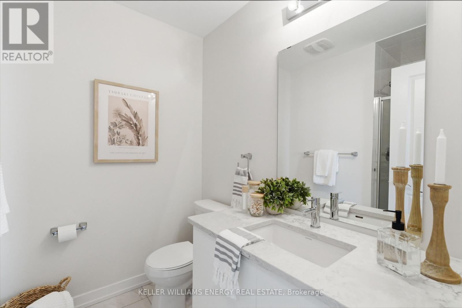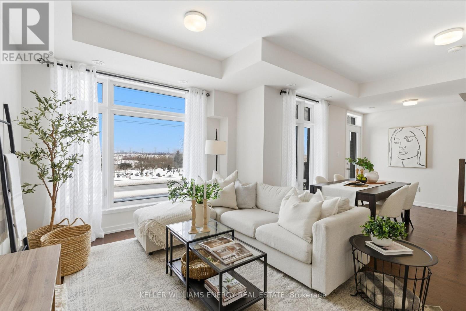 Welcome To This Stunning Home Featuring Modern Upgrades Throughout, Located In The Heart Of Pickering! Step Inside To A Welcoming Entry Level Featuring A Convenient Closet And Direct Access To The Garage. Upstairs, The Bright And Spacious Open-Concept Living Area Impresses With 9-Foot Ceilings, Hardwood Flooring, And An Updated Powder Room. The Modern Kitchen Boasts Stainless Steel Appliances, Quartz Countertops, And A Centre Island With Seating, Seamlessly Flowing Into The Living And Dining Areas. Large Windows Flood The Space With Natural Light And Lead To Your Private Balcony, Perfect For Morning Coffee Or Entertaining Guests. The Upper Level Offers Hardwood Flooring Throughout, Convenient Stackable Laundry, A Stylish Main Bathroom And Two Great Sized Bedrooms, Including A Serene Primary Retreat With 9.5-Foot Ceiling, Large Window, Walk-In Closet, And A Sleek 3-Piece Ensuite With A Walk-In Glass Shower! Outside, Enjoy A Nearby Park And Every Amenity You Could Dream Of Just Steps Away. This Move-In-Ready Home Offers The Perfect Blend Of Comfort, Style, And Convenience, Simply Unpack And Start Enjoying Everything It Has To Offer! Home Was Built In 2021. All Kitchen Appliances (2021), Clothes Washer & Dryer (2021), Powder Room (2025). Monthly Maintenance Fees Include Exterior Window Cleaning, Visitor Parking, Community Space Use & Maintenance (Park) & Garbage Collection. (42041411)