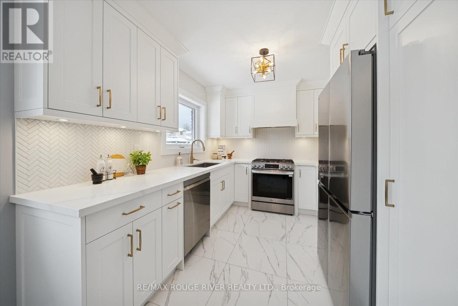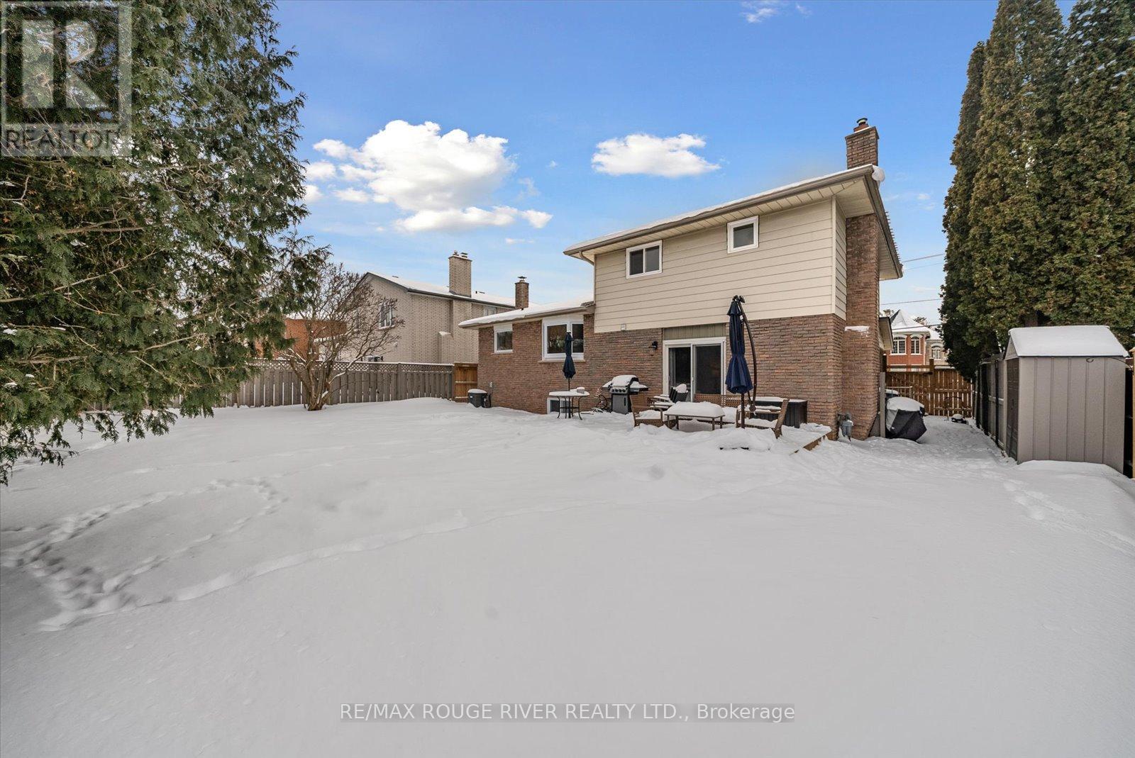 This RENOVATED 4-level sidesplit has almost 2500 sq ft of living space and sits on a quiet, non-through street on the Whitby-Oshawa border, featuring a rare 60-foot wide fully fenced lot. Fantastic location to enjoy trails and parks!!!! The main floor offers a bright, open-concept living and dining area highlighted by a large bow window that fills the space with natural light. High-end finishes run throughout the home, including smooth ceilings and hardwood floors, and ceramic tile in the kitchen and bathrooms. The new custom kitchen was fully renovated in 2025 and serves as the centrepiece of the main level. The layout provides great separation for families, with the family room featuring a gas fireplace and a walk-out to a brand-new deck. Upstairs has 3 bedrooms with a recently renovated 3-piece ensuite in the primary bedroom. The lower levels add significant living space, including a finished basement with 10-foot ceilings. This area is set up with a large recreation room, a fourth bedroom, and a separate office. Updates to the home include windows, main-floor laundry updated, front door, garage doors, primary ensuite renovation, driveway and front landscaping, back deck/fencing and sod, laminate floors in basement, furnace, Brand New Custom Kitchen renovation 2025 with new kitchen appliances including gas stove. (42041484)