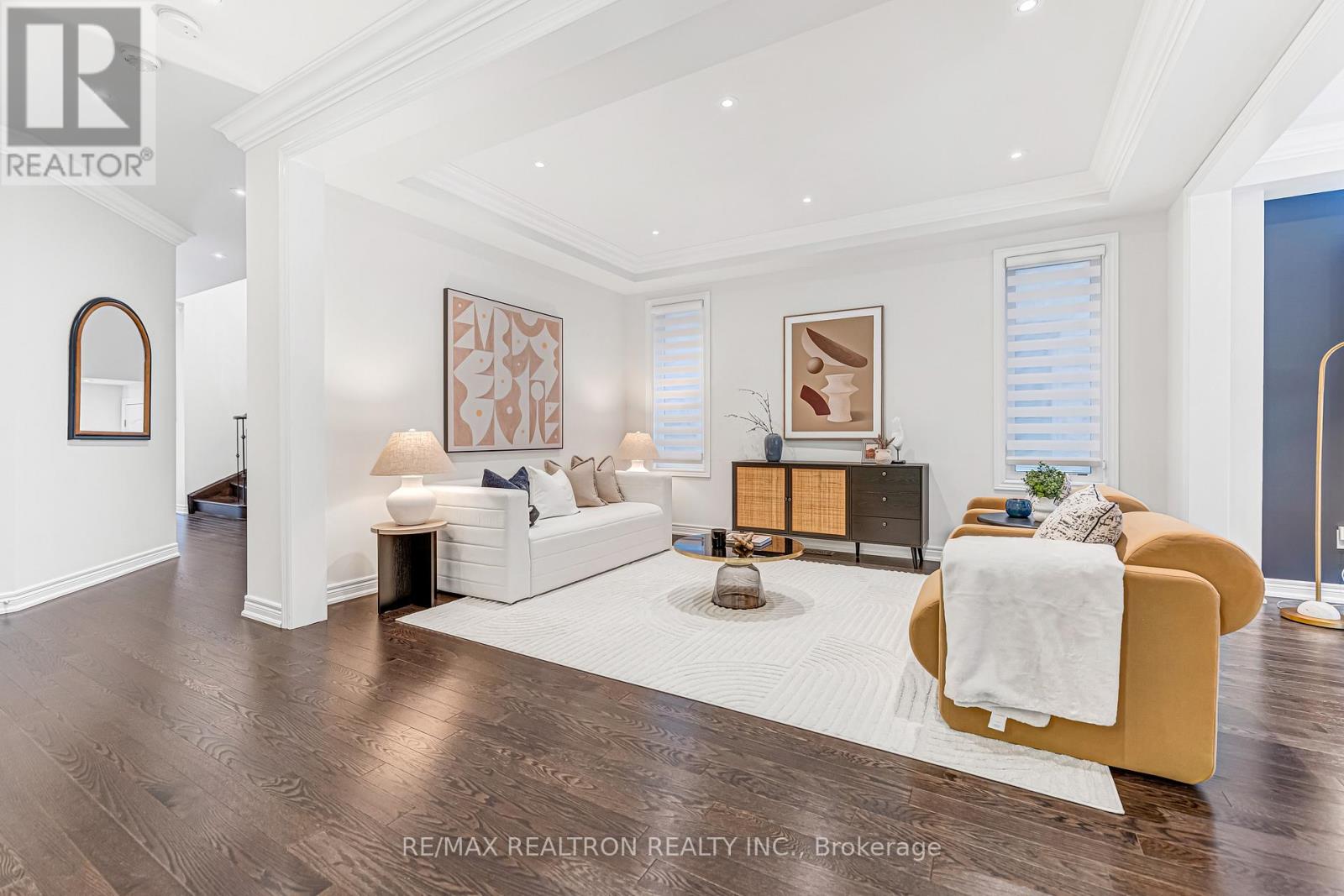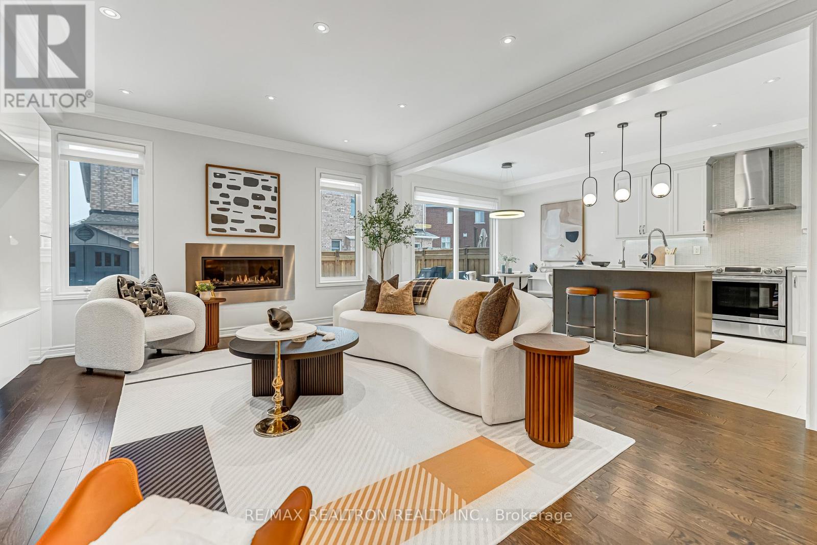 Stunning detached home with 4 ensuite bedrooms and a double car garage, ideally situated in a highly sought-after Aurora neighbourhood. Offering approximately 2,961 sq ft of well-designed living space, this home features 9 ft ceilings and hardwood flooring on the main level, complemented by coffered ceilings and pot lights throughout main floor, creating a bright and welcoming atmosphere. The family room serves as the heart of the home, showcasing a custom feature wall with an integrated media unit and ample built-in storage, anchored by a sleek gas fireplace - perfect for everyday family living and relaxed entertaining. The modern open-concept kitchen features a large centre island with breakfast bar, quartz countertops, undermount sink, full-height cabinetry, stainless steel appliances, elegant pendant lighting, and a contemporary tile backsplash. A sun-filled breakfast area with walk-out to the backyard enhances seamless indoor-outdoor living. The second floor offers four generously sized bedrooms, each with its own ensuite bathroom, along with a versatile office or sitting area ideal for work or study. The spacious primary retreat features a stylish accent wall, walk-in closet, and a well-appointed 5-piece ensuite. Enjoy a private, fully fenced backyard with a generous stone patio - ideal for outdoor dining, family gatherings, and summer enjoyment. A bright main-floor laundry room with utility sink, storage closet, and direct access to the garage adds everyday convenience. Conveniently located close to T&T Supermarket, shopping plaza, golf courses, GO Train, and Hwy 404. Within the highly regarded Dr. G.W. Williams Secondary School district (IB Program). (42041466)