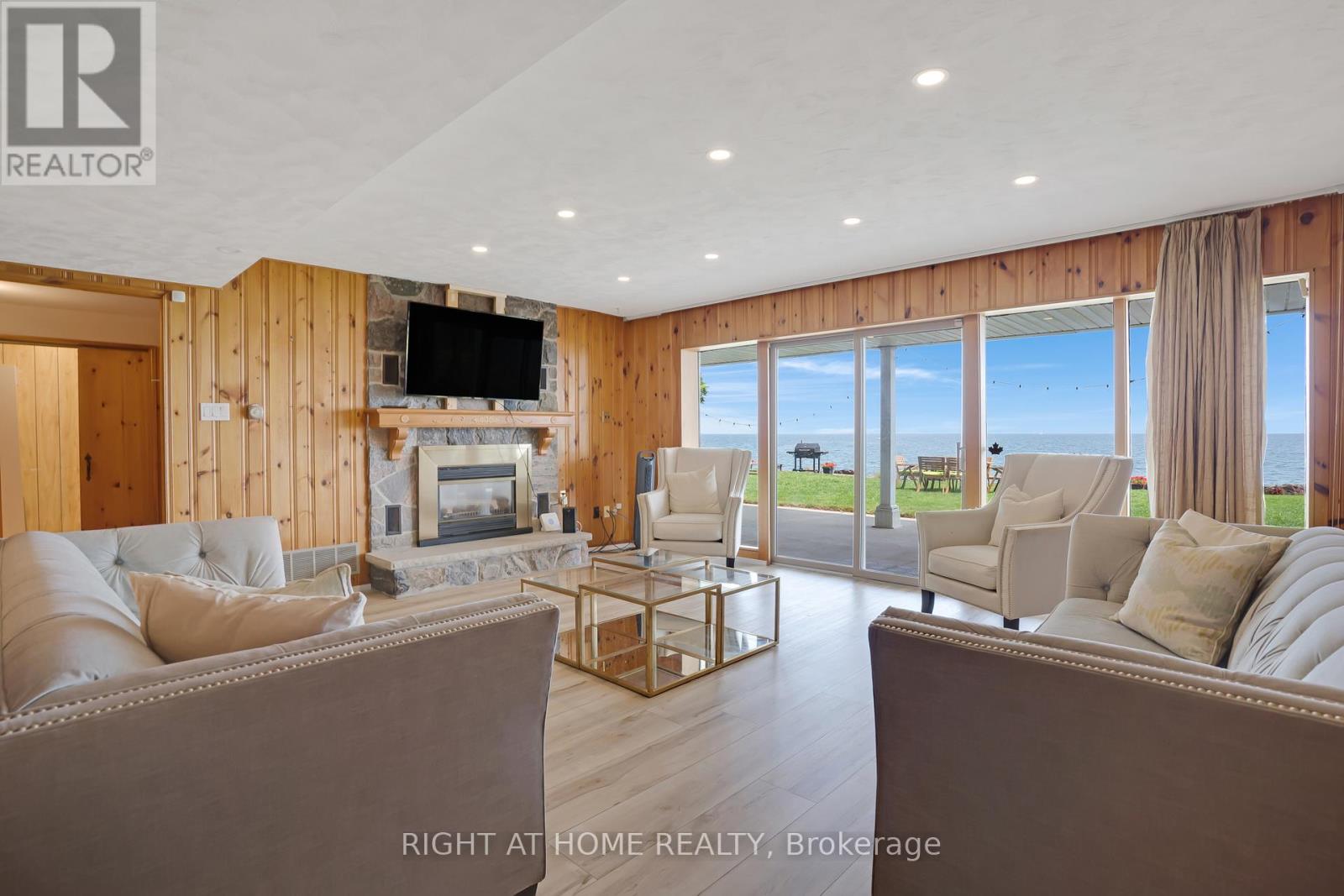 Welcome to an exceptional opportunity on Lakeshore Road, an extraordinary 100ft wide waterfront lot w/direct shoreline access and breathtaking views of Lake Ontario, including the Toronto city skyline. This fabulous raised bungalow w/a walk-out lower level offers over 2,200 sq ft on the main level and sits on a beautifully landscaped 100 x 135 lot. The property also includes modern architectural plans by David Small Designs, presenting a rare chance to renovate or rebuild your dream home on one of the few remaining wide-lot waterfront properties in the area. The home has been meticulously maintained and offers a spacious, light-filled layout. Floor-to-ceiling windows on both the main and lower levels capture sweeping, uninterrupted views of the lake, filling the home with natural light and bringing the outdoors in. The standout dining room addition is wrapped in glass, creating a truly immersive lakefront living experience. The main level features 3 bedrooms and 2 full bathrooms, along with a separate private office ideal for working from home. The primary bedroom retreat includes sliding doors that open to a private deck, where you can enjoy spectacular lake views morning to night. Rich hardwood flooring and elegant design elements add warmth and character throughout the home. The bright, walkout lower level offers even more living space, featuring a spacious recreation room, a games area, and a 3-pc bathroom. With large windows that echo the main floor's stunning views, the lower level feels just as open and connected to the surrounding landscape, making it perfect for entertaining, hosting guests, or creating a peaceful retreat. Outside, enjoy complete privacy and direct access to the waters edge, ideal spot to relax, watch the sunrise, or take in the city skyline across the lake. Located within walking distance to parks, schools, and shopping, this property offers a truly unique opportunity to live in one of the area's most coveted lakefront settings. (42041514)