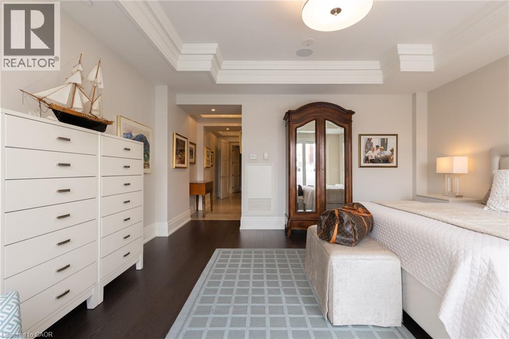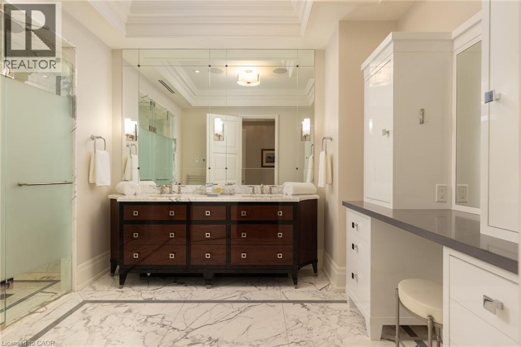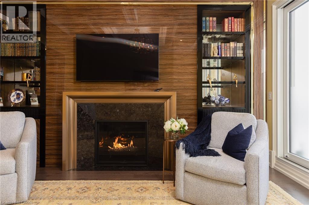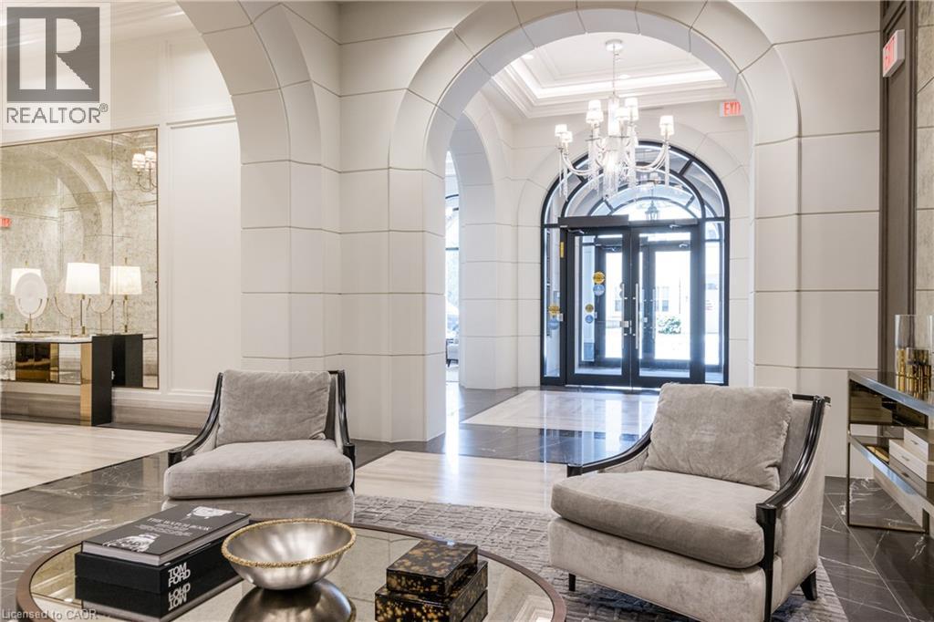 Discover True Luxury Living in This Exceptional Oakville Suite. Welcome to an extraordinary residence that redefines sophisticated condominium living. This stunning two-bedroom suite encompasses an impressive 2,290 square feet of meticulously designed living space, where every detail has been carefully curated to create an atmosphere of refined elegance. Upon entering through the grand rotunda, you are immediately greeted by exquisite slab marble flooring that establishes the tone for the opulence that awaits within. The thoughtful design continues throughout, featuring rich hardwood flooring, intricate millwork, and striking zebra wood accents that speak to the exceptional craftsmanship found in this home. The gourmet kitchen presents a culinary enthusiast's dream, complete with top-of-the-line Wolf, Subzero, and Miele appliances, a generous island for meal preparation and casual gatherings, plus an entire wall of pantry cupboards, and walk-in pantry for additional storage. The Great Room beckons relaxation with built-in cabinetry, and a warm gas fireplace. Step through to the private 335 sq ft terrace for morning coffee or evening contemplation. Entertain graciously in the separate dining room, showcasing zebra wood built-in cabinetry with dedicated wine storage. The primary bedroom suite offers terrace access, a walk-in closet, and a luxurious 4 pc ensuite featuring a vanity area, radiant heated floors and a pampering Kohler toilet ($8500 value). The 2nd bedroom functions beautifully as a home office with custom built-ins and its own 3 pc ensuite. Modern convenience abounds with the integrated Crestron system controlling music, lighting, and motorized blinds throughout. 2 side-by-side parking spaces and a storage locker complete this offering. Built by the acclaimed Rosehaven Homes, this residence sits moments from Lake Ontario, fine dining, boutique shopping, & provides effortless access to major transportation routes including the nearby transit station. (70103900)