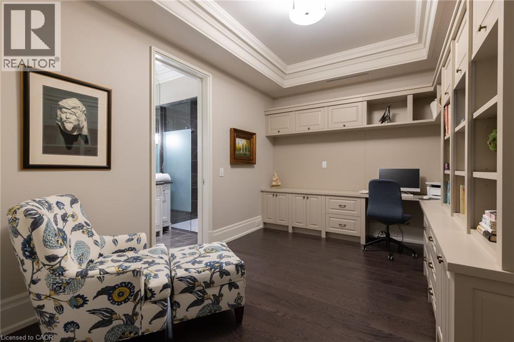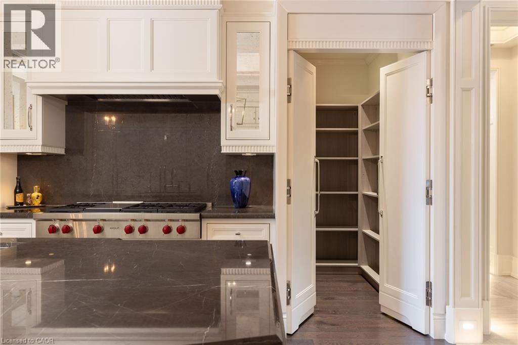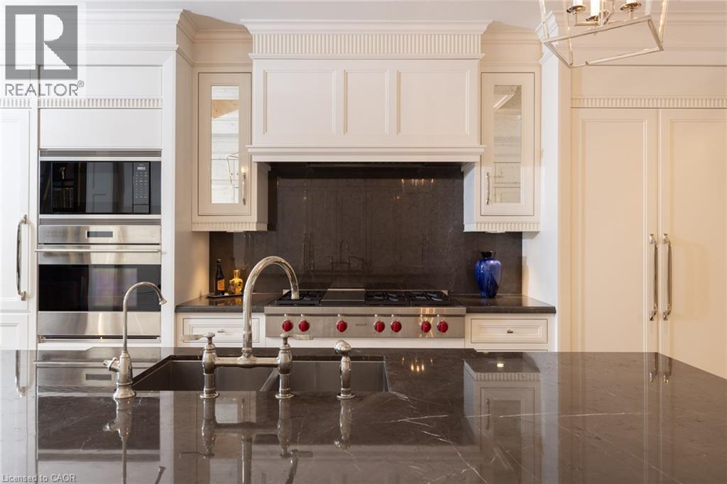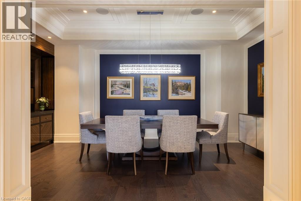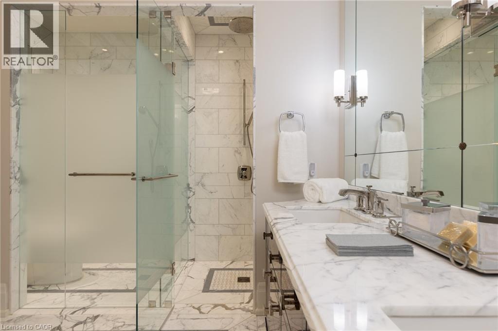Discover True Luxury Living in This Exceptional Oakville Suite. Welcome to an extraordinary residence that redefines sophisticated condominium living. This stunning two-bedroom suite encompasses an impressive 2,290 square feet of meticulously designed living space, where every detail has been carefully curated to create an atmosphere of refined elegance. Upon entering through the grand rotunda, you are immediately greeted by exquisite slab marble flooring that establishes the tone for the opulence that awaits within. The thoughtful design continues throughout, featuring rich hardwood flooring, intricate millwork, and striking zebra wood accents that speak to the exceptional craftsmanship found in this home. The gourmet kitchen presents a culinary enthusiast's dream, complete with top-of-the-line Wolf, Subzero, and Miele appliances, a generous island for meal preparation and casual gatherings, plus an entire wall of pantry cupboards, and walk-in pantry for additional storage. The Great Room beckons relaxation with built-in cabinetry, and a warm gas fireplace. Step through to the private 335 sq ft terrace for morning coffee or evening contemplation. Entertain graciously in the separate dining room, showcasing zebra wood built-in cabinetry with dedicated wine storage. The primary bedroom suite offers terrace access, a walk-in closet, and a luxurious 4 pc ensuite featuring a vanity area, radiant heated floors and a pampering Kohler toilet ($8500 value). The 2nd bedroom functions beautifully as a home office with custom built-ins and its own 3 pc ensuite. Modern convenience abounds with the integrated Crestron system controlling music, lighting, and motorized blinds throughout. 2 side-by-side parking spaces and a storage locker complete this offering. Built by the acclaimed Rosehaven Homes, this residence sits moments from Lake Ontario, fine dining, boutique shopping, & provides effortless access to major transportation routes including the nearby transit station. (70103900)