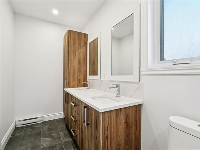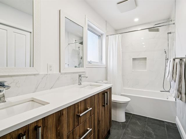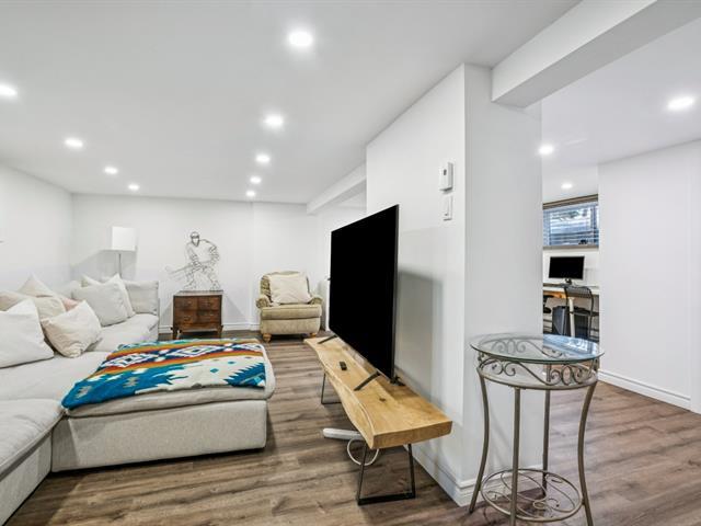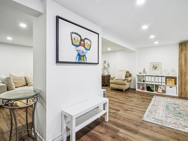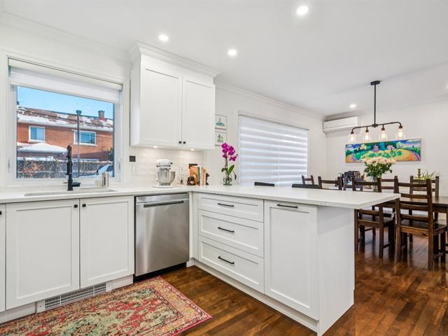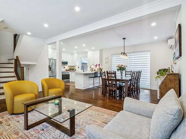 Need a home office? This sunny property has been tastefully renovated with high-end materials. Located in the sought-after Saint-Laurent Ouest area, this home boasts beautiful hardwood floors and an open-concept main floor featuring a modern kitchen with quartz countertops, a living and dining room, and a powder room, all bathed in sunlight from the morning. A second entrance on the garden level leads to an office/bedroom. Upstairs, three bedrooms and a bathroom with heated floors ensure comfort and functionality. A finished and inviting basement completes the picture. Close to Du Collège metro station. Don't miss out! (52541545)