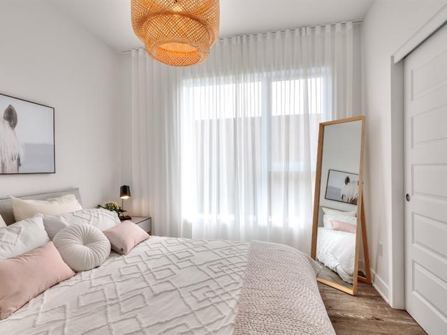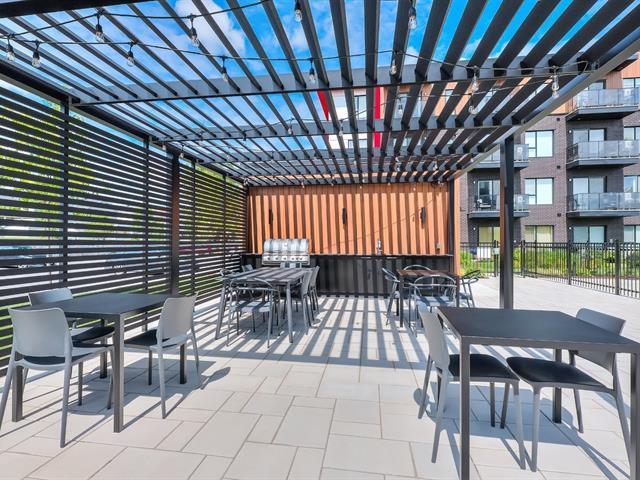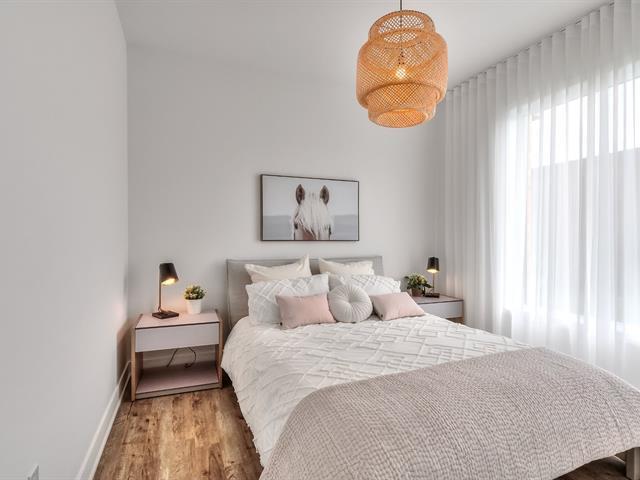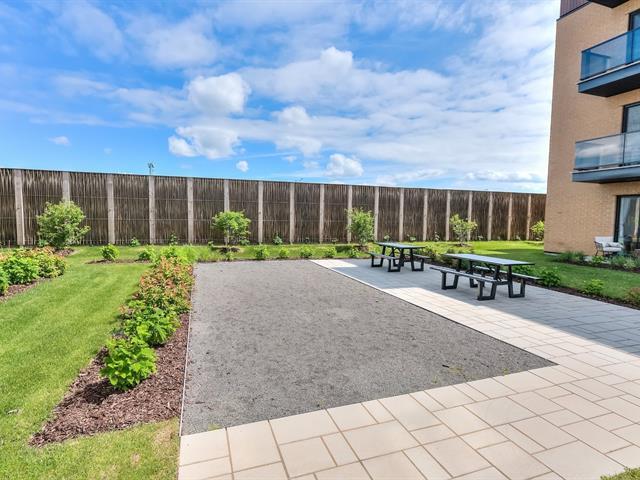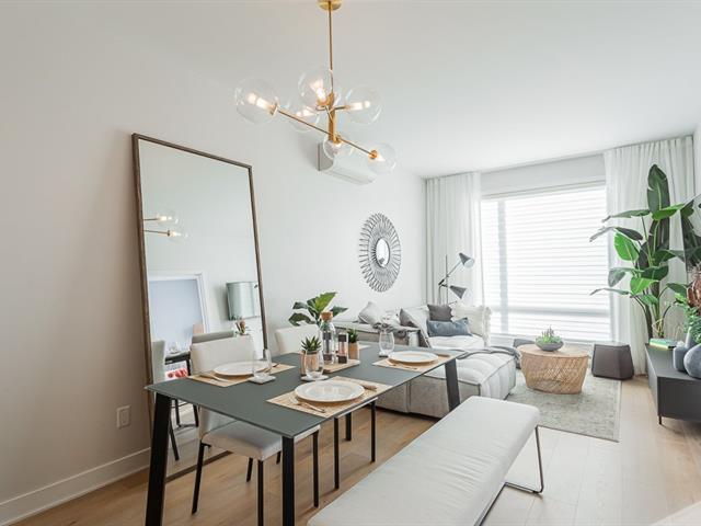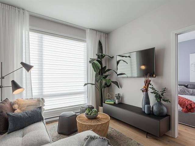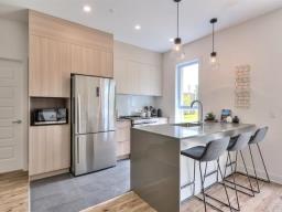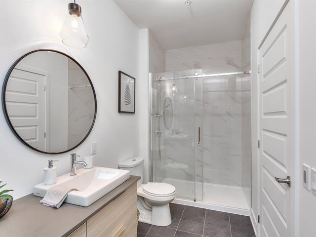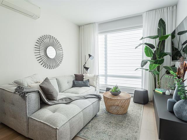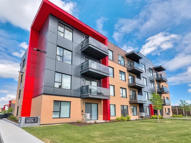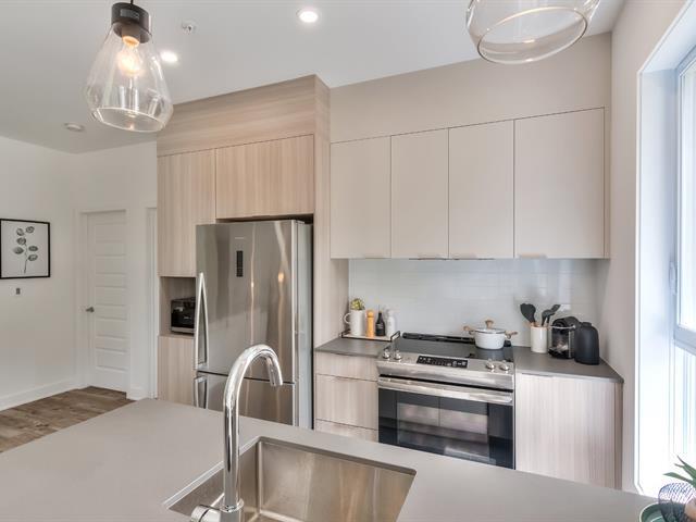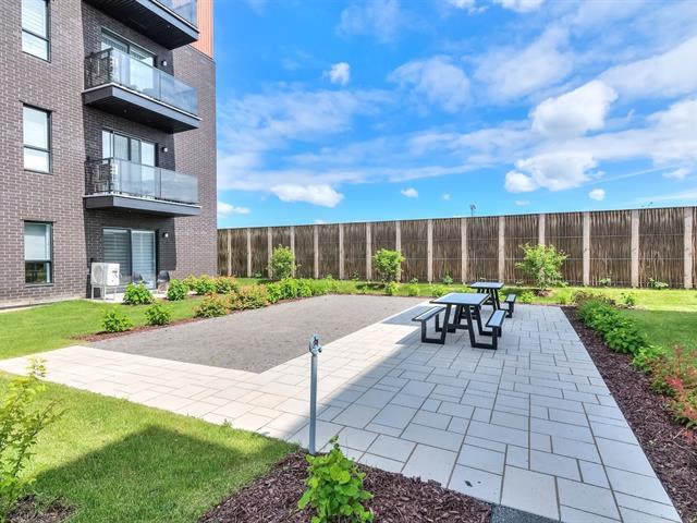 Corner unit with windows on two sides, very sunny. This one-bedroom condo is located on the ground floor in the Aristo project in Laval. Built in 2023, this unit features a beautiful modern kitchen with a quartz island and a bathroom with a glass shower and a quartz vanity. Includes all appliances, two outdoor parking spaces, a storage space, a wall-mounted air conditioner and an air exchanger. Enjoy the gym and the heated outdoor pool. Close to all services and major highways including the 440, 19, 125 and 50. Only 10 minutes from Montreal and Centropolis. Available May 1, 2026. (53079022)