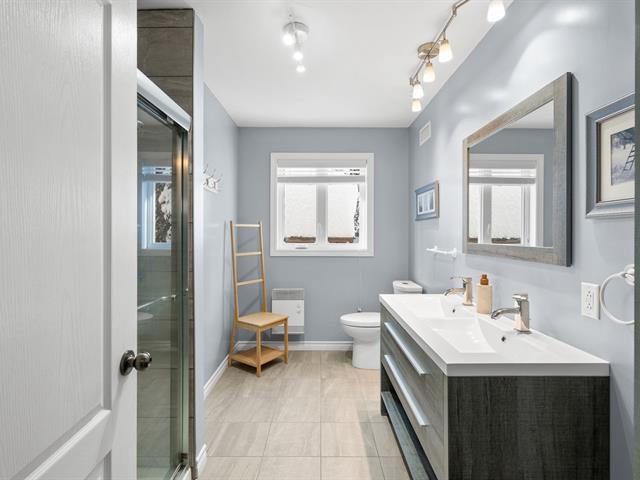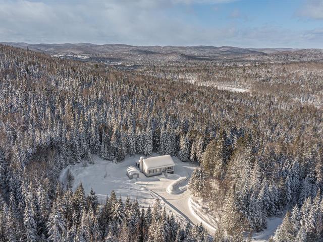 Over 100 acres of private, secluded land, less than 10 minutes from the village of Sainte-Agathe--an absolute rarity so close to the town center. Built in 2017, this bright bungalow stands out for its exceptional natural light and generously sized rooms. It offers 3 bedrooms on the main floor, as well as 1 bedroom and an office in the basement. The main level features a full bathroom, while the basement includes a powder room and a laundry room. The spacious basement also offers a large family room with a wood-burning stove, perfect for creating a warm and inviting atmosphere year-round ! (57640136)