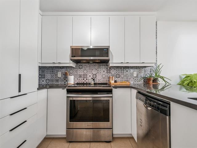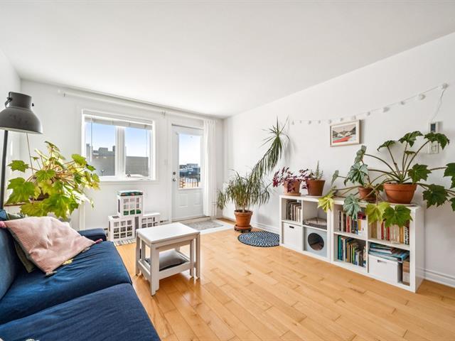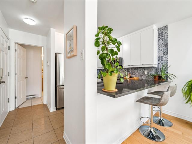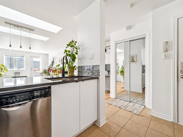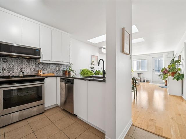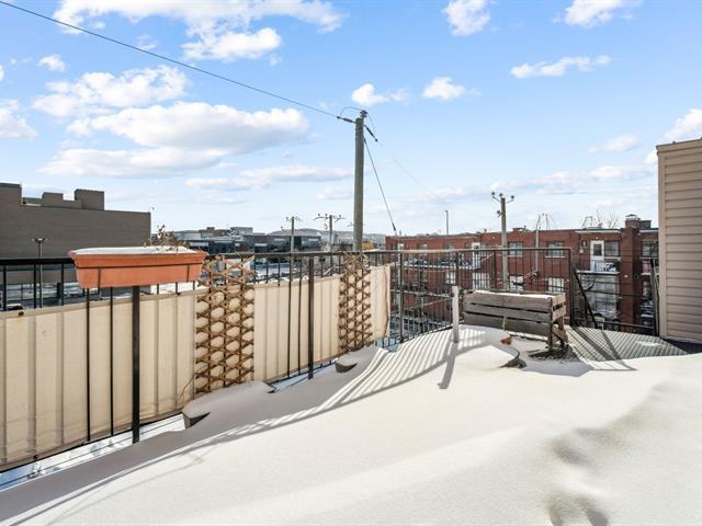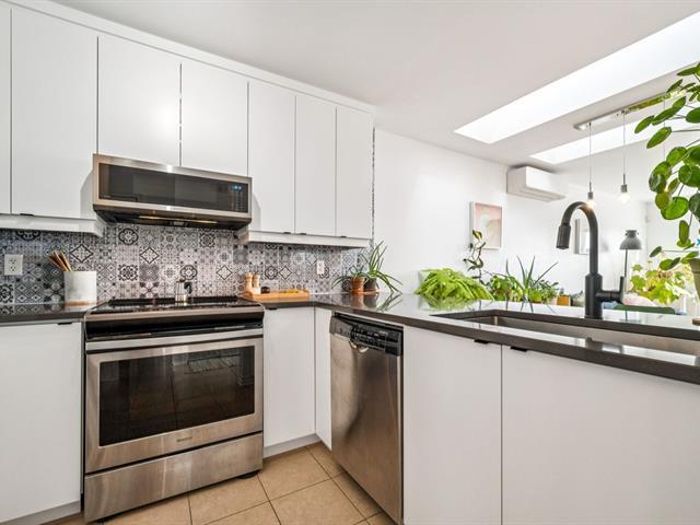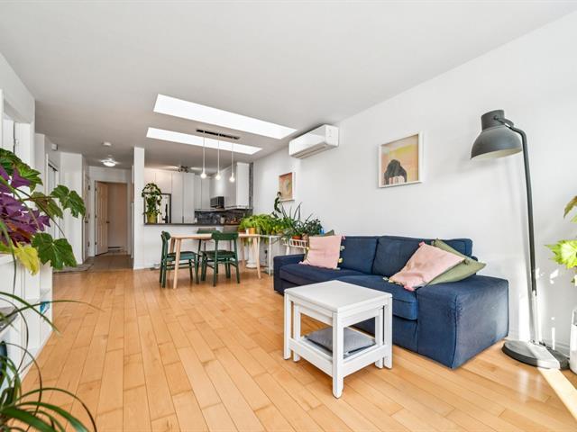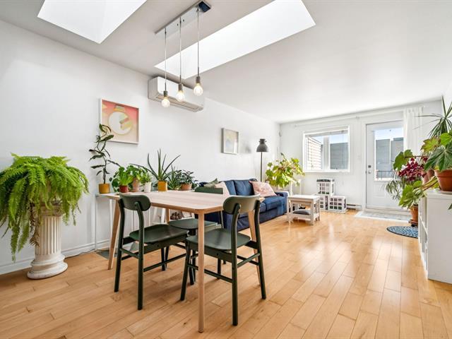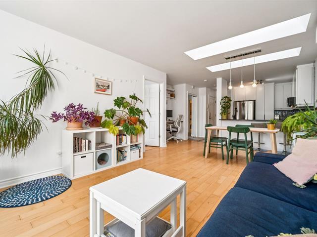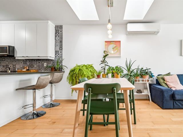 Beautiful modern & bright condo located on the 3rd & top floor of a well-maintained building, offering tranquility & a vibrant neighborhood lifestyle. Features a large bedroom, a home office space & a full bathroom with separate bathtub & shower. Kitchen renovated in 2023 with plenty of storage, open-concept living room & dining area ideal for entertaining. Large south-facing private terrace, 2021 wall-mounted heat pump & stunning skylights. Just steps away from Parc metro station, Parc Jarry & numerous shops; this condo combines comfort, style & a strategic location in a thriving neighborhood! (51089766)