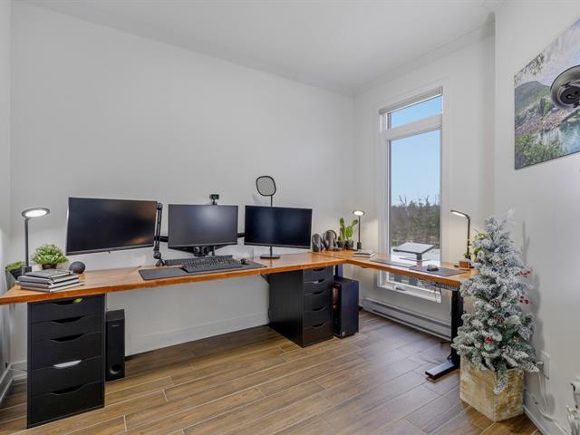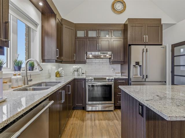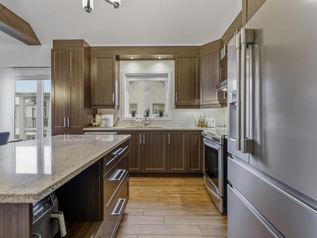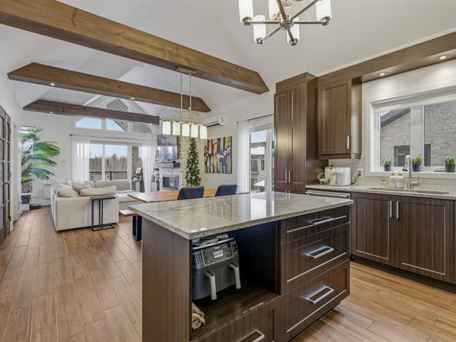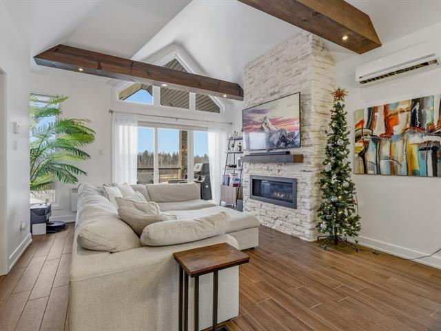 Discover this stunning 1 072 sq. ft condo with impeccable design. From the moment you enter, you will be charmed by the spacious open-concept layout filled with natural light, highlighted by cathedral ceilings and exposed beams that create exceptional volume in the living room. The modern kitchen, featuring granite countertops and a large island, opens onto a welcoming dining area. This unit offers 3 bedrooms and 1 elegant bathroom. Enjoy an ideal quality of life, just steps from Parc Boucher and with quick access to public transportation! Available immediately! (57123192)