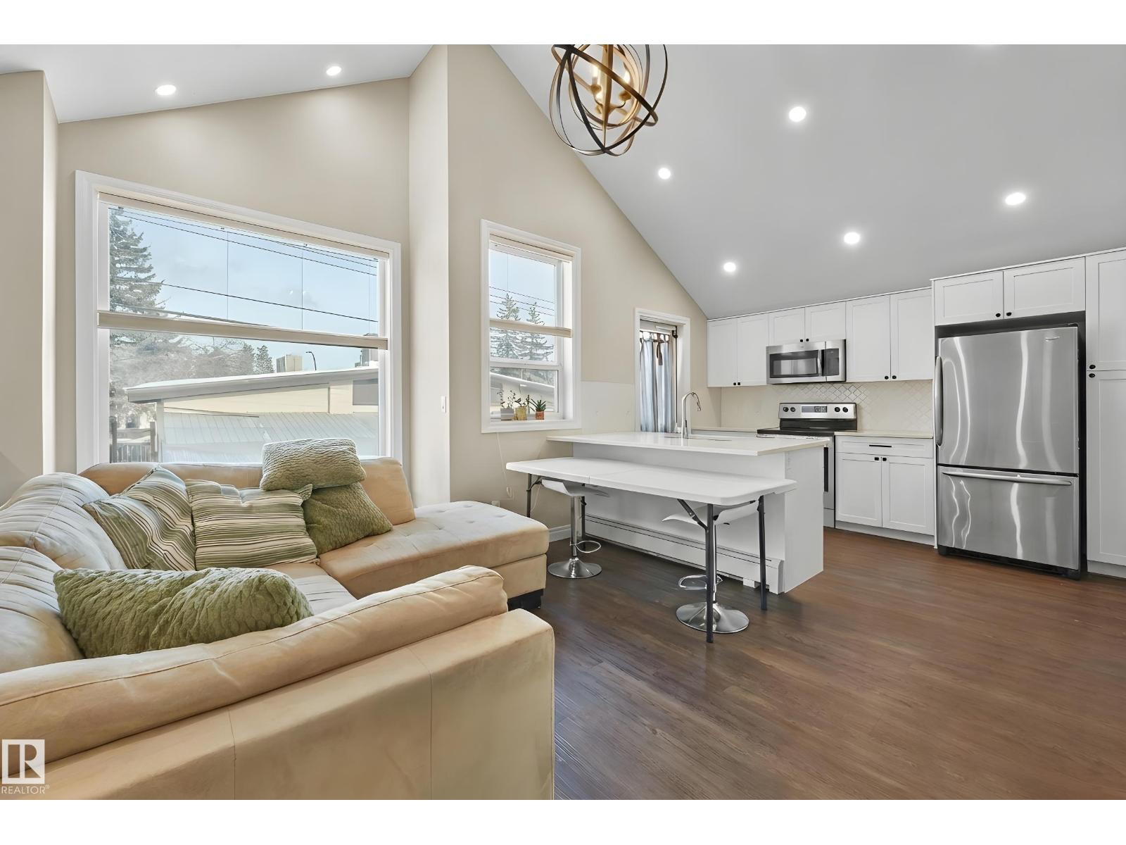 GARAGE SUITE! Exceptional find in one of Edmonton's most desirable neighborhoods! Two independent residences sharing a single lot, perfect for extended families, rental income strategies, or hands-on property owners. The lot includes a classic 3 bedroom, 1.5 bathroom traditional house complemented by a 890 sq/ft premium 2 bedroom 2 bathroom garage suite (approx $235k). This secondary unit showcases cathedral-style ceilings, generous windows, an expansive lounge, modern kitchen w/ Kitchen Craft cabinets & quartz surfaces, outdoor terrace, primary suite w/ private 3pc washroom and custom storage, upper-level laundry, plus a ground-floor bedroom w/ adjacent full bathroom. Climate-controlled parking bay included. The original dwelling provides sun-filled common areas, practical cooking space, powder room downstairs, and three sleeping quarters sharing a renovated four-piece bathroom upstairs. Recent High Eff furnace & newer sewer. Moments from McKernan Park, McKernan schools, retail, and LRT, & Uofa Campus. (33774777)