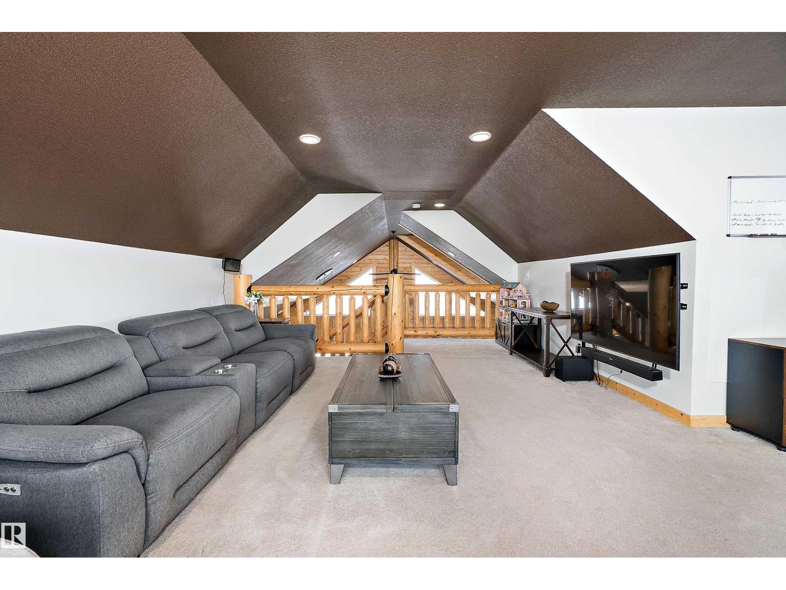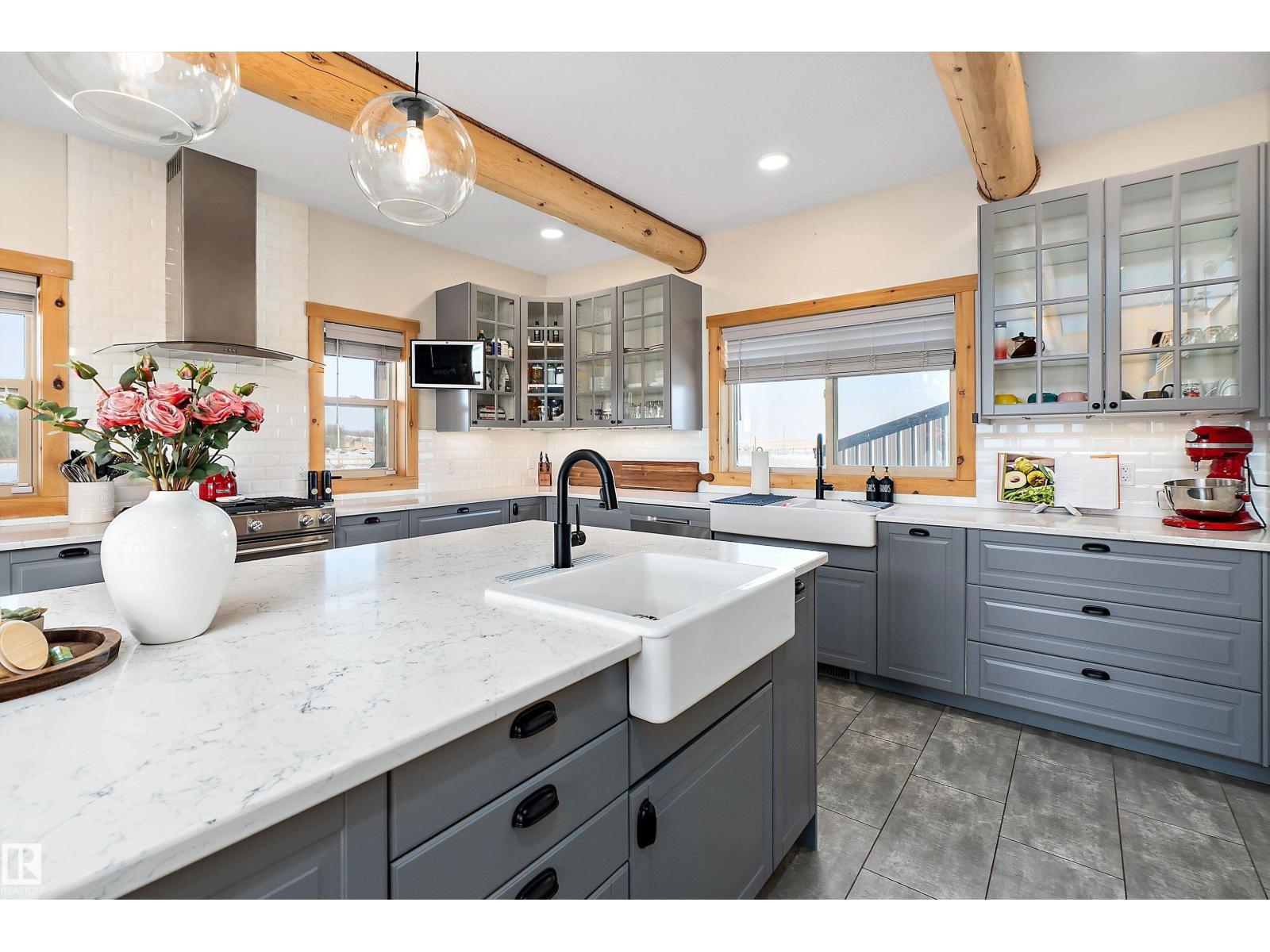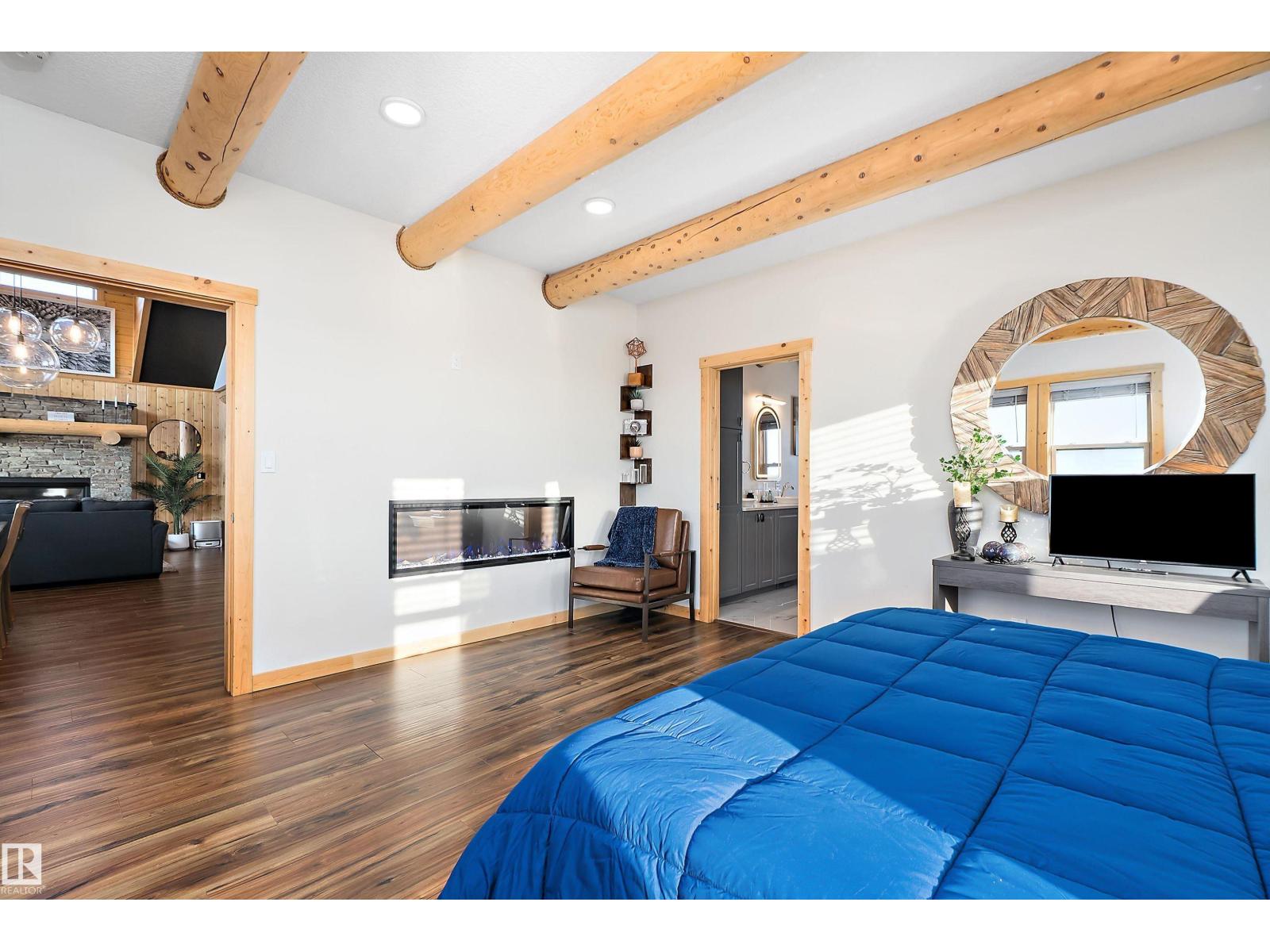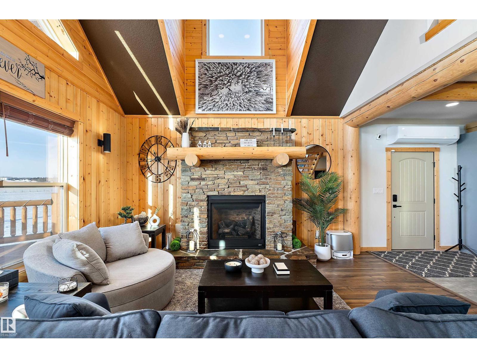 Custom-built Whisper Creek Kodiak Mountain Hybrid on 28.49 acres in Beaver County, blending rustic luxury with modern comfort. This open-concept home features soaring 20’ vaulted ceilings, log accents, expansive windows, and a stunning stone fireplace with log mantel. The loft overlooks the living and dining areas, adding to the grand yet inviting feel. The chef’s kitchen offers soft-close cabinetry, quartz countertops, commercial-size fridge, gas cooktop, walk-in pantry with coffee bar, and a large prep island. The primary suite is a private retreat with a 5-piece ensuite, clawfoot soaker tub, walk-in shower, and 60” electric fireplace. Main floor also includes a spacious mudroom/laundry with locker storage and 2-piece bath. The walkout lower level offers three bedrooms, rec room, kitchenette, 4-piece bath, and access to a covered patio and firepit area. Enjoy wraparound deck, covered front porch, oversized triple garage with subpanel, plus 100-amp RV power—just 30 minutes to Sherwood Park and Edmonton. (33774781)