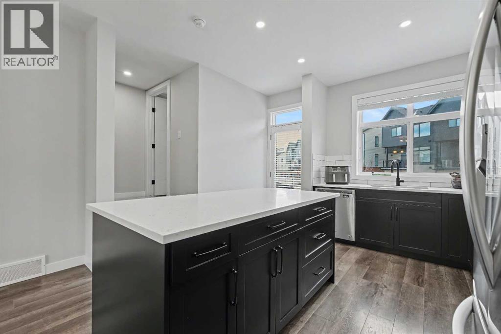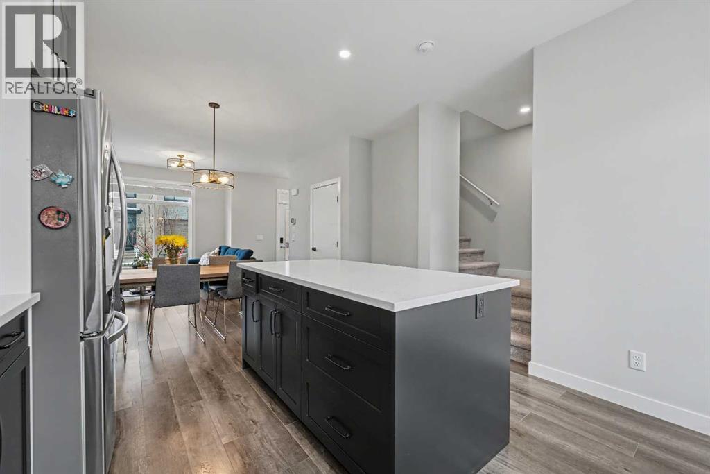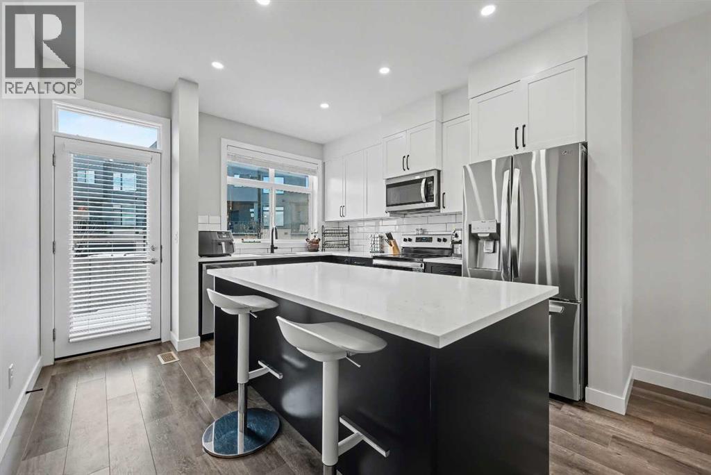 Boasting almost 1,700 sqft of thoughtfully designed living space, this 3 bedroom, 3.5 bathroom townhome offers a bright open layout with contemporary finishes throughout. The main floor features wide plank vinyl flooring, full height kitchen cabinetry with soft close drawers, and a central island with quartz countertops throughout that works beautifully for everyday living and entertaining. From the kitchen, step directly into your private fenced yard, perfect for kids, pets, or relaxing outdoors. Upstairs, the rare dual primary bedroom layout stands out, each with its own walk-in closet and private ensuite. Vaulted ceilings and the convenience of upper-floor laundry complete this well-planned level. The fully developed basement adds even more functionality with a spacious third bedroom, a full 3 piece bathroom, and a cozy family or recreation room. It’s a great option for guests, a home office, or extra living space. Additional highlights include an assigned parking stall and a prime location close to future schools, shopping, medical services, and easy access to Stoney Trail. Outdoor enthusiasts will love the nearby pathways, green spaces, and quick proximity to Nose Creek Park. This beautifully maintained home is a turn-key opportunity for first time buyers, downsizers, or investors. A must-see. (31584950)