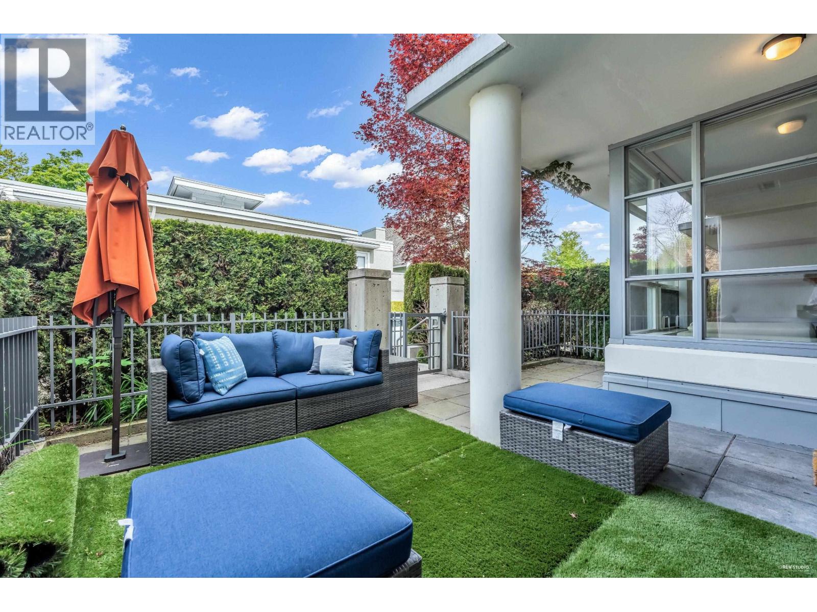 Chancellor House at UBC. COMPLETELY RENOVATED in 2021 by award-winning interior designer Linhan Co. This CONCRETE WIDE townhome offers refined, functional luxury. Featuring 3 bedrooms, 4 bathrooms, and an open-concept living space anchored by a CHEF-INSPIRED kitchen with an extended island and dining area that opens to a large private patio. The kitchen is equipped with luxury European appliances, a high-power exhaust system, and custom cabinetry. Premium finishes include engineered hardwood flooring and Italian tile throughout. The spacious primary suite accommodates a king-size bed, boasts a walk-in closet, spa-like ensuite, and generous storage. The dining area can be converted into a 4th bedroom with direct patio access. Plus two additional wide parking stalls. (32387965)