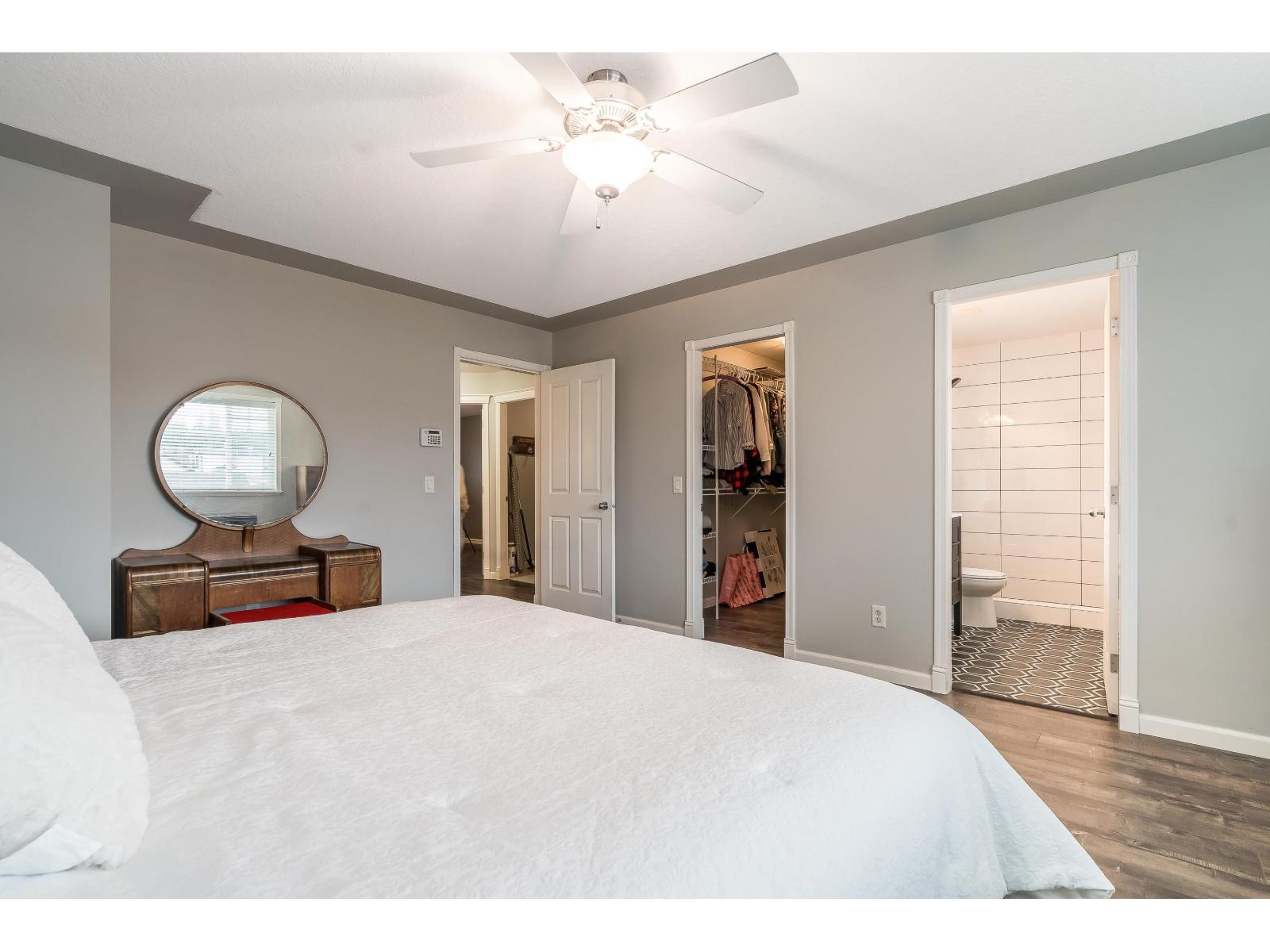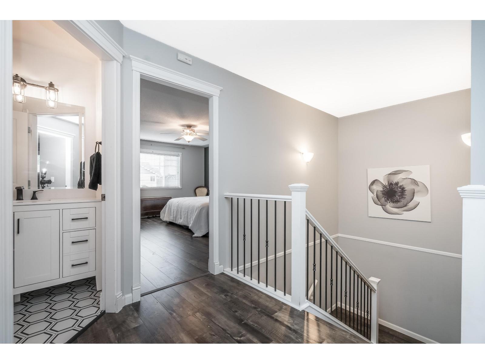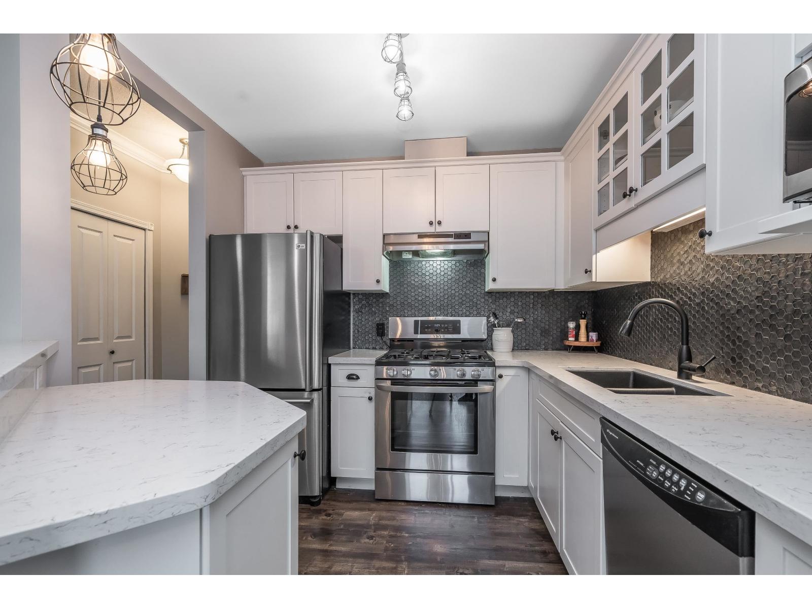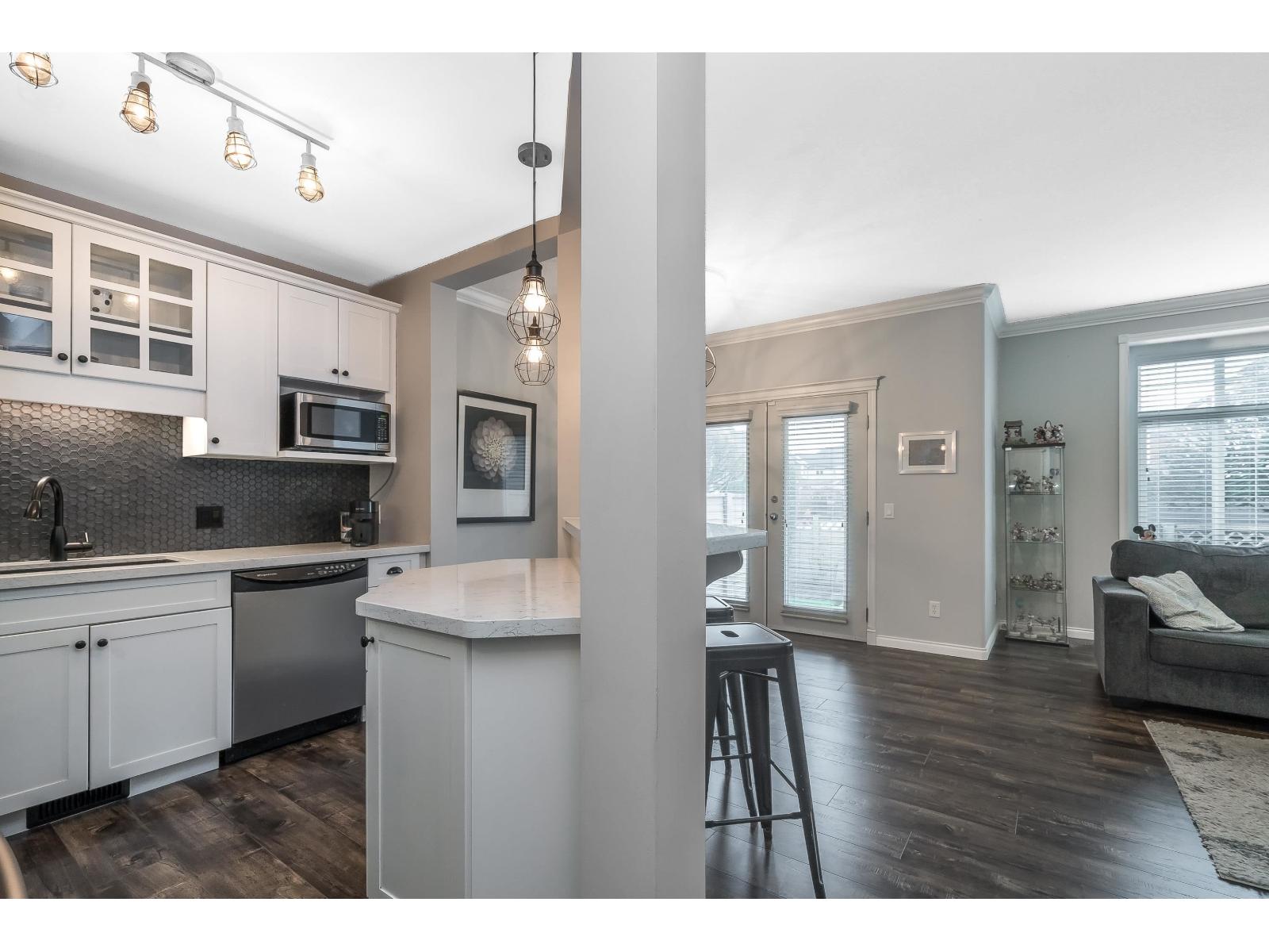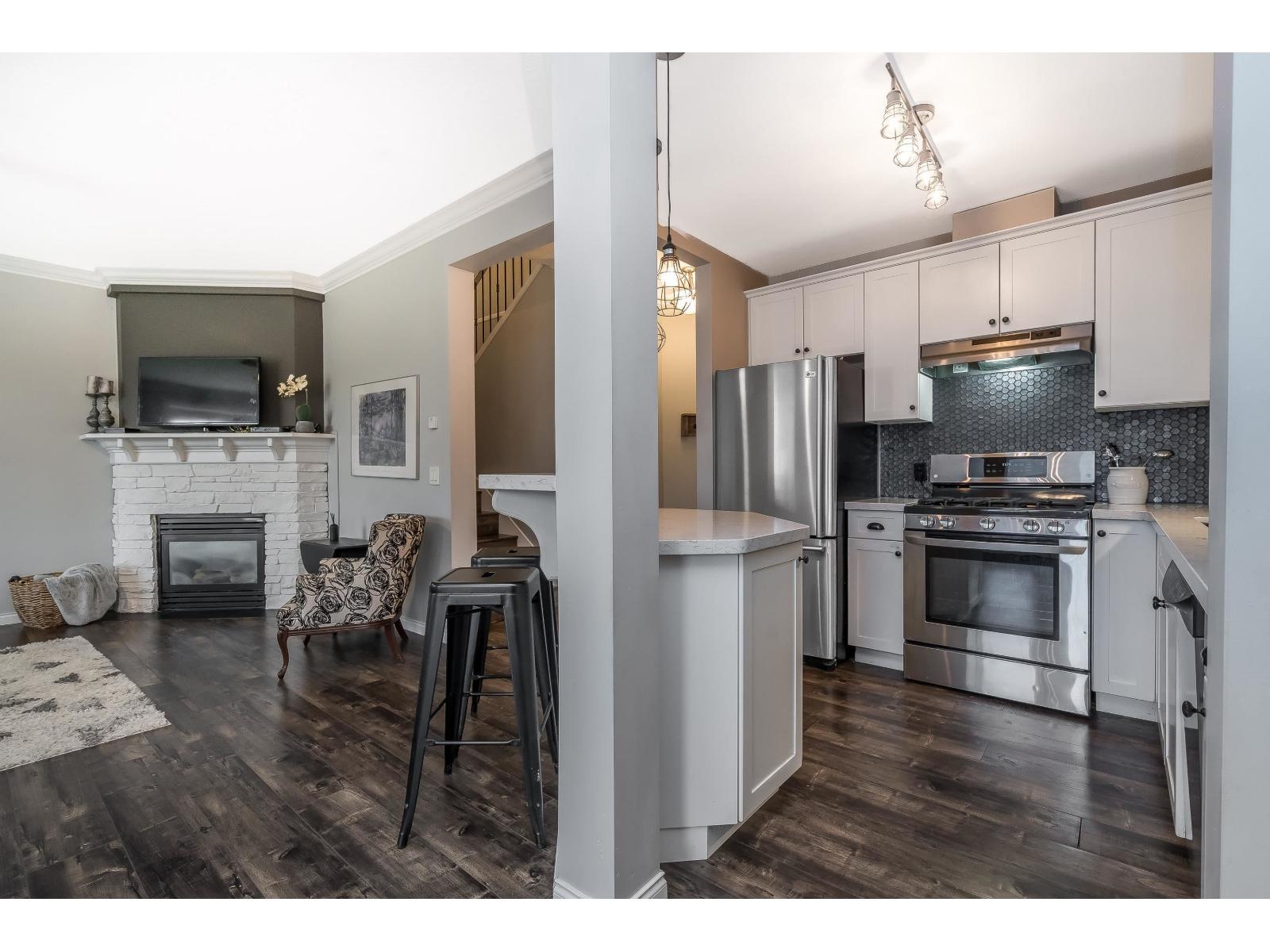Rarely available townhome built by award-winning Didyk Homes, tucked inside a gated, pet-friendly complex of just 24 homes. This bright and beautifully updated 3-bedroom, 2.5-bath home offers 1,586 sq.ft. of functional two-storey living with new flooring throughout (no carpet) and fresh designer paint colours. The open-concept main floor features a fully renovated kitchen with painted cabinets, newer appliances, and a cozy stone-faced fireplace-ideal for everyday living or easy entertaining. Both bathrooms have been thoughtfully remodeled, while the spacious primary bedroom includes a full ensuite and walk-in closet. Additional highlights include a double garage, large crawlspace for storage, new hot water tank, serviced vents, on-site RV parking, and a fully fenced, landscaped yard. The gated complex offers a playground, clubhouse, and visitor parking, all just minutes from shopping, schools, downtown Mission, highways, and the West Coast Express. (32387972)