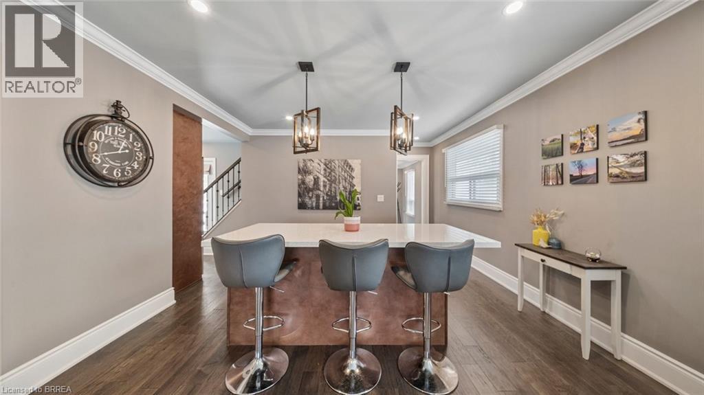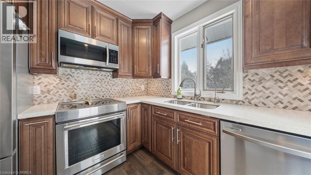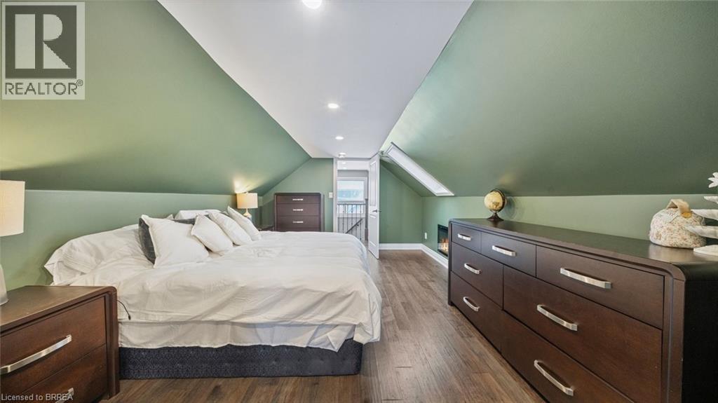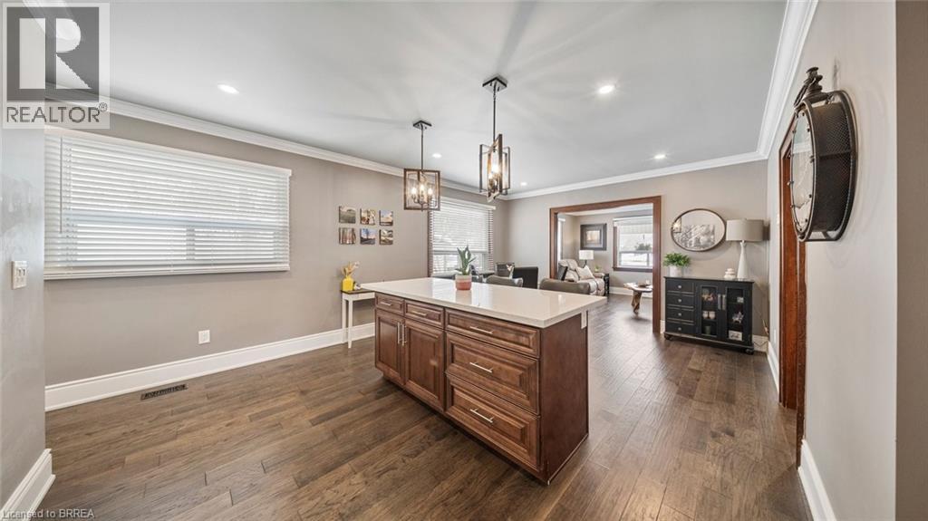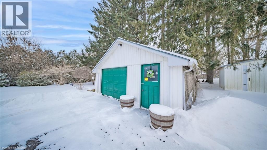 Welcome to 6 Decou Road, Simcoe - a charming and beautifully maintained 1.5-storey detached home set on a generous 0.34-acre lot offering privacy, mature surroundings, and exceptional outdoor space. This 2-bedroom, 2-bathroom home blends character and comfort with hardwood flooring throughout, a bright open-concept layout, and thoughtful updates. The main floor features a welcoming foyer, spacious living room, and an impressive open dining area with a large island, perfect for entertaining. The adjoining kitchen seamlessly flows into a cozy family room, highlighted by a gas fireplace, creating a warm and inviting atmosphere. The main-floor bedroom and full bath offer flexibility for guests or main-level living. Upstairs, the private primary retreat impresses with a walk-in closet, skylight, electric fireplace, and a 4-piece ensuite with convenient laundry, offering both comfort and functionality. Additional highlights include two fireplaces, central air, gas forced-air heating, and a full unfinished basement with additional laundry hookup and excellent storage potential. Outside, enjoy the expansive lot with landscaping, privacy features, a deck, awnings, and a detached garage with ample parking for up to 9 vehicles - ideal for hobbyists, families, or hosting guests. A shed provides extra outdoor storage. Located in a quiet yet convenient area close to schools, parks, shopping, a hospital, golf courses, trails, and public transit, this property offers the best of rural living with town amenities nearby. (70104620)