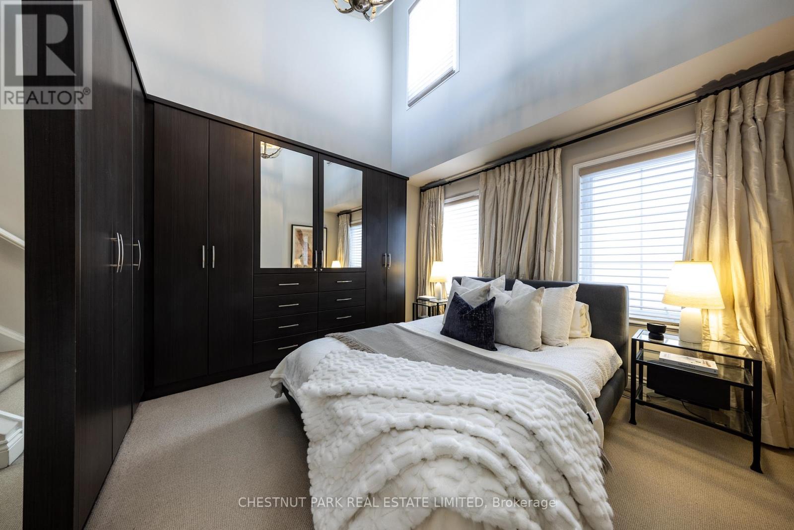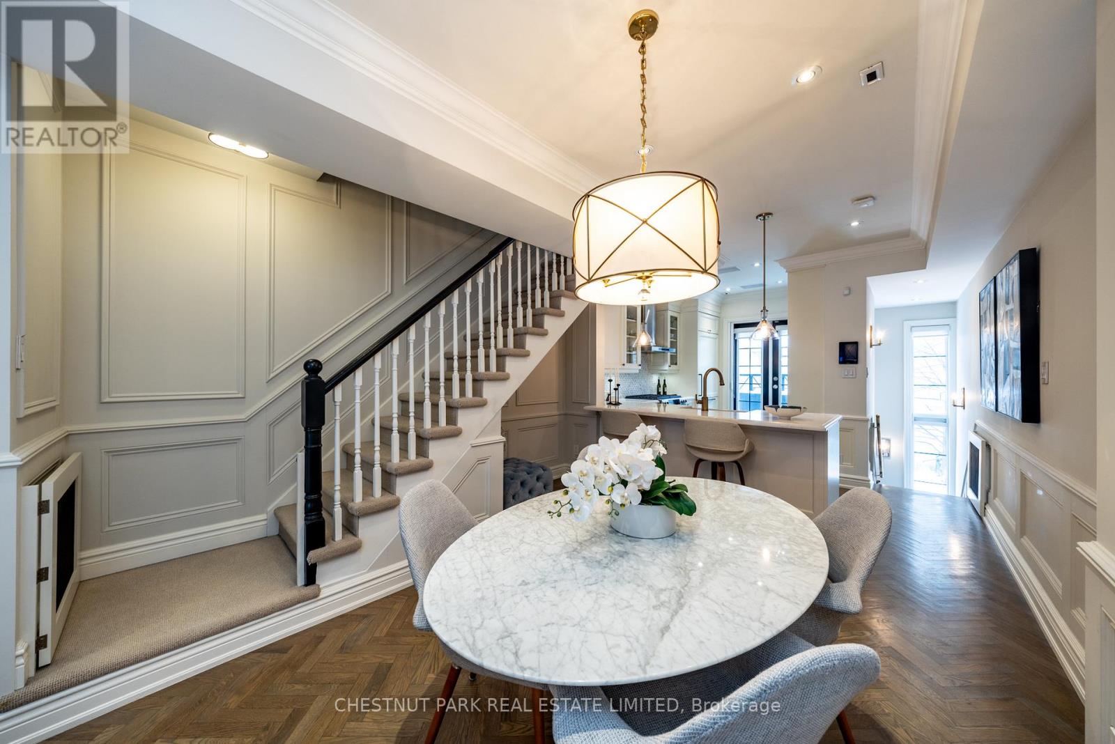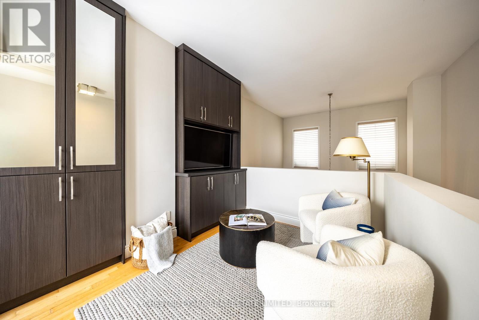 Location and value don't get better than this! With approximately 1400 sq ft of living space, this beautifully renovated townhouse will tick all of the checkboxes on your list. The landscaped common courtyard is a lovely spot to reflect as you make your way to your wrought iron gate and private front door. With custom closets and storage, heated basketweave marble tile floor and powder room, the Entry is the perfect spot to take off your coat and put down your worries from the day. The open concept layout of the main living floor is designed and finished for easy living. The kitchen feels like a French bistro with marble countertops, marble tile backsplash, a breakfast bar, and French doors opening to a sunny deck with gas line for BBQs. Charming and inviting the living and dining areas have been finished with wainscotting and paneling, complementing the hardwood floors. In the living area a gas fireplace is set in a wall of marble and flanked by cabinets with glass display shelves for show and cabinets for storage of the Sonos components as well as other tech best tucked away. Upstairs, the double height primary bedroom is finished with wall to wall to wall built-in closets and drawers. The four piece semi-ensuite bathroom is picture perfect with double floating vanities, a glass shower enclosure and marble tile floors and surround. The second bedroom features even more storage with a double closet, wall to wall built-ins and a Murphy bed. Topping off the layout, private stairs lead from the sleeping of the primary bedroom area to a loft with further built-in cabinets perfect for a TV nook, office or home gym. Sliding doors open to the rooftop deck for additional outside space. The lower level is one of the prettiest laundry/utility rooms on record and provides direct access to the underground garage and parking spot. (42043743)