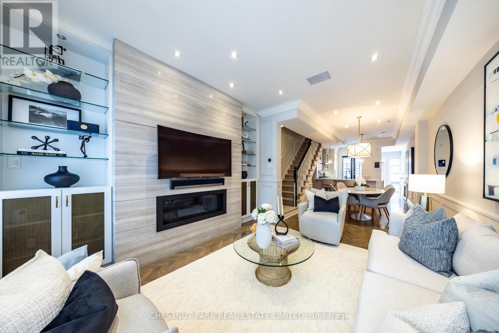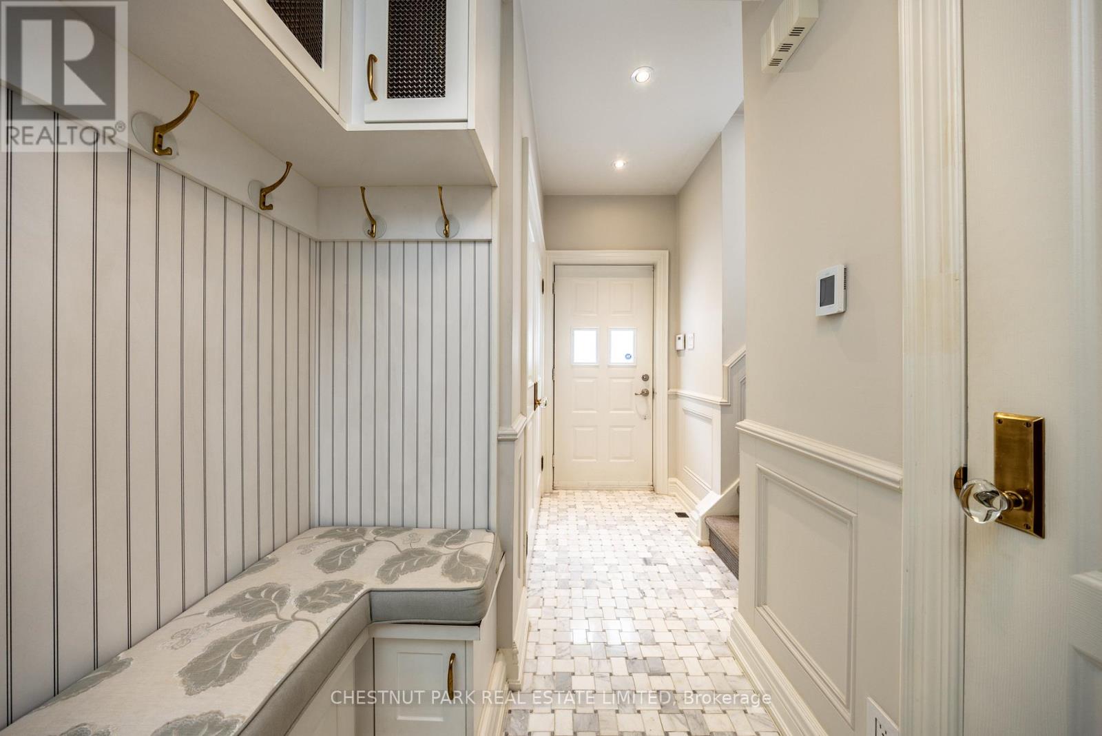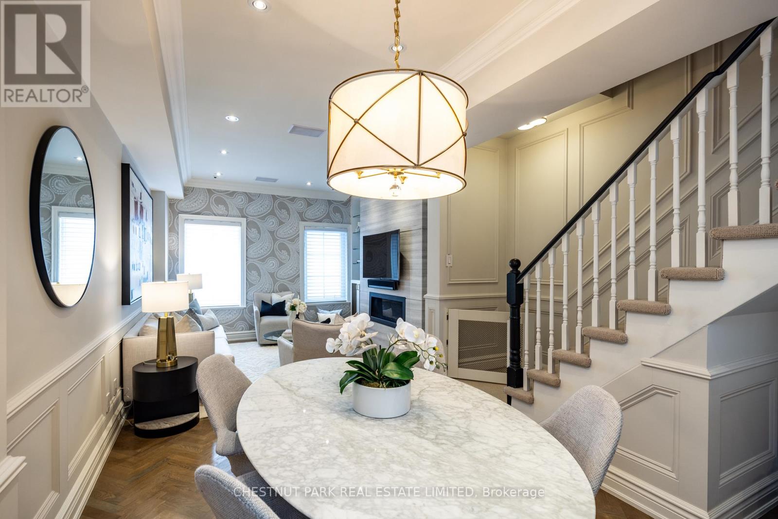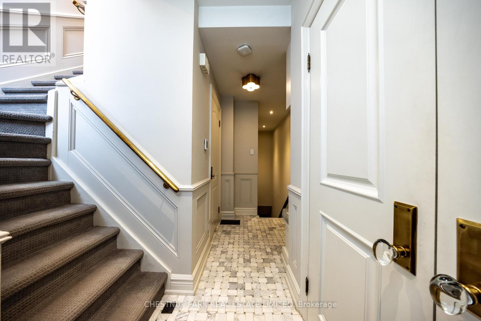 Location and value don't get better than this! With approximately 1400 sq ft of living space, this beautifully renovated townhouse will tick all of the checkboxes on your list. The landscaped common courtyard is a lovely spot to reflect as you make your way to your wrought iron gate and private front door. With custom closets and storage, heated basketweave marble tile floor and powder room, the Entry is the perfect spot to take off your coat and put down your worries from the day. The open concept layout of the main living floor is designed and finished for easy living. The kitchen feels like a French bistro with marble countertops, marble tile backsplash, a breakfast bar, and French doors opening to a sunny deck with gas line for BBQs. Charming and inviting the living and dining areas have been finished with wainscotting and paneling, complementing the hardwood floors. In the living area a gas fireplace is set in a wall of marble and flanked by cabinets with glass display shelves for show and cabinets for storage of the Sonos components as well as other tech best tucked away. Upstairs, the double height primary bedroom is finished with wall to wall to wall built-in closets and drawers. The four piece semi-ensuite bathroom is picture perfect with double floating vanities, a glass shower enclosure and marble tile floors and surround. The second bedroom features even more storage with a double closet, wall to wall built-ins and a Murphy bed. Topping off the layout, private stairs lead from the sleeping of the primary bedroom area to a loft with further built-in cabinets perfect for a TV nook, office or home gym. Sliding doors open to the rooftop deck for additional outside space. The lower level is one of the prettiest laundry/utility rooms on record and provides direct access to the underground garage and parking spot. (42043743)