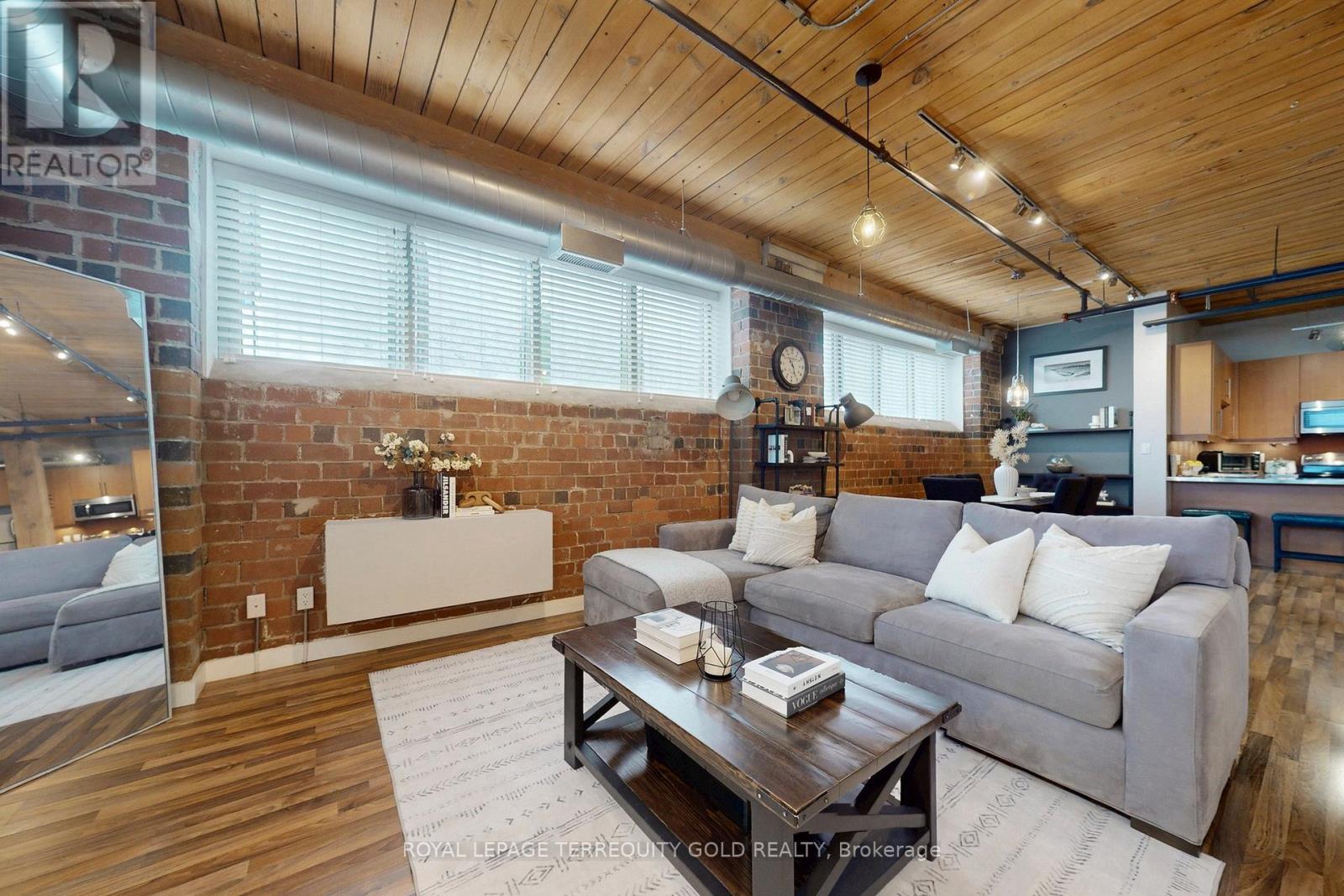 Once the B.F. Harvey Co. bedding factory (early 1900s), this heritage-designated building was transformed in the late 2000s into Feather Factory Lofts, a boutique residence of just 44 authentic hard lofts over five storeys-true character in a prime west-end location. This 1,070 sq ft, 2-bedroom SE corner suite showcases original 10 ft factory wood ceilings, exposed brick, and post-and-beam construction. Wraparound windows bring natural light across the open plan. A large kitchen with stainless steel appliances, generous counters, and an eat in area makes everyday living and entertaining easy. The flexible layout works beautifully as a home, office, studio, or gallery. Located in the heart of Roncesvalles Village, just minutes to Bloor West/Dundas West subway, High Park, bistros, pubs, indie cafés, and boutique shops, with Loblaws and daily conveniences nearby. Street permit parking is available through the City of Toronto With a Walk Score that makes this a true walker's paradise, excellent transit options including subway, UP Express, and streetcar, and a bike-friendly neighborhood with lanes and trails nearby, convenience is at your doorstep. Roncesvalles is known for its vibrant, creative culture-third-wave coffee, craft breweries, natural-wine bars, vintage shops, galleries, yoga and fitness studios, and a beloved farmers' market all add to the lifestyle. A rare chance to own a true hard loft with history, scale, and community in one of Toronto's most loved neighborhoods. (42043889)