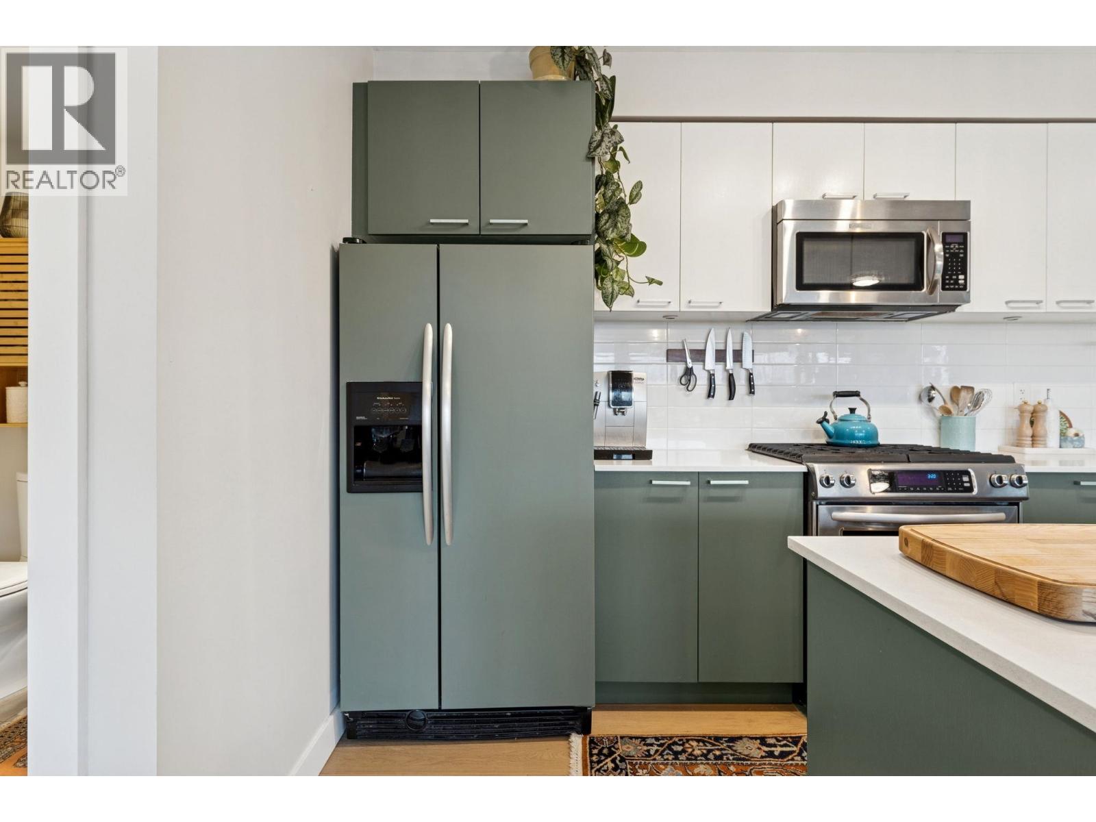 Rarely available penthouse-level home in The Drive! This beautifully redesigned 2-bed 2-bath residence offers an open-concept layout with large picture windows that flood the space with natural light. Modern kitchen features quartz countertops, subway tile backsplash, stainless steel appliances, gas cooktop, and large kitchen island perfect for entertaining. Enjoy seamless indoor-outdoor living from the expansive 270 square ft patio with partial views of the Vancouver city skyline. Bedrooms are thoughtfully separated for privacy, with a spacious primary suite offering a generous walk-in closet and ensuite. This pet-friend building features secured bike storage, fitness center and visitor parking, all steps shops, restaurants, transit, and parks. Complete with 2 side-by-side parking. Call today! (32388275)