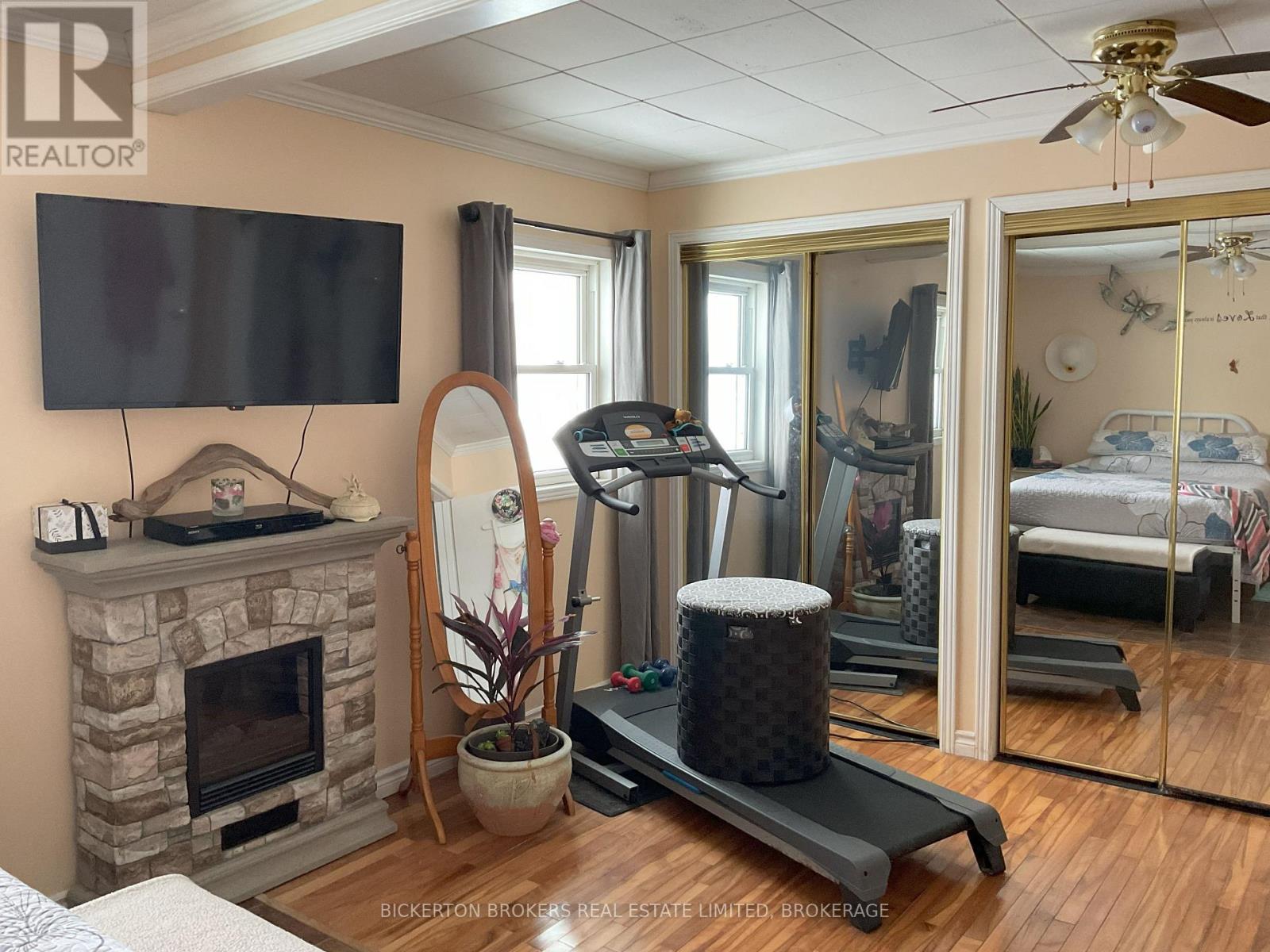 Welcome home to this charming semi-detached two-bedroom bungalow, offering a bright and open-concept kitchen and living room filled with natural light. Hardwood floors highlight the living room, with durable laminate flooring throughout the rest of the home. All appliances are included with an option to purchase existing furnishings for a truly move-in-ready experience.The home features a four-piece bathroom, washer and dryer, electric baseboard heating, and two electric fireplaces for added comfort and ambiance. The large spacious primary bedroom offers an abundance of storage with multiple closets for extra storage.A 200-amp electrical service supplies both the home and the large detached garage, which has been converted into a three-season family or games room-perfect for extending your living space. The generously sized, private backyard is beautifully landscaped and surrounded by nature, creating a peaceful, country-style setting while still being inside the gates of Gananoque and close to all town amenities. (42044305)