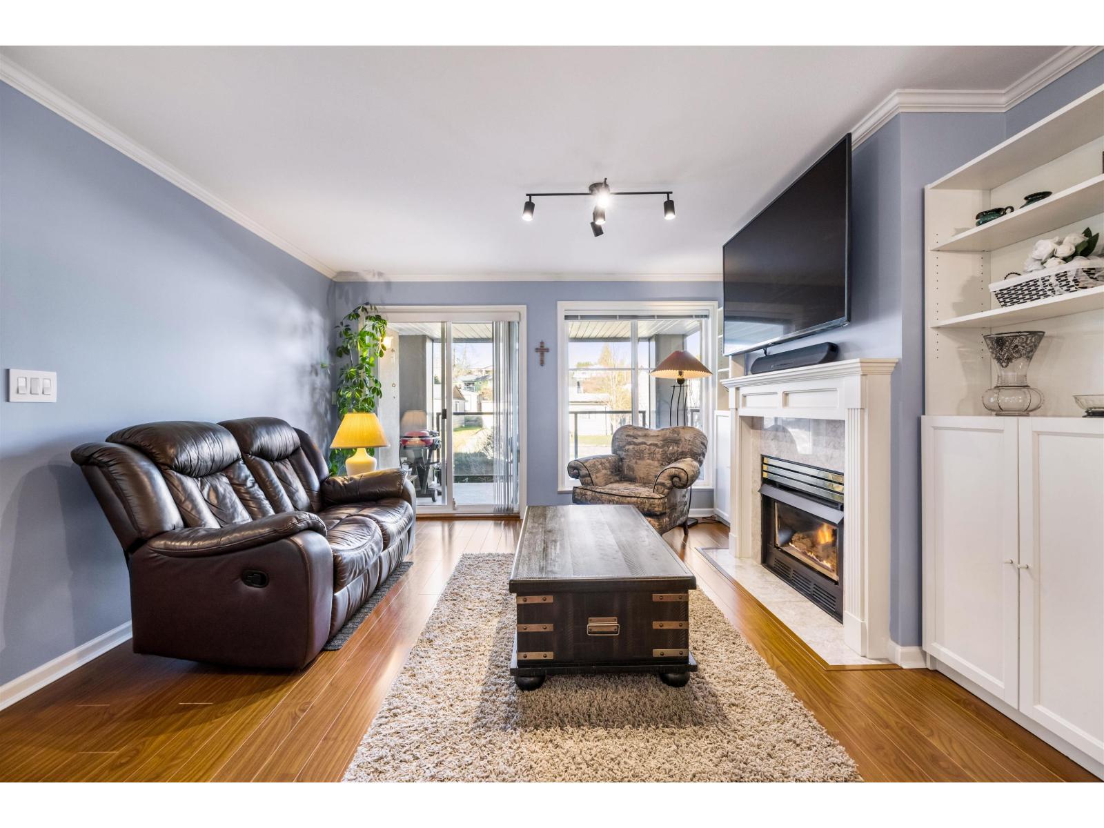 Welcome to the desirable Kathleen Court! This immaculate 2 bedroom , 2 bath 1050 sq ft condo is a perfect place to call home. Great split floor plan with bedrooms on opposite sides. Gas fireplace in living room with sliding door leading to large covered deck to enjoy your morning coffee. Laminate floors in living & bedrooms. White kitchen with stainless steel dishwasher & stove. Extra room for storage & new microwave. In suite laundry room with full size washer & dryer. Complex is well managed with amenity room/guest suite & stunning valley Views. Secured underground 2 side by side parking spots for your full size truck & massive storage locker for all your storage needs! Footsteps to all levels of schools & downtown with shops & restaurants. Mr. & Mrs. Clean live here! (32388271)