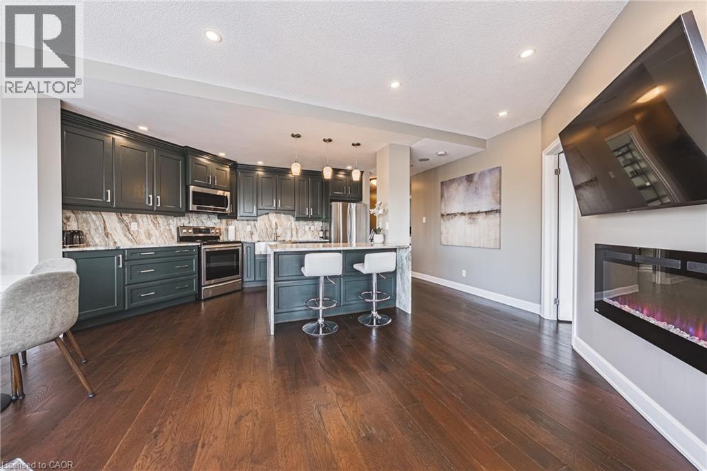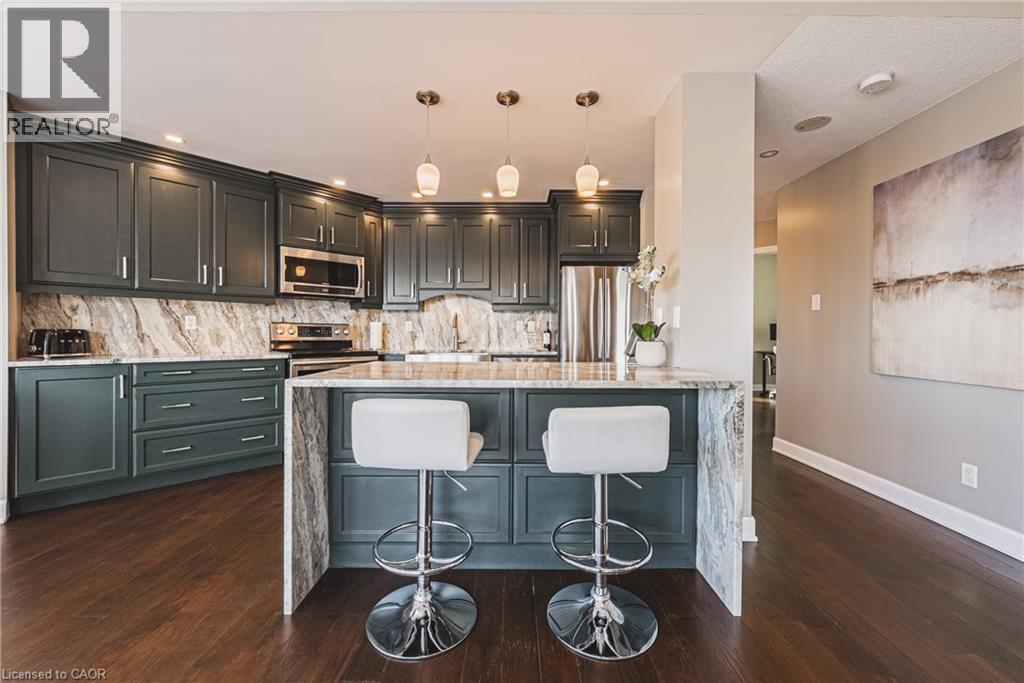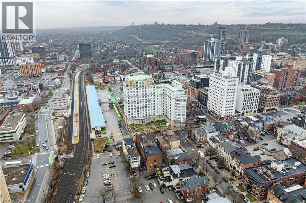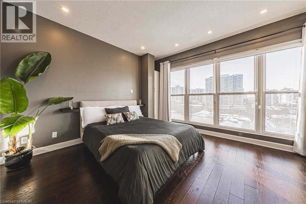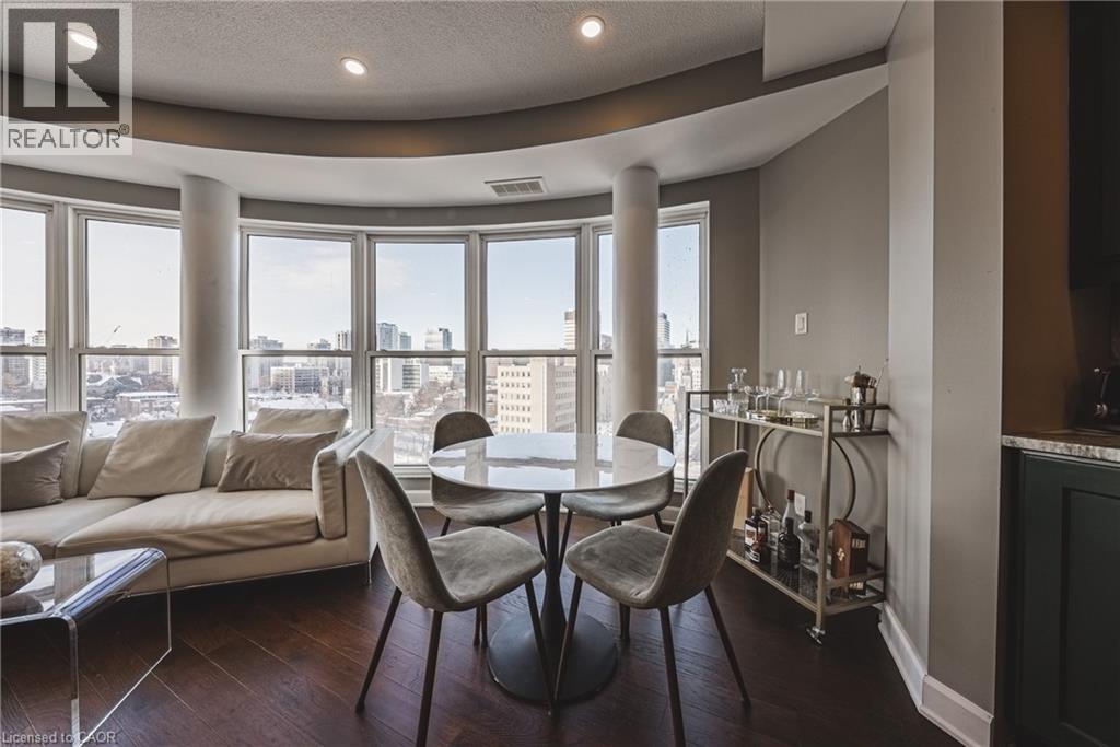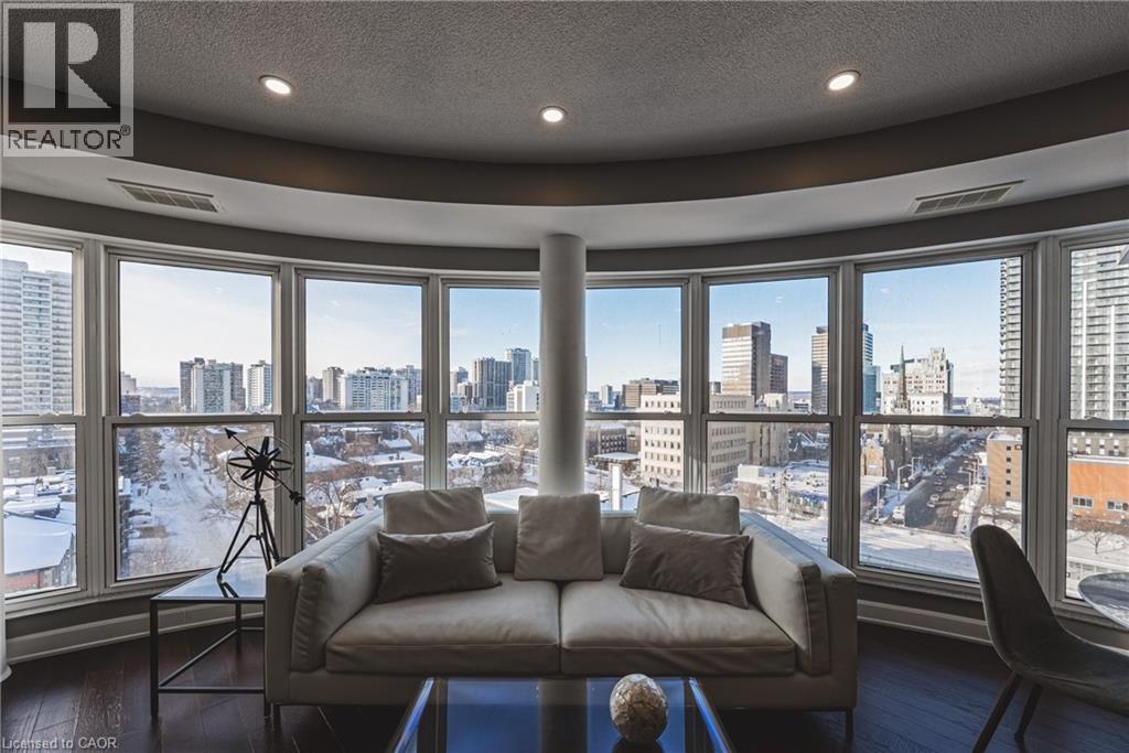 Welcome to one of Hamilton's most iconic residences, the illustrious Chateau Royale where everyday is elevated. Inside, you will find an exceptional unit anchored by a dramatic, floor-to-ceiling semi-circular window. An architectural statement that frames the skyline like a custom curated work of art. By day, natural light pours in and wraps the room in warmth. By night, the city becomes a living canvas, suspended just beyond the glass. Engineered hardwood flooring throughout delivers a warm, sophisticated foundation for this spaces modern design. The kitchen is finished with premium Italian granite countertops that wrap seamlessly around sleek, modern cabinetry, creating a refined, cohesive design that balances warmth with contemporary elegance. Walking distance to the Hamilton GO, hospitals, schools, bus routes, and the trendiest restaurants Hamilton has to offer. A combination of view, square footage, and location that is rarely offered at this price point. (70105263)