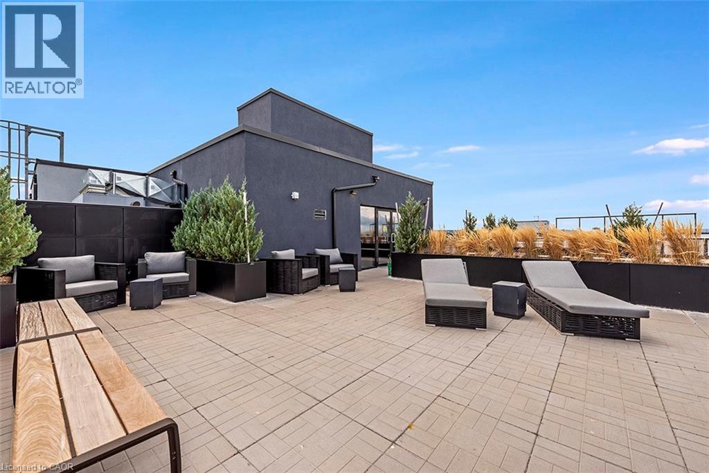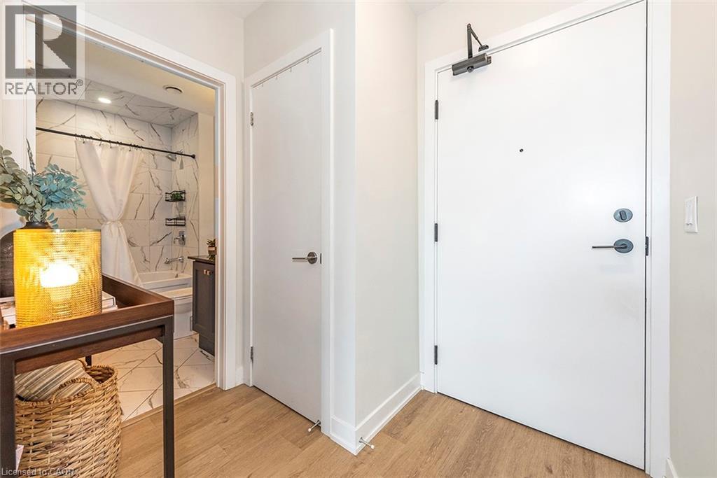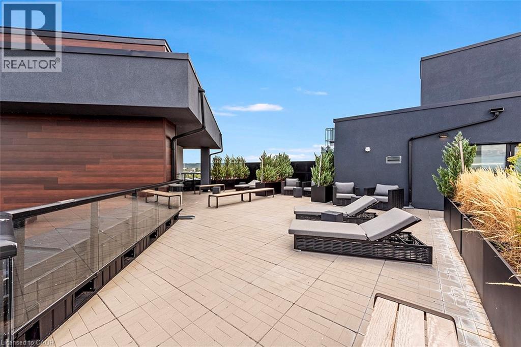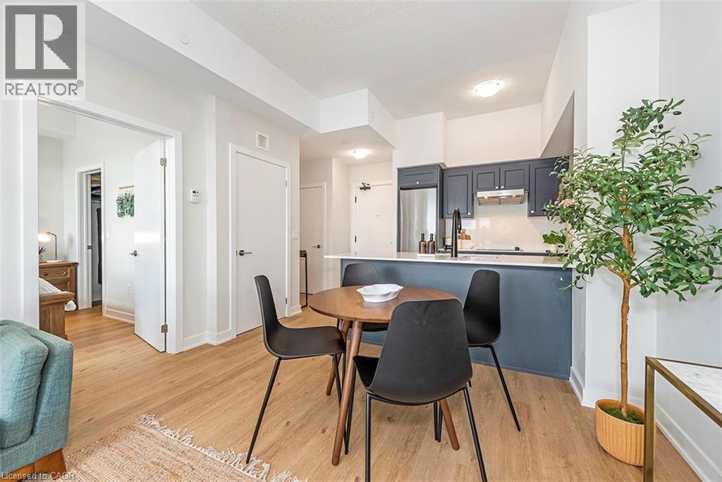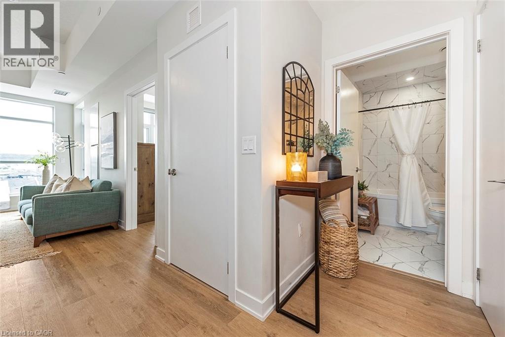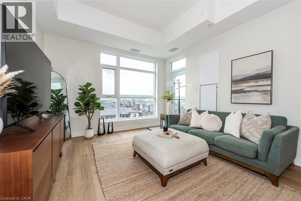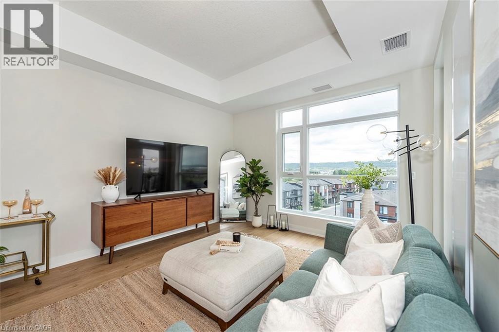 Welcome to your penthouse retreat at COMO Condos in Stoney Creek! This impressive penthouse suite features 9-ft ceilings, a bright open-concept layout, and oversized windows that fill the space with natural light. The modern kitchen is beautifully appointed with quartz counters and backsplash, soft-close cabinetry with gold hardware, an upgraded MOEN faucet and sink, and plenty of counter space for cooking or entertaining. The chic bathroom showcases upgraded tile work, recessed shower lighting, and ceiling tiles above the tub for a spa-like touch. The spacious bedroom with a walk-in closet and motorized roller blinds, provides both comfort and function, while the private balcony offers escarpment views and spectacular sunsets. With vinyl flooring throughout, elegant finishes, and a prime location just minutes to the GO Station, QEW, hiking trails, shops, dining, and Niagara's renowned wineries, this penthouse combines convenience, sophistication, and lifestyle in one exceptional package. (70105967)