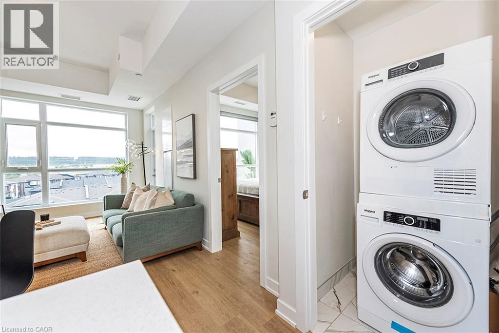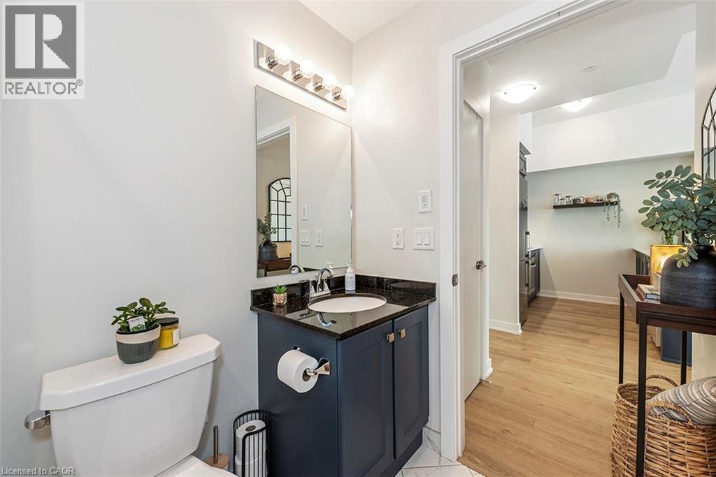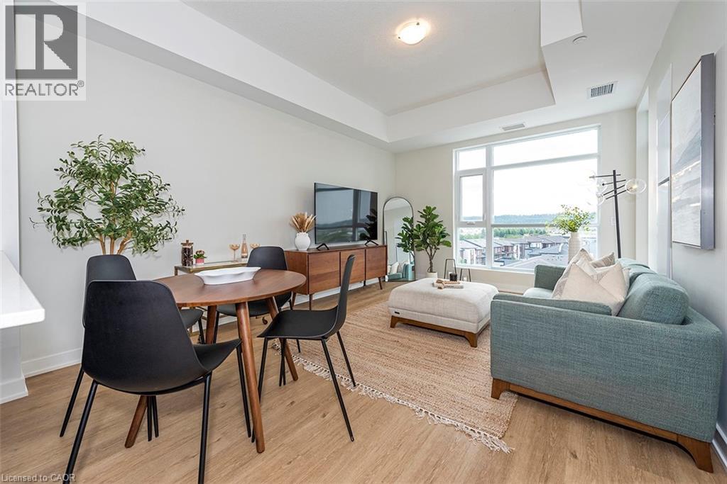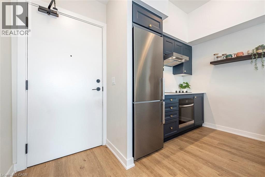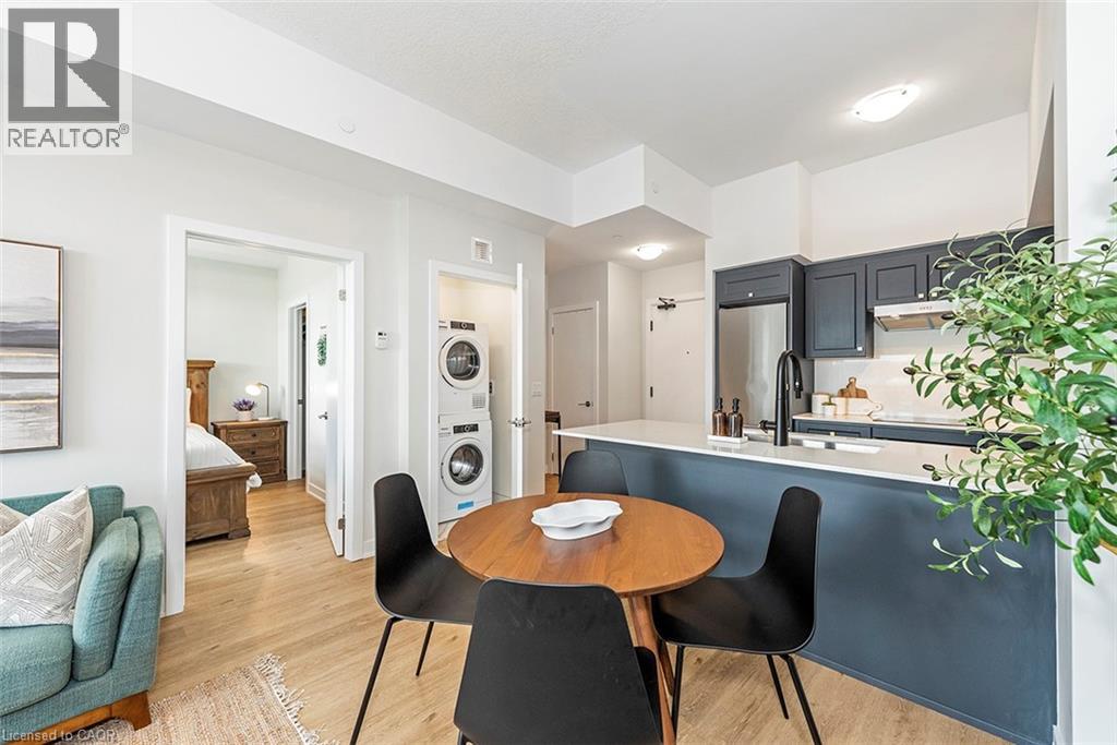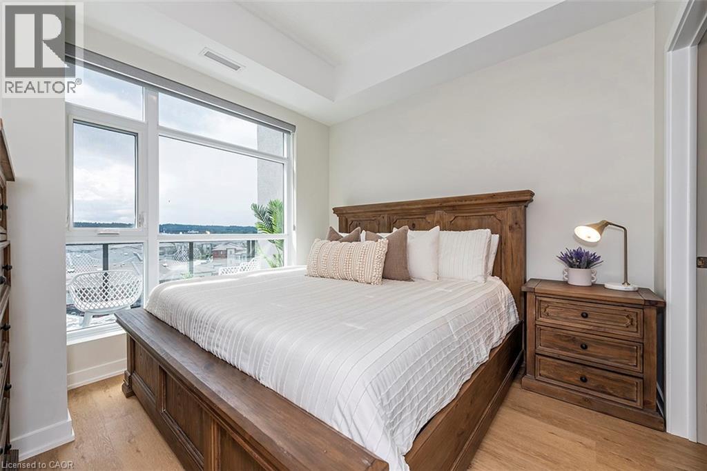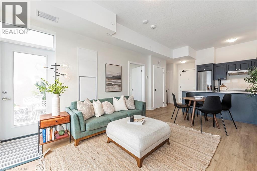 Welcome to your penthouse retreat at COMO Condos in Stoney Creek! This impressive penthouse suite features 9-ft ceilings, a bright open-concept layout, and oversized windows that fill the space with natural light. The modern kitchen is beautifully appointed with quartz counters and backsplash, soft-close cabinetry with gold hardware, an upgraded MOEN faucet and sink, and plenty of counter space for cooking or entertaining. The chic bathroom showcases upgraded tile work, recessed shower lighting, and ceiling tiles above the tub for a spa-like touch. The spacious bedroom with a walk-in closet and motorized roller blinds, provides both comfort and function, while the private balcony offers escarpment views and spectacular sunsets. With vinyl flooring throughout, elegant finishes, and a prime location just minutes to the GO Station, QEW, hiking trails, shops, dining, and Niagara's renowned wineries, this penthouse combines convenience, sophistication, and lifestyle in one exceptional package. (70105967)