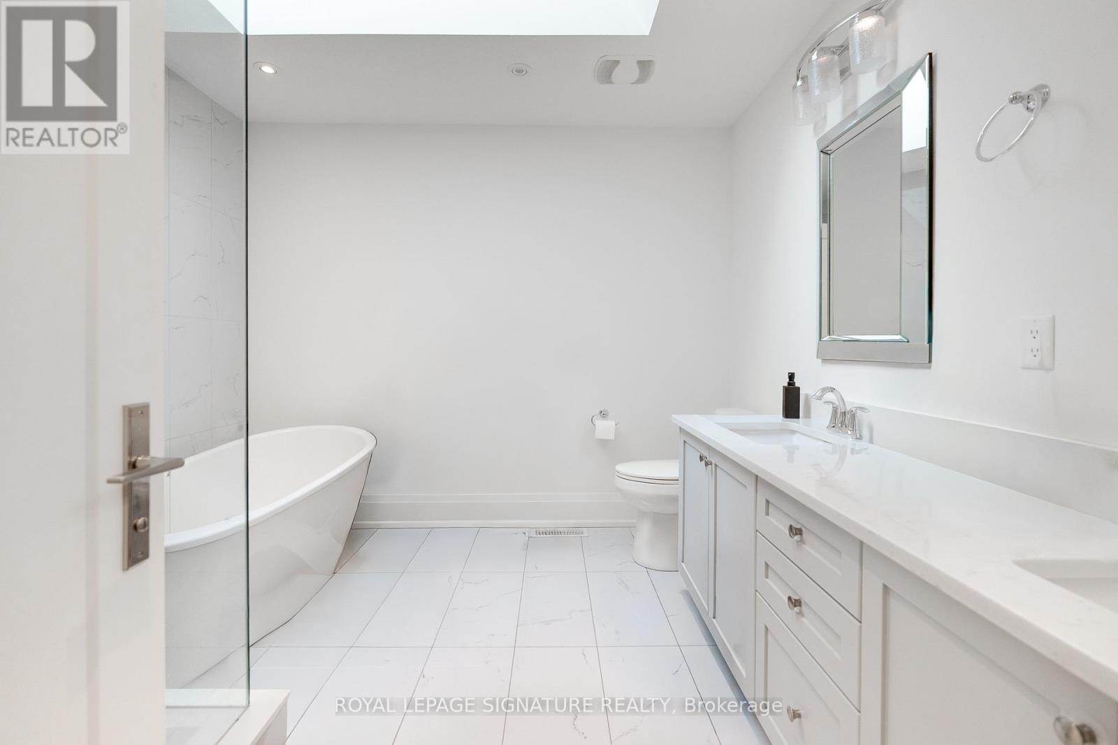 Welcome To This Exceptional Two-Storey Detached Residence In The Coveted Etobicoke-Mimico Neighbourhood. Custom-Built And Impeccably Maintained, This Home Blends Architectural Detail With Thoughtful Functionality Across Every Level. The Main Floor Showcases A Bright, Expansive Living And Dining Area, Anchored By A Statement Floating-Style Open-Riser Staircase With Wood Treads And Sleek Glass Detailing, Creating A Dramatic Yet Timeless Design Moment. At The Heart Of The Home, The Gourmet Kitchen Impresses With Soaring 12-Ft Ceilings, Illuminated Cabinetry, Premium Quartz Countertops, A Large Centre Island, And Stainless Steel Appliances. The Adjacent Family Room Continues The Sense Of Scale With Matching 12-FtCeilings, A Fireplace, And Direct Access To The Deck And Professionally Landscaped Backyard. The Upper Level Offers Three Well-Proportioned Bedrooms With 9-Foot Tray Ceilings, Enhanced By Abundant Natural Light From Skylights And Contemporary Glass Railings. With Four Bathrooms In Total, Including Three Full Baths And A Main-Floor Powder Room, The Home Is Well Suited For Both Family Living And Entertaining. The Lower Level Features 9-FootCeilings And A Walk-Up To The Backyard, Offering Flexible Space For Recreation Or Extended Living. The Basement Is Also Roughed In For Radiant Floor Heating. Refined Finishes Include 9.5" Baseboards, 4.5" Poplar Backbend Casing, Hardwood, Marble, And Porcelain Flooring, Generous Storage, An Integrated Security Camera System, And A Built-In Garage. Located In One Of Toronto's Most Desirable Waterfront Communities, This Is A Rare Opportunity To Own A Truly Turn-Key Home (42045329)