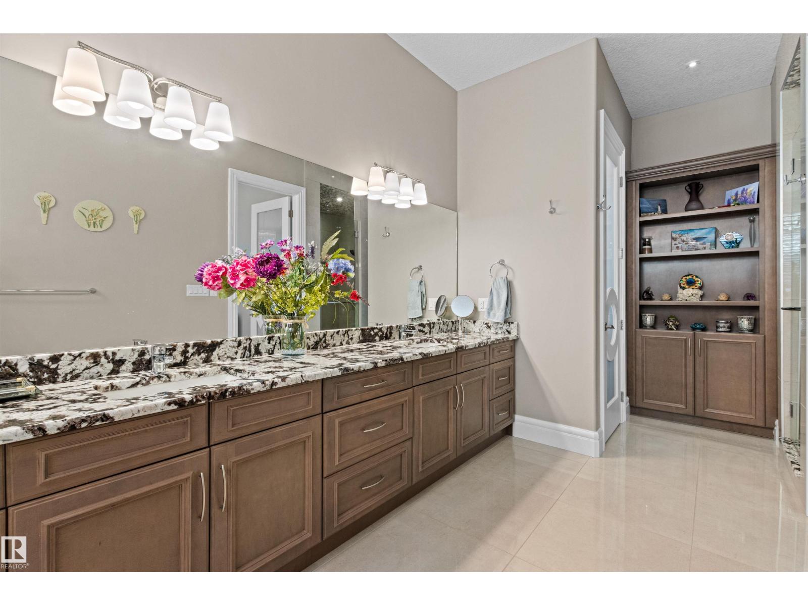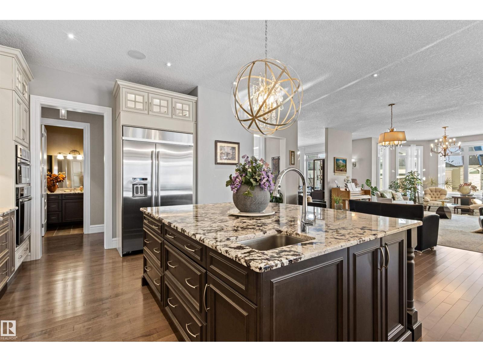 Exceptional custom bungalow by Cantera Estates offering over 8,200 sq ft of living space w/ 8 bdrms, 8 baths & an upper loft. Designed for comfort & entertaining, the main floor features hardwood flooring, floor-to-ceiling windows & a 2-way gas f/p connecting the living & family rooms. The gourmet kitchen is equipped w/ Jenn-Air S/S appliances, granite counters, an oversized island, custom cabinetry & a bright breakfast nook w/ access to the covered patio. The main-level primary suite includes a corner gas f/p, walk-in dressing room, 5-pc spa ensuite & patio access. Two add’l main-floor bdrms each offer private 4-pc ensuites & patio access. Laundry & powder rm complete the level. The loft offers a 2nd primary bdrm w/ ensuite, add’l bdrm, full bath & vaulted-ceiling bonus rm. The finished basement includes a lg rec rm, theatre space, games area, 3 bdrms, & 2 baths. Professionally landscaped w/ water features & a triple attached garage, this home is located in a quiet desirable community you’re sure to love (33775949)
