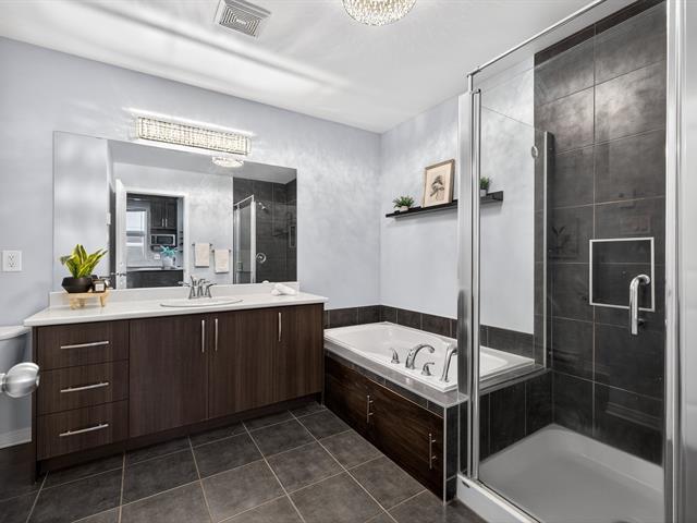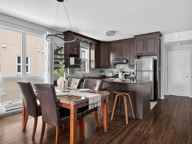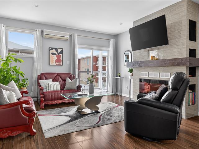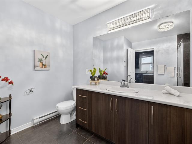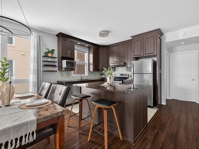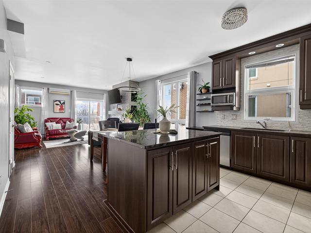 Beautiful unit offering two bedrooms, two parking spaces, and a private entrance. 9-foot ceilings, large windows, and abundant natural light. Carpet-free flooring and hardwood interior staircase. Living room with electric fireplace and wall-mounted air conditioner. Modern kitchen with full-height PVC cabinetry, central island, quartz countertops, and appliances included. Primary bedroom with walk-in closet. Bathroom with ceramic tub and shower. Large balcony and interior storage. (50864727)