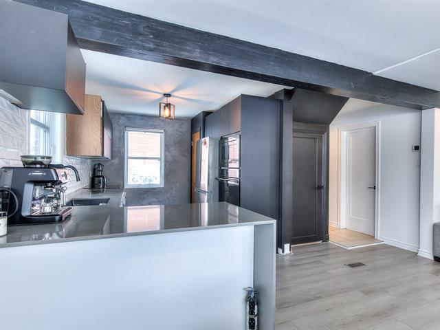 ***rare sur le marché, maison rénovée spacieuse et très lumineuse offrant 2 chambres à coucher à l'étage et possibilité d'une 3e au sous-sol + un bureau/salle familiale*** Cuisine rénové au goût du jour, salle de bain complète haut de gamme, douche et bain indépendant ainsi que plancher chauffant// la cour est incroyable, bordé par des haies et arbres matures, agrémentée d'un deck et un cabanon// Secteur paisible et très recherché de Mercier à Montréal, Village Champlain. Les avantages de la banlieue combinés à ceux de la ville avec ses services de proximité tout en profitant d'une localisation incomparable et accessible. À 2 min du métro HB (55896185)
