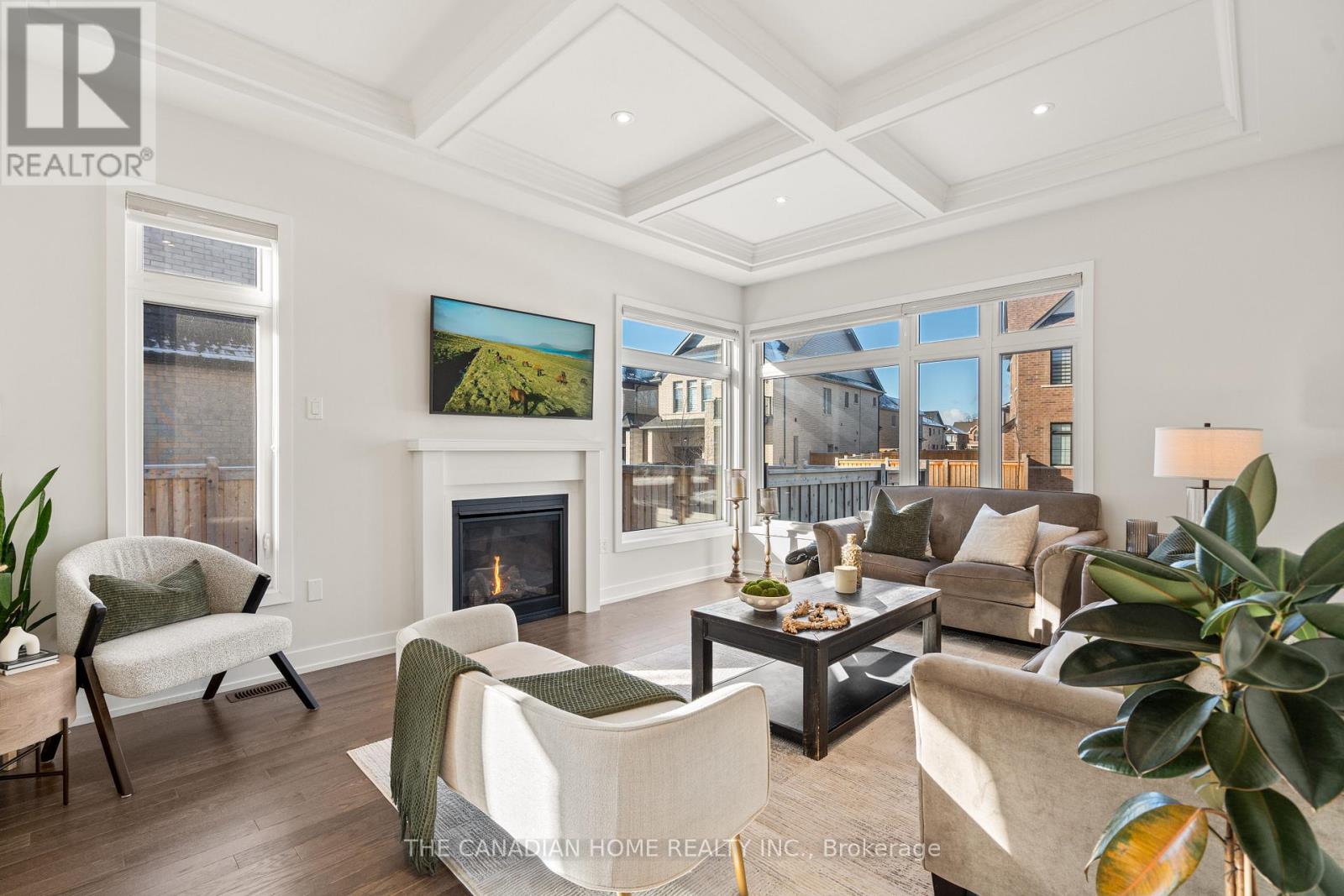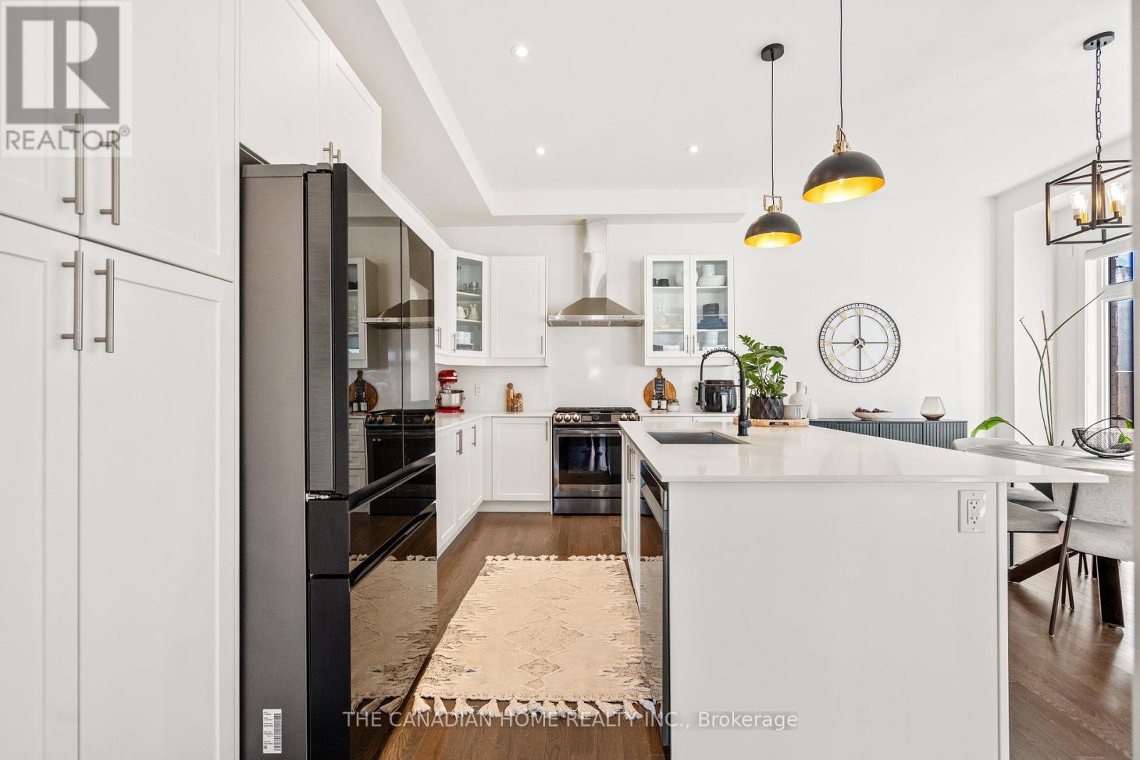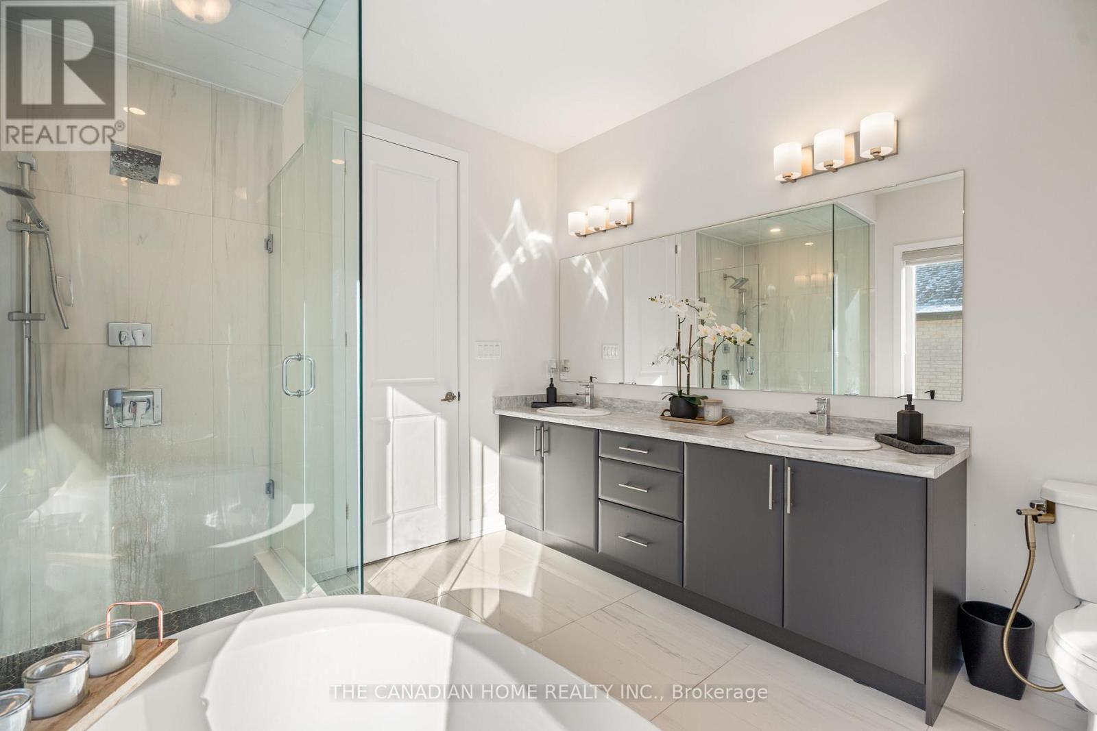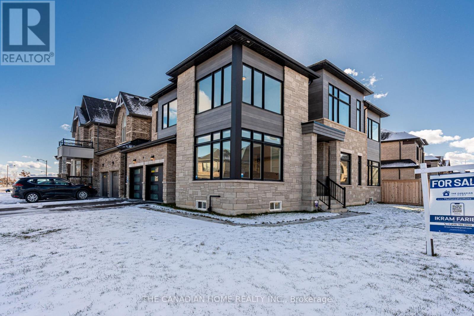 Welcome to an exceptional, upgrade-packed residence in Milton, where modern elegance meets everyday comfort. Set on a premium corner Lot fronting onto serene natural view of Ravine & a Pond, this home offers a striking modern elevation and over $250K in curated upgrades. Over 4500 square feet of living space. Step inside to soaring 10-feet main-floor ceilings, solid Superior Red Oak hardwood, upgraded 8-feet doors and rich architectural details including a coffered dining ceiling and waffle ceiling in the living room. The open yet functional layout features separate living and dining spaces, a bright family room with a cozy natural gas fireplace and a chef-inspired kitchen with silky white quartz counters and backsplash, gas stove, premium black stainless steel Samsung Bespoke appliances and a separate gas line ready for BBQs outdoors. Smart-home conveniences include motorized blinds, a full security/smart system, central vac rough-in, and 200-amp service with EV wiring and charger in the garage. A unique Den/Office with 20 Feet ceiling overlooking the Ravine & a Pond. Upstairs on the second floor, enjoy 9-feet ceilings, four spacious bedrooms 3 walk-in closets and 1 double door closet, a luxurious primary retreat with a spa-style 5-pc ensuite and oversized walk-in closet, plus an upper-level laundry room for ultimate convenience. The finished basement with separate side entrance and full washroom offers incredible flexibility, ideal for an in-law suite or future legal rental conversion. No side walk, which allow extra cars to be parked on the driveway. Minutes to parks, trails, shopping, and highly regarded schools such as Tiger Jeet Singh Public School, Hawthorne Village Public School, St. Bernadette CES, and Craig Kielburger SS, this home delivers refined living in a prime family neighborhood. Minutes away from 407, 401, & Oakville. *** Please ask your Agent to Download & Send you the Feature Sheet ***. (42045964)