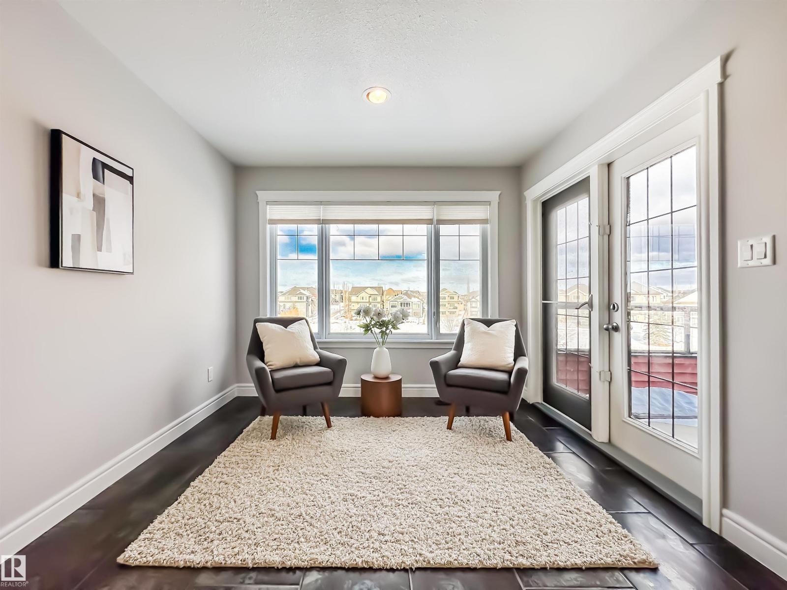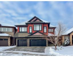 POND VIEWS, WALKOUT BASEMENT, TRIPLE GARAGE! Backing directly onto the pond, this impressive 3,346 sqft, walk-out two-storey offers exceptional space, privacy, & flexibility for modern living. The main floor features stunning lake views, a beautiful living room with fireplace, designer kitchen with double islands & dual sinks, massive walk-in pantry, in-floor heating, & an elegant dining area ideal for hosting family & friends. Upstairs, enjoy a spacious bonus room with wet bar, a luxurious primary retreat with private balcony, luxurious 5-piece ensuite, huge walk-in closet, plus two additional bedrooms, full bath, and laundry. The walkout basement is full of opportunity, finished with in-floor heated epoxy flooring, a large bedroom, full bath with steam shower, living area with kitchenette, & versatile flex spaces. Low-maintenance landscaping with turf & perennials completes the setting. Walk to the K-6 school, with quick access to shopping, groceries, Currents of Windermere, & the Henday. Welcome home! (33776453)
