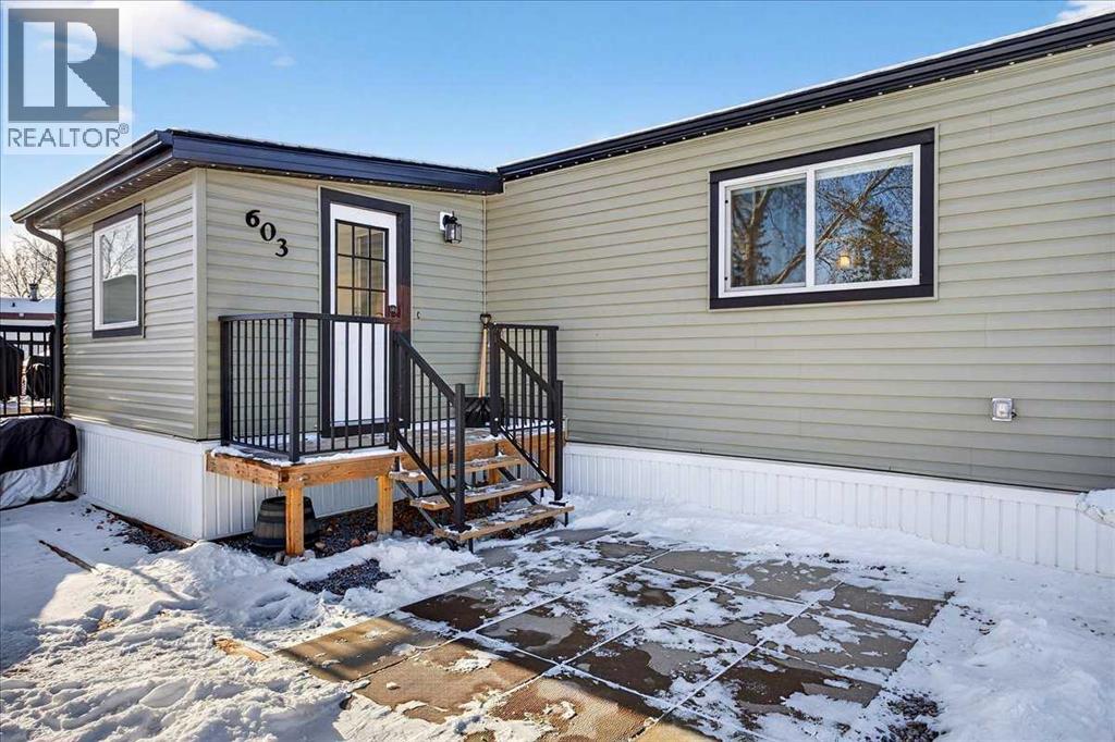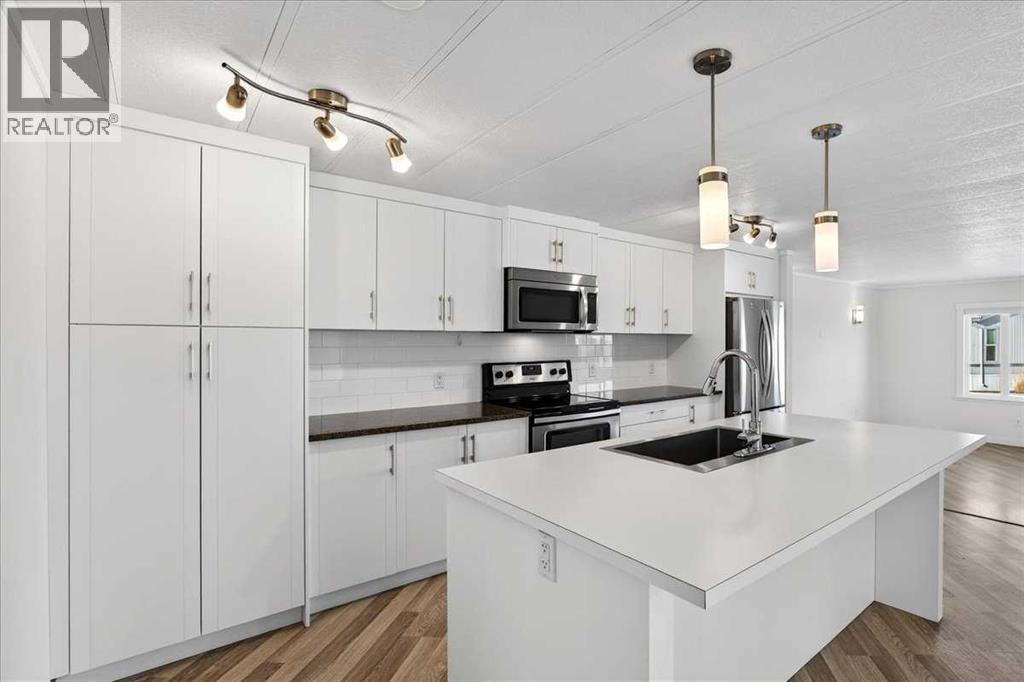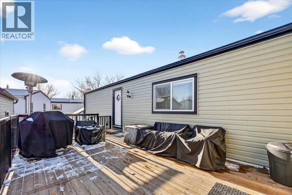 Welcome to Homestead Acres, a quiet and well-maintained 50+ community. This recently renovated and maintained mobile home is truly move-in ready. Extensive updates completed in 2022 include insulation, roof, exterior wrap, windows, doors, and air conditioning, with a newly installed underbelly added in 2024. The home features two bedrooms, two bathrooms, a spacious open-concept kitchen and living area, and central air conditioning. Upon entry, you are welcomed by a large foyer with built-in cabinetry and bench seating, providing a functional and inviting space for guests. The kitchen serves as the heart of the home, offering ample room for cooking, entertaining, and everyday living. The open living area provides flexible space to suit your lifestyle, whether for reading, relaxing, or hosting movie nights. Toward the rear of the home, the second bedroom offers excellent natural light and a closet organizer. Nearby is a bright and well-appointed four-piece main bathroom, along with a convenient stacked washer and dryer. The primary bedroom is generously sized to accommodate a king-size bed and includes a walk-in closet and a private ensuite featuring dual vanities and a large shower. Outside, enjoy a low-maintenance, fenced yard and a deck designed for relaxation, complete with a propane heater. The exterior of the home comes with permanent outdoor lights already installed, for all your seasonal lighting themes! An insulated and powered shed offers additional space for hobbies or storage. With minimal yard maintenance required, you’ll have more time to enjoy your home, while still having the flexibility to personalize the outdoor space to your vision. (31586158)